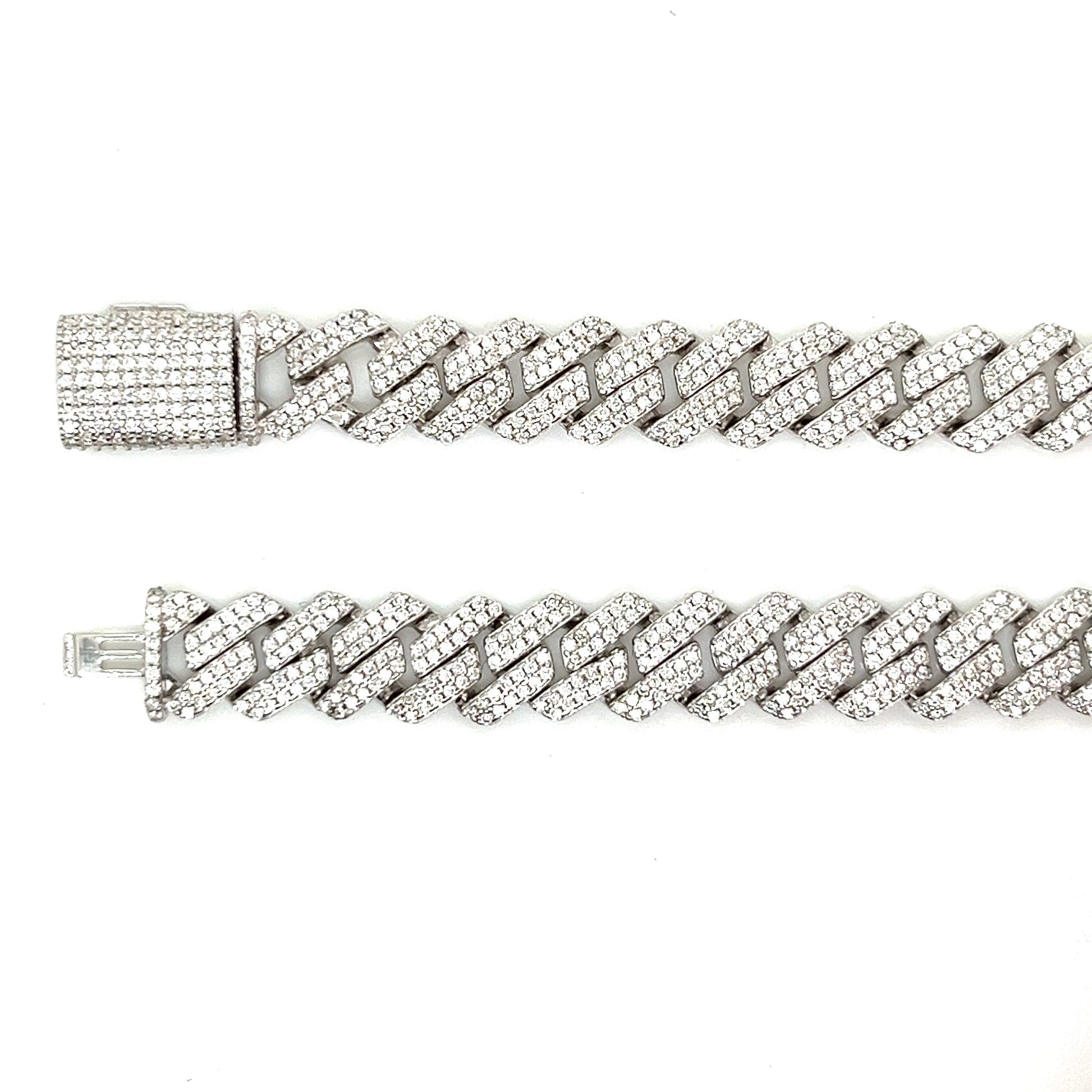 Impresionante plata de ley. Cadena de eslabones cubanos Miami Iced Out rodio de 18 mm: eleva tu estilo con esta belleza atemporal. Con aprox. 30,12 CT para 18", 33,7 CT para 20", 36,69 CT para 22", 39,66 CT para 24" de piedras moissanita redondas, añade un toque de glamour a cualquier look.