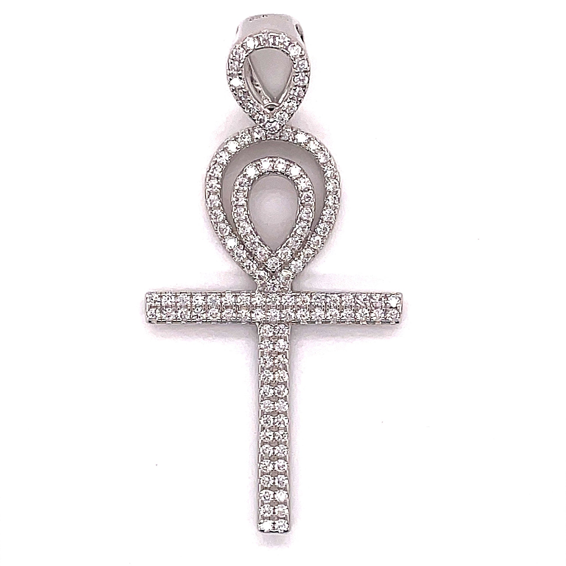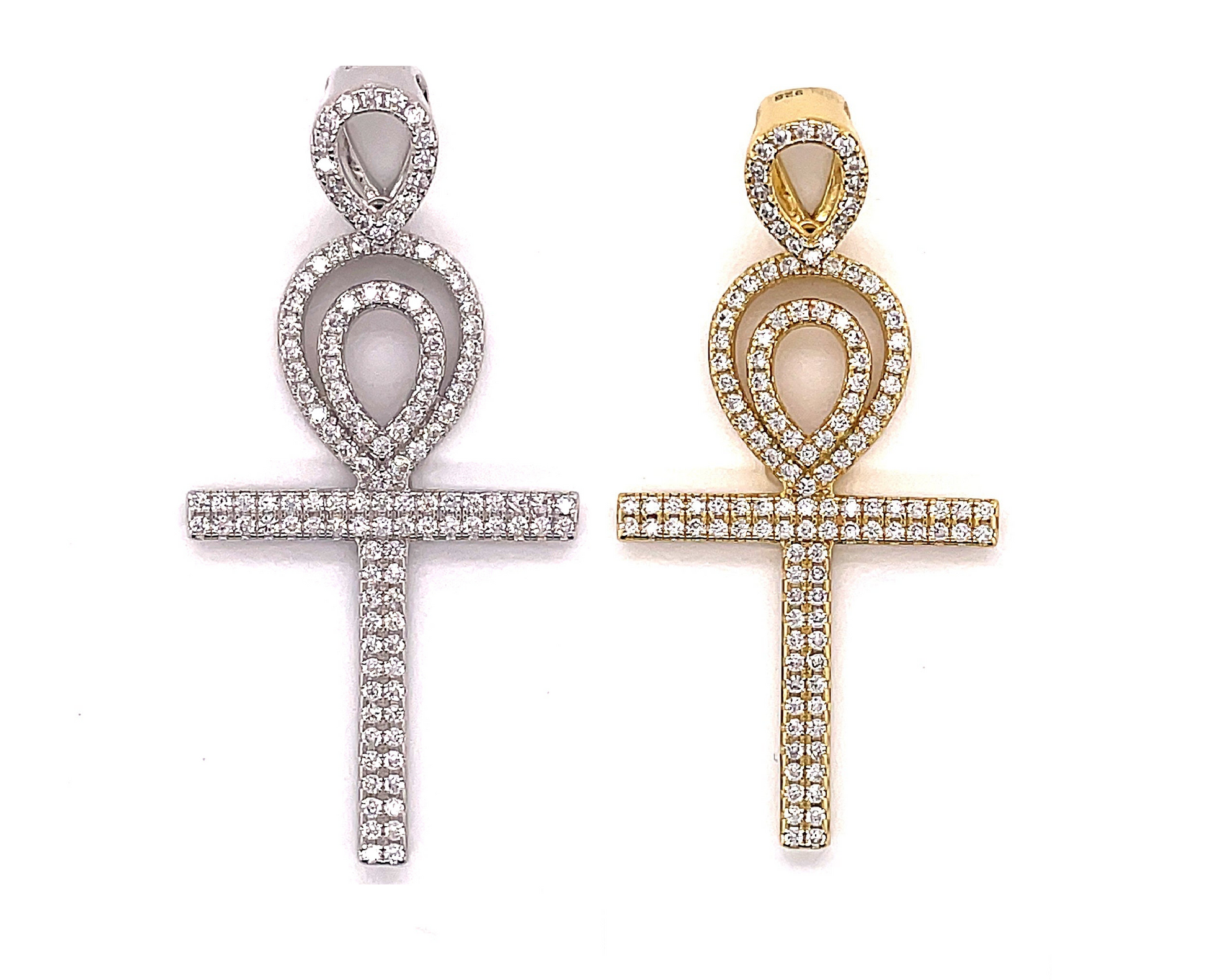 Plata de ley 925 rodiada/ chapada en oro de 14 quilates "CROSS ANKH DOUBLE" Charm CZ piedras redondas.