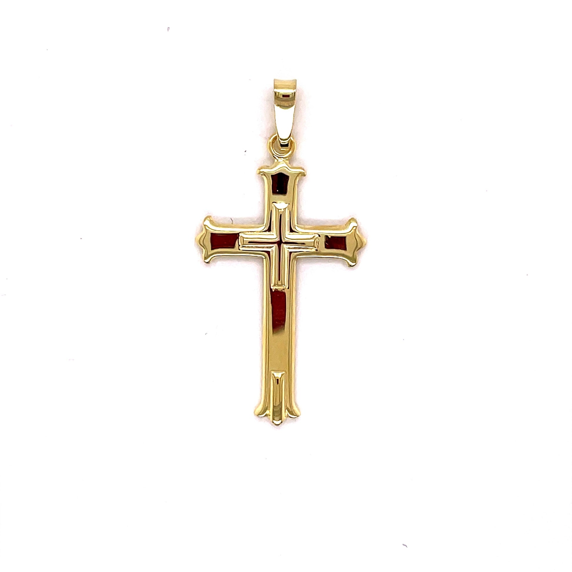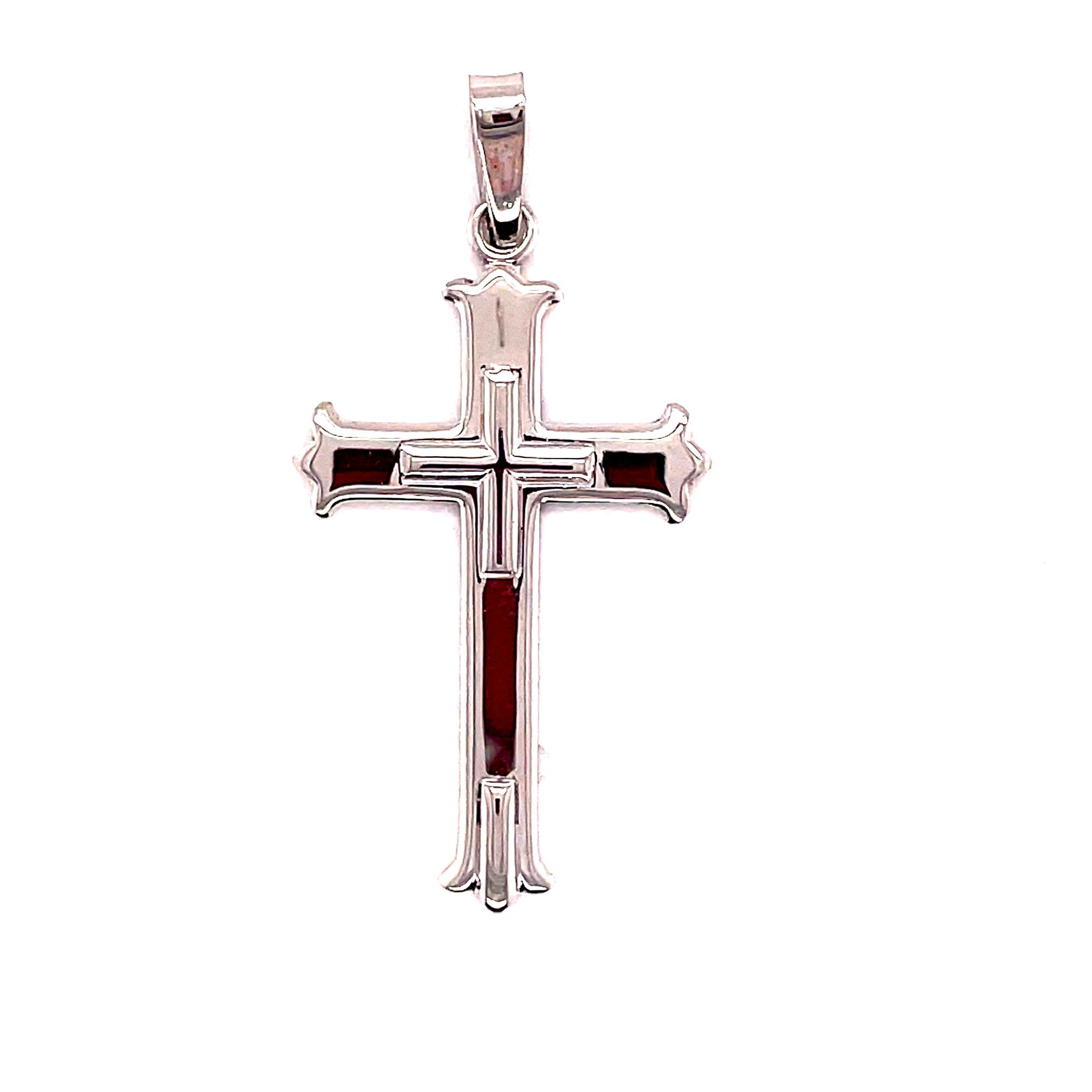 Elaborado con plata de ley 925 chapada en rodio y oro de 14 quilates, este colgante de cruz es una excelente adición a cualquier colección de joyas.