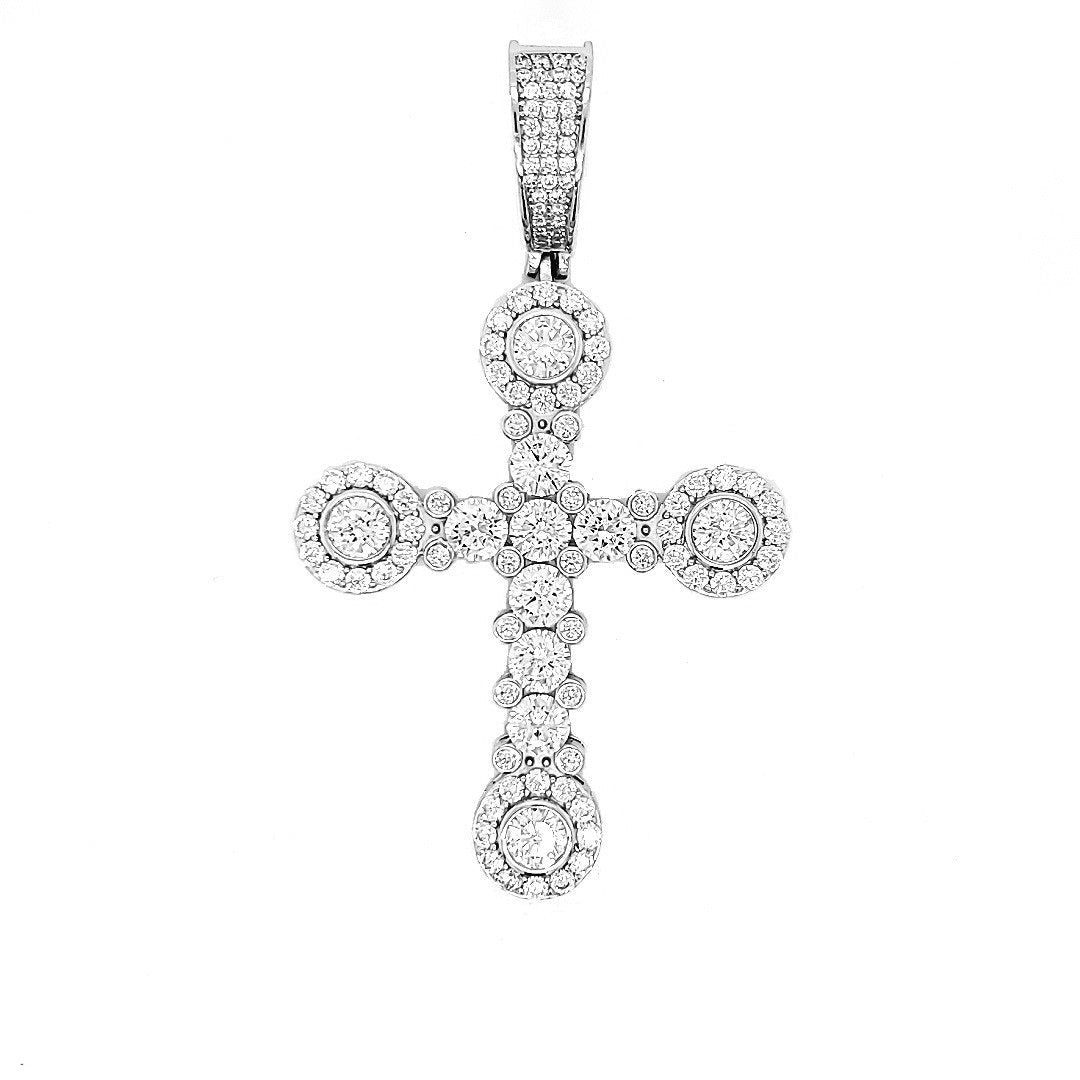 Impresionante colgante de cruz de circonita cúbica de rodio en plata de ley 925: eleva tu estilo con esta belleza atemporal. Con un colgante de piedras redondas de circonita cúbica (CZ), añade un toque de glamour a cualquier look.