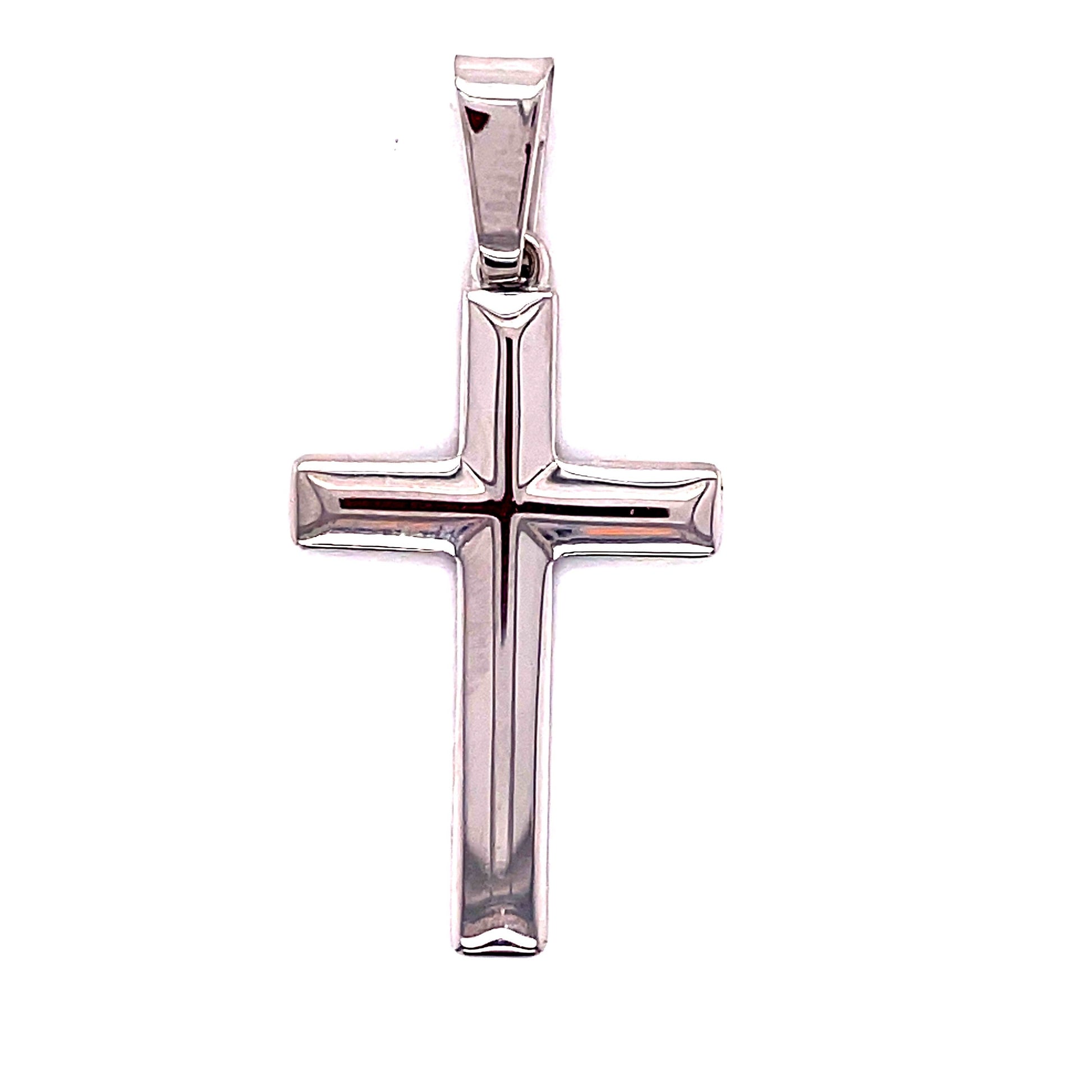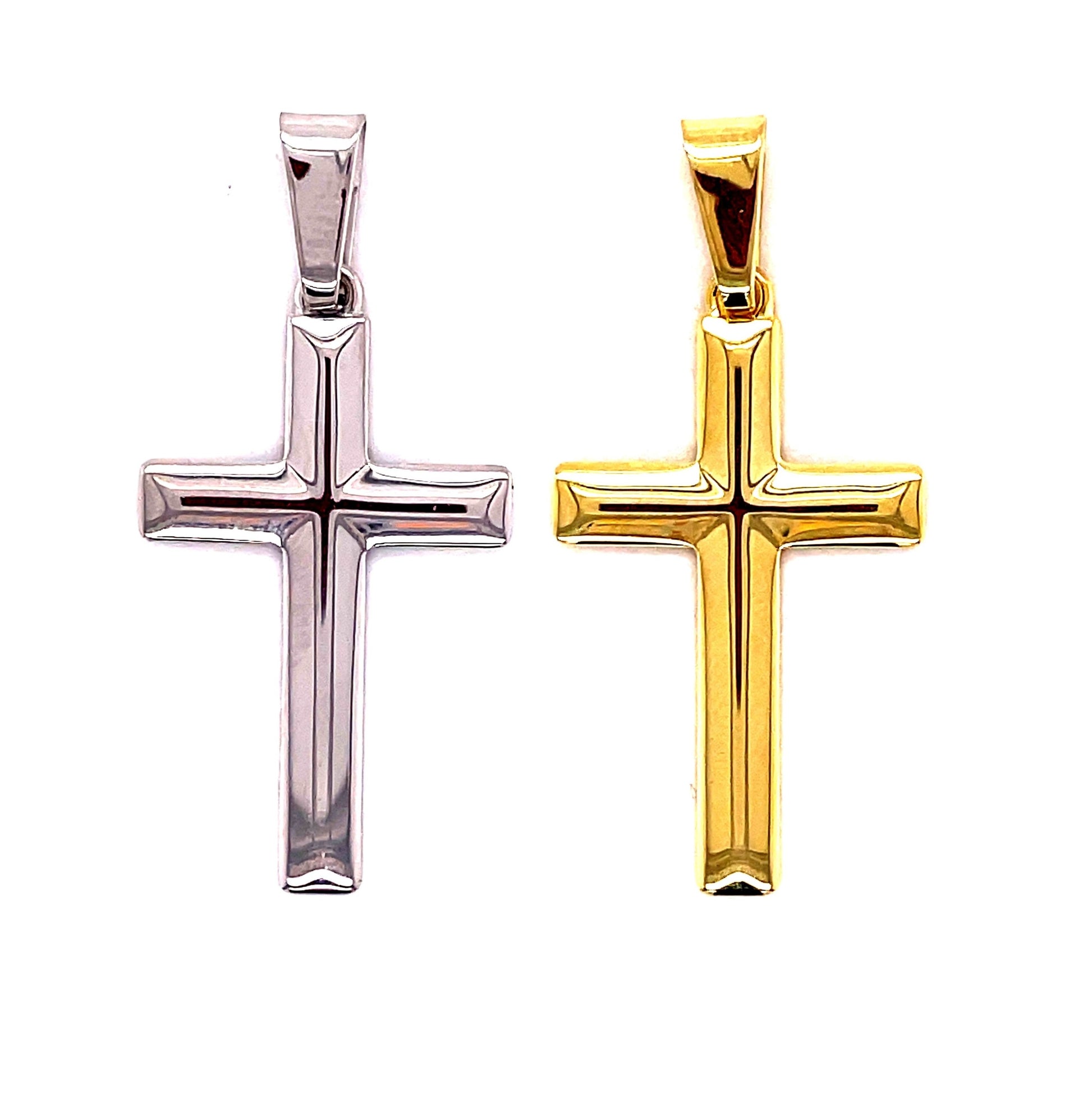Elaborado con plata de ley 925 chapada en rodio y oro de 14 quilates, este colgante de cruz es una excelente adición a cualquier colección de joyas.
