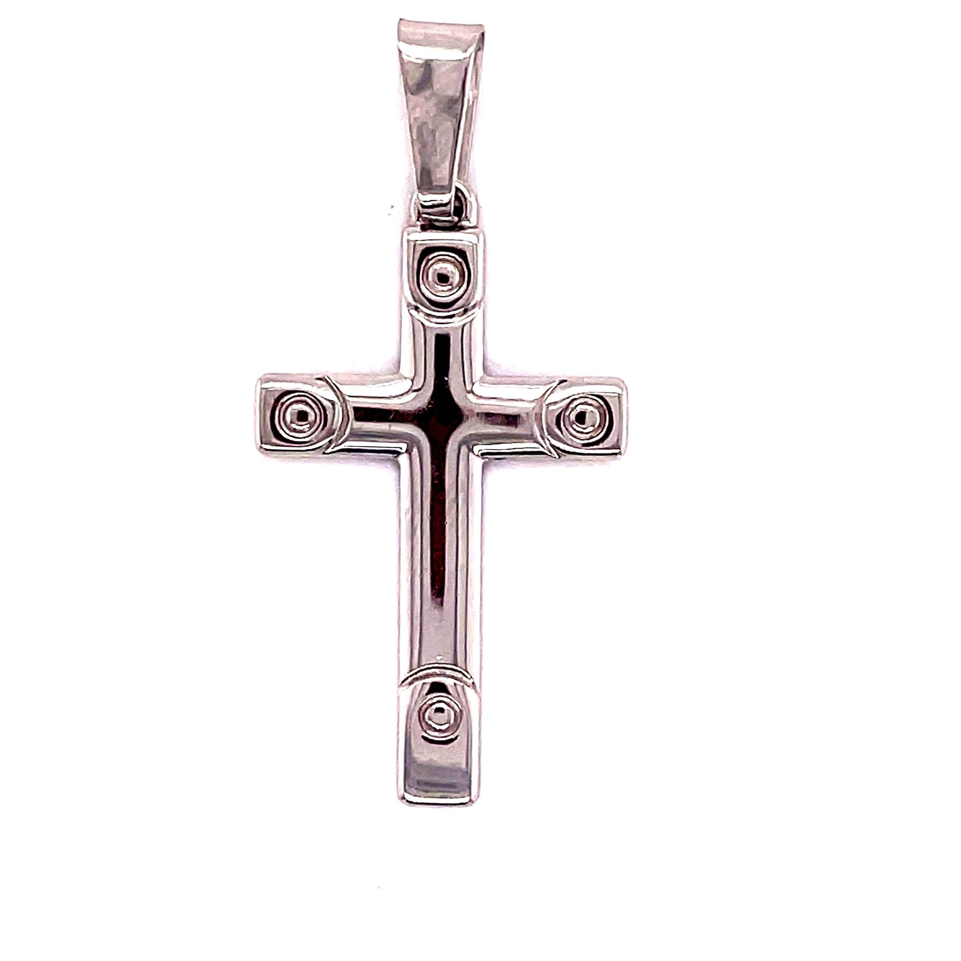 Elaborado con plata de ley 925 chapada en rodio y oro de 14 quilates, este colgante de cruz es una excelente adición a cualquier colección de joyas.