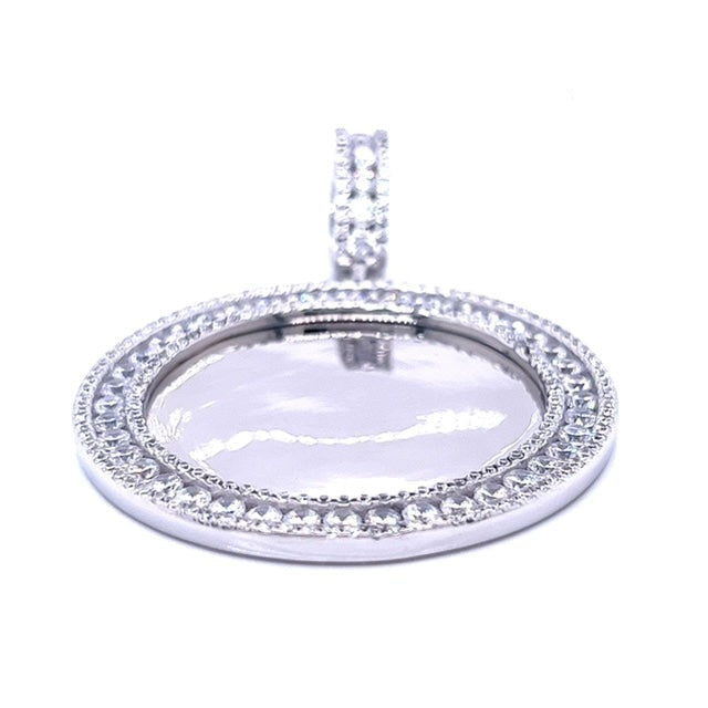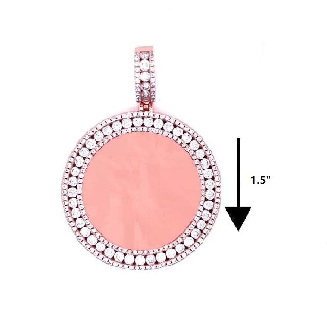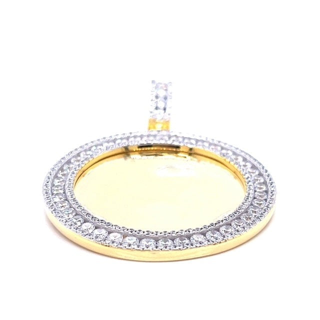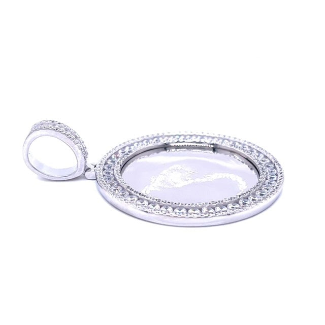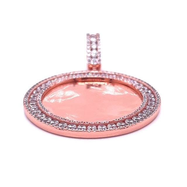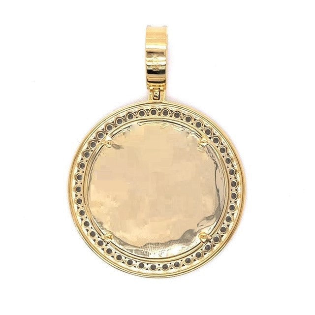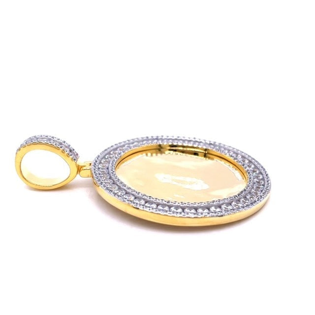 Colgante con imagen chapada en oro de 14 quilates y rodio de plata de ley 925, adornado con un borde de piedras de circonita