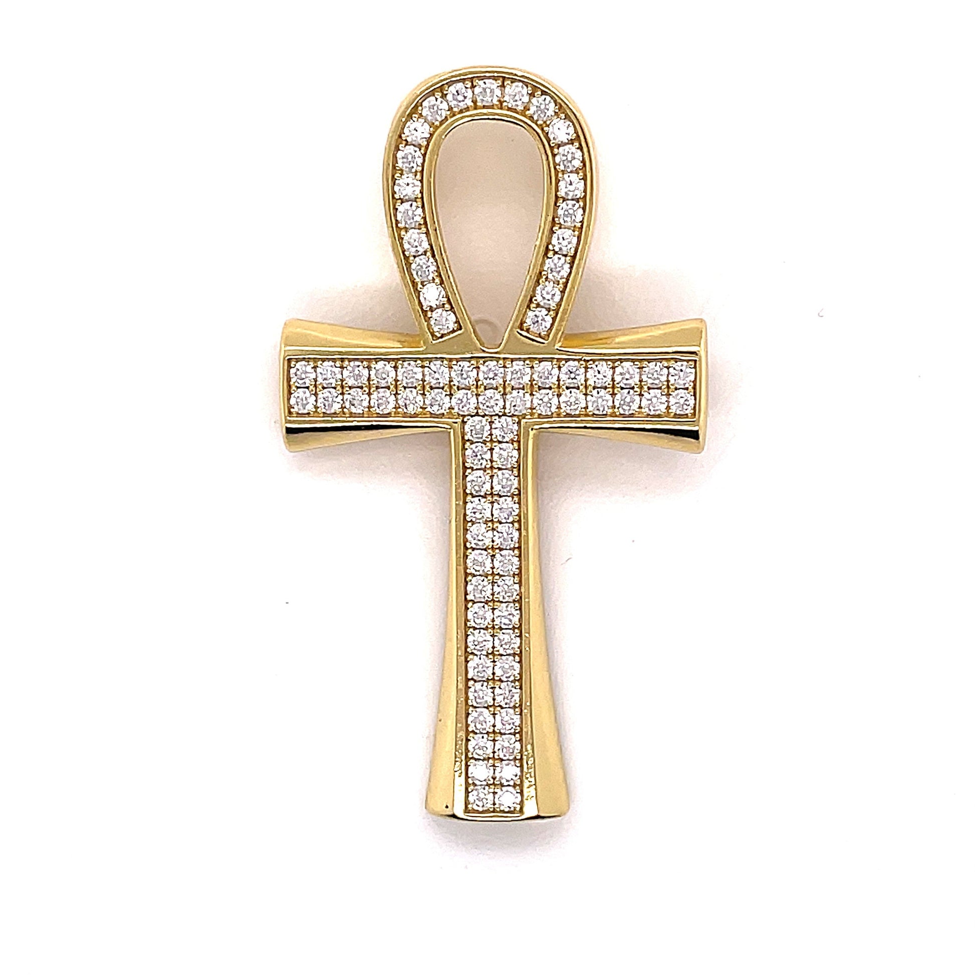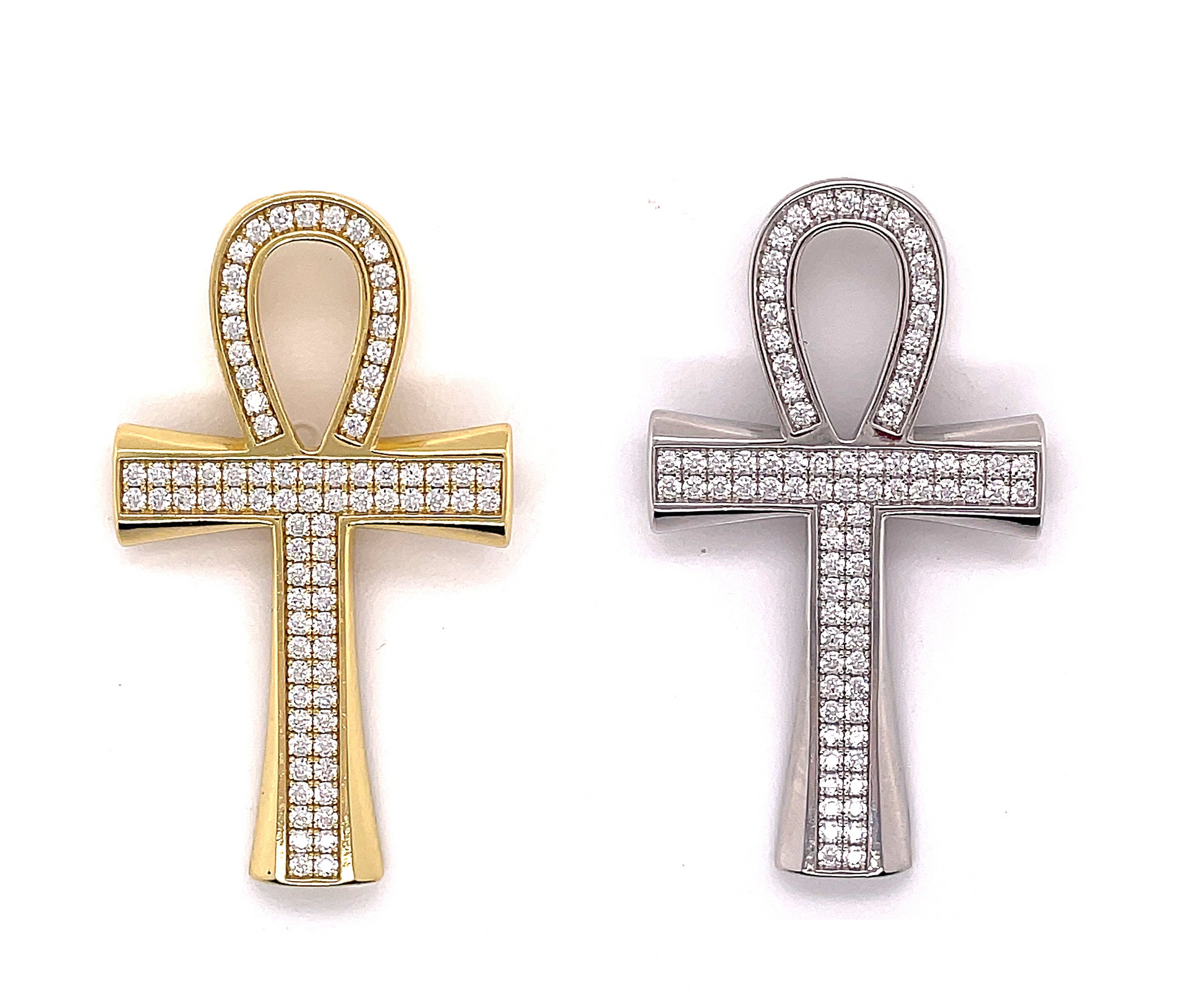 Plata de ley 925 rodiada/ chapada en oro de 14 quilates "CROSS ANKH" Charm CZ piedras redondas.