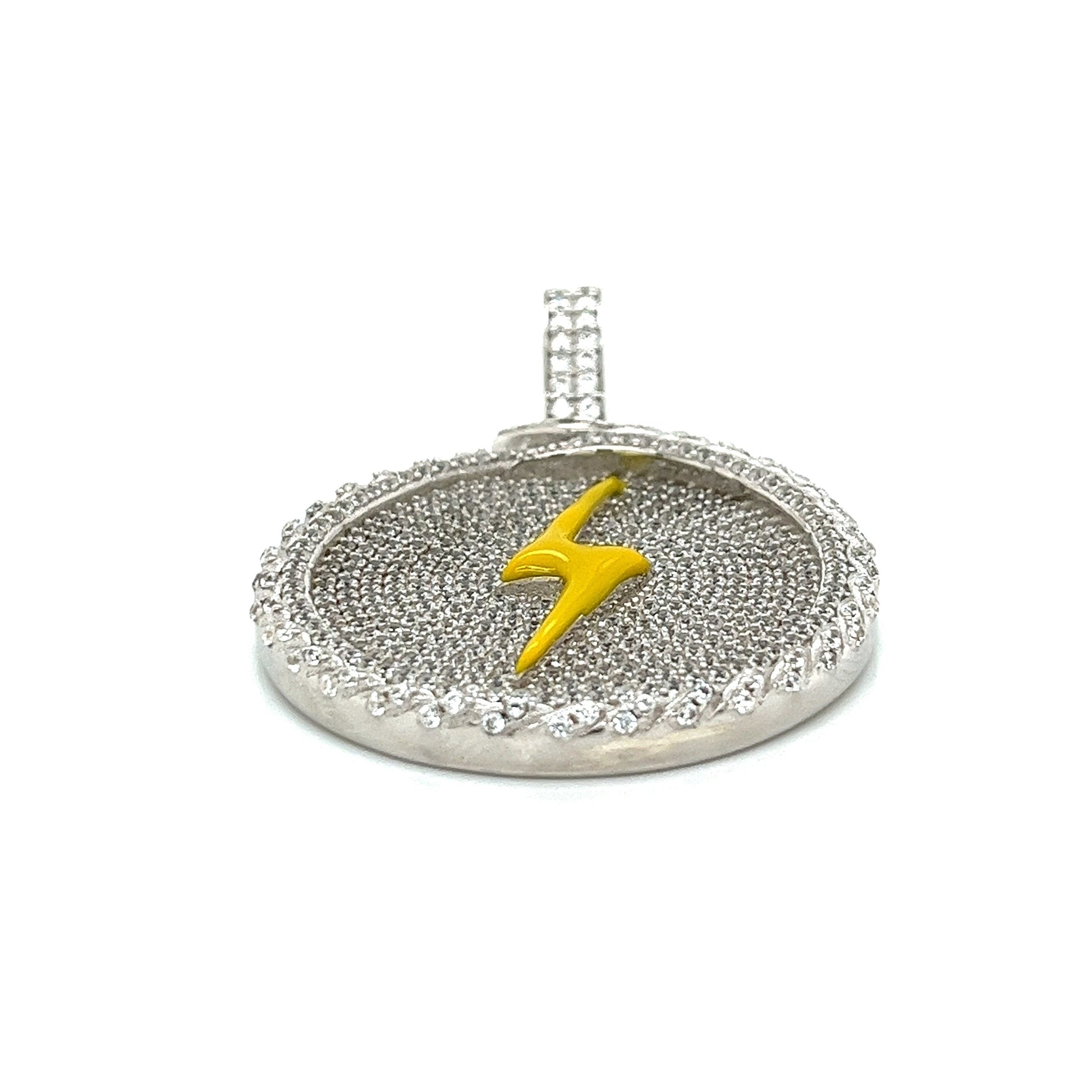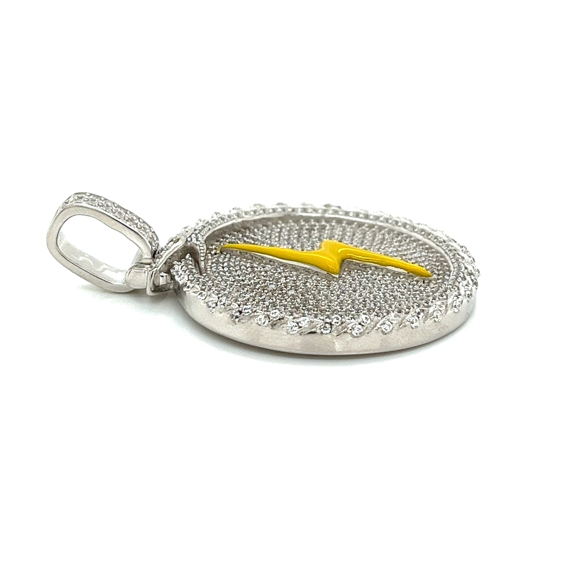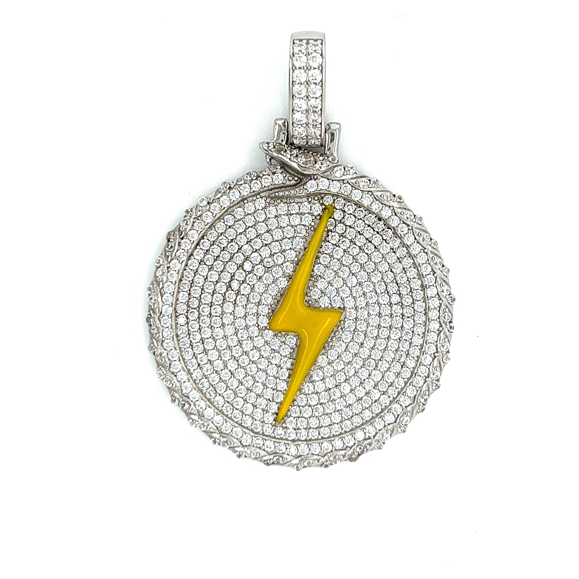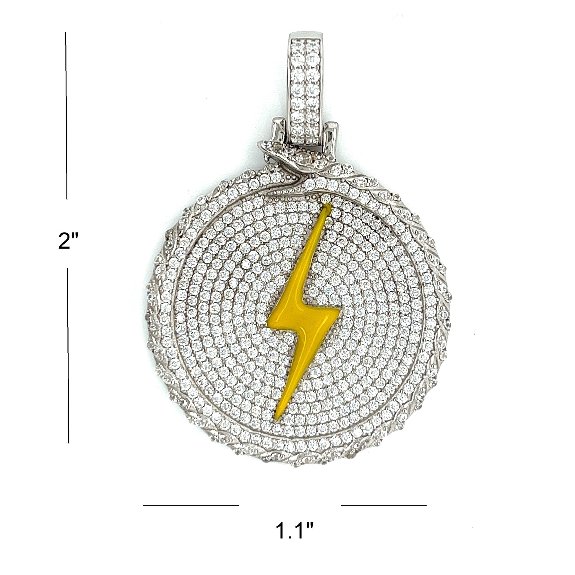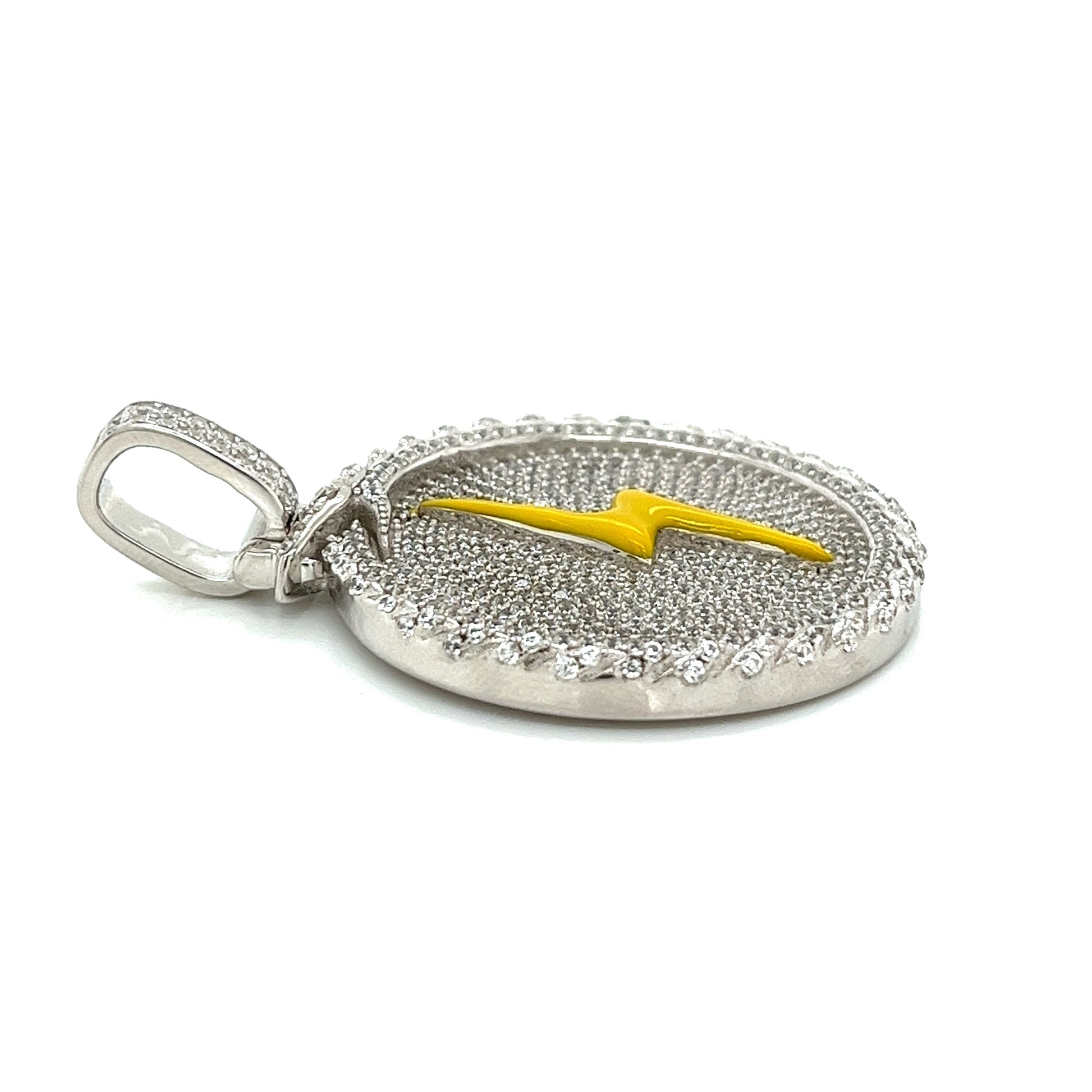 Impresionante colgante con iluminación de rodio y MOISSANITA de plata de ley 925: eleva tu estilo con esta belleza atemporal de 2" x 1,1 pulgadas. Con aproximadamente 3,75 quilates de piedras moissanitas redondas de MOISSANITE. Con alta calidad, añade un toque de glamour a cualquier look.