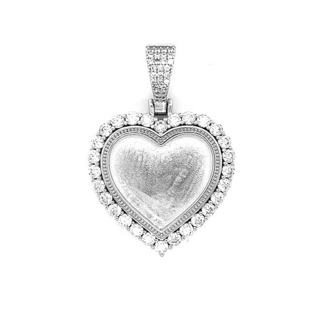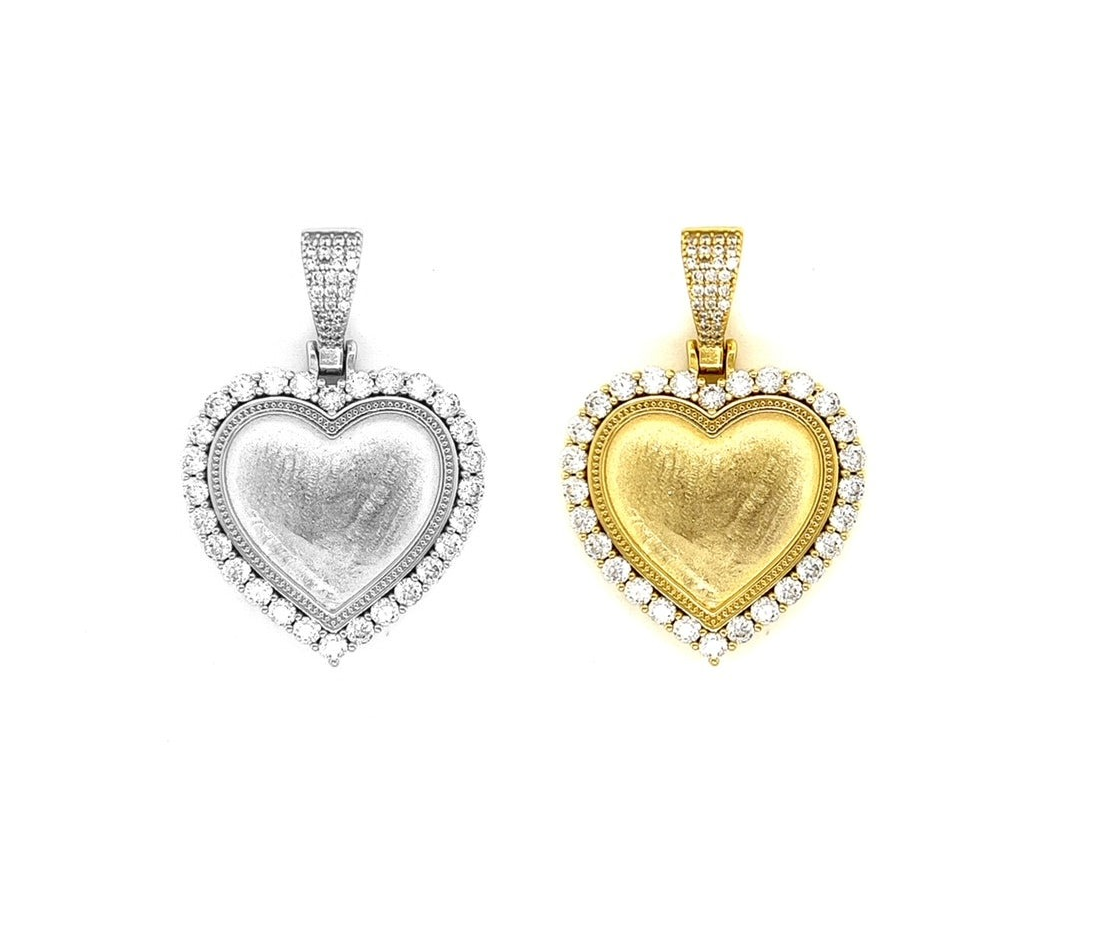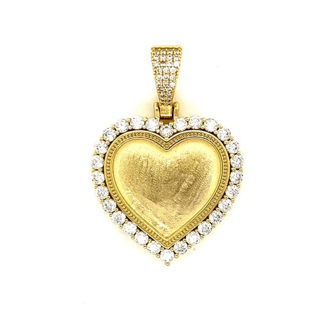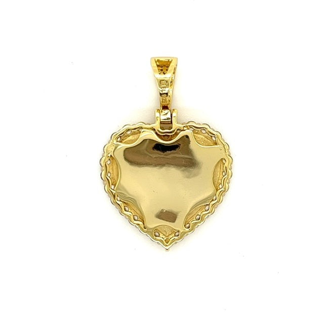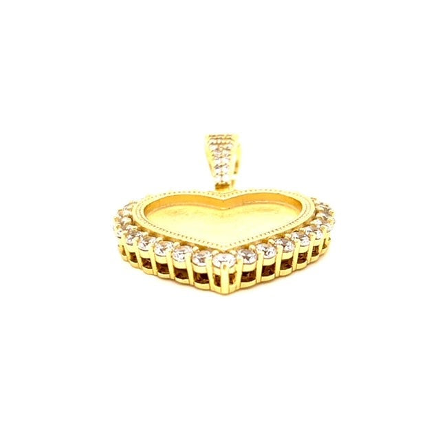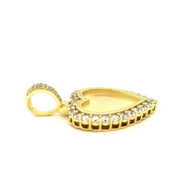 Dije con imagen de "Corazón" chapado en oro de 14 quilates y rodio en plata de ley 925 con piedras redondas de circonita cúbica.