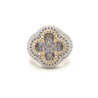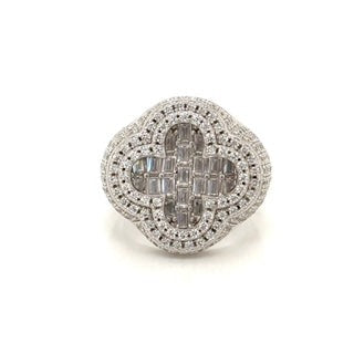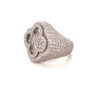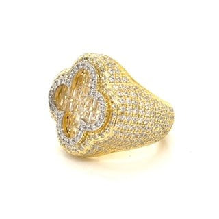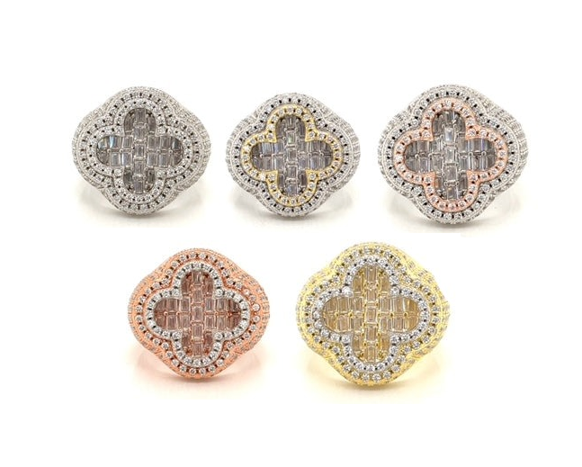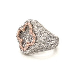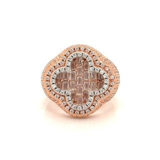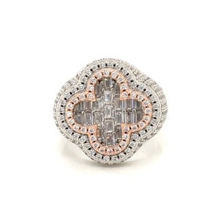 Anillo de trébol 3D chapado en oro rosa de 14 quilates y chapado en rodio de plata de ley 925 con piedras CZ de talla esmeralda