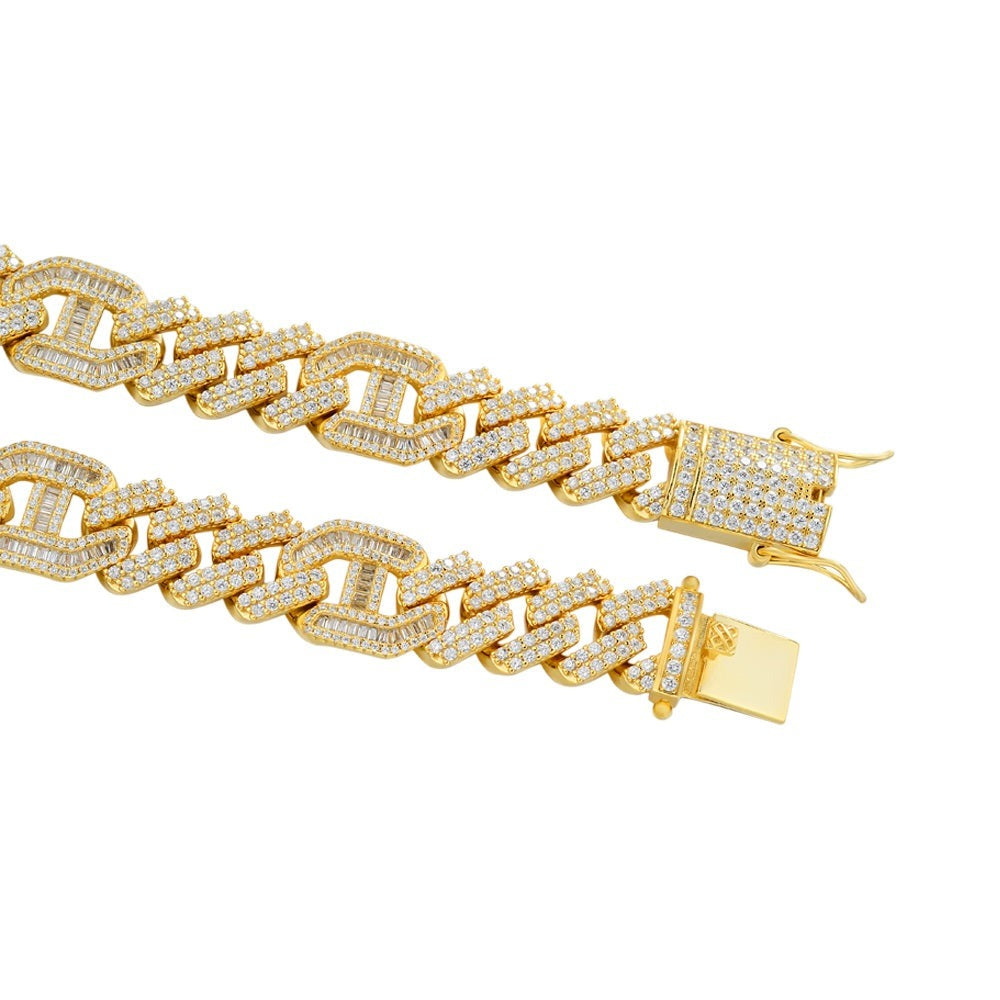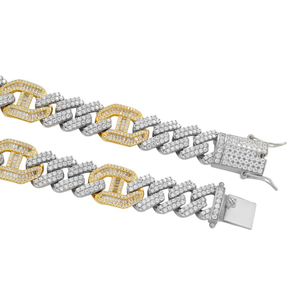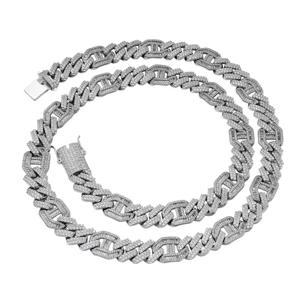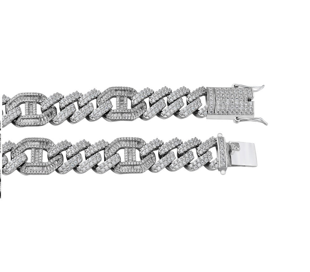 Impresionante cadena de piedras redondas y baguette heladas chapadas en rodio con circonita cúbica de plata de ley 925 : eleva tu estilo con esta belleza atemporal. Con una deslumbrante cadena de 15,5 mm con piedras redondas de circonita cúbica, añade un toque de glamour a cualquier look.