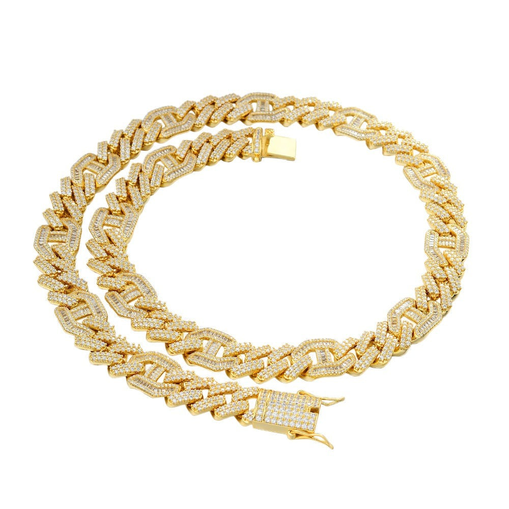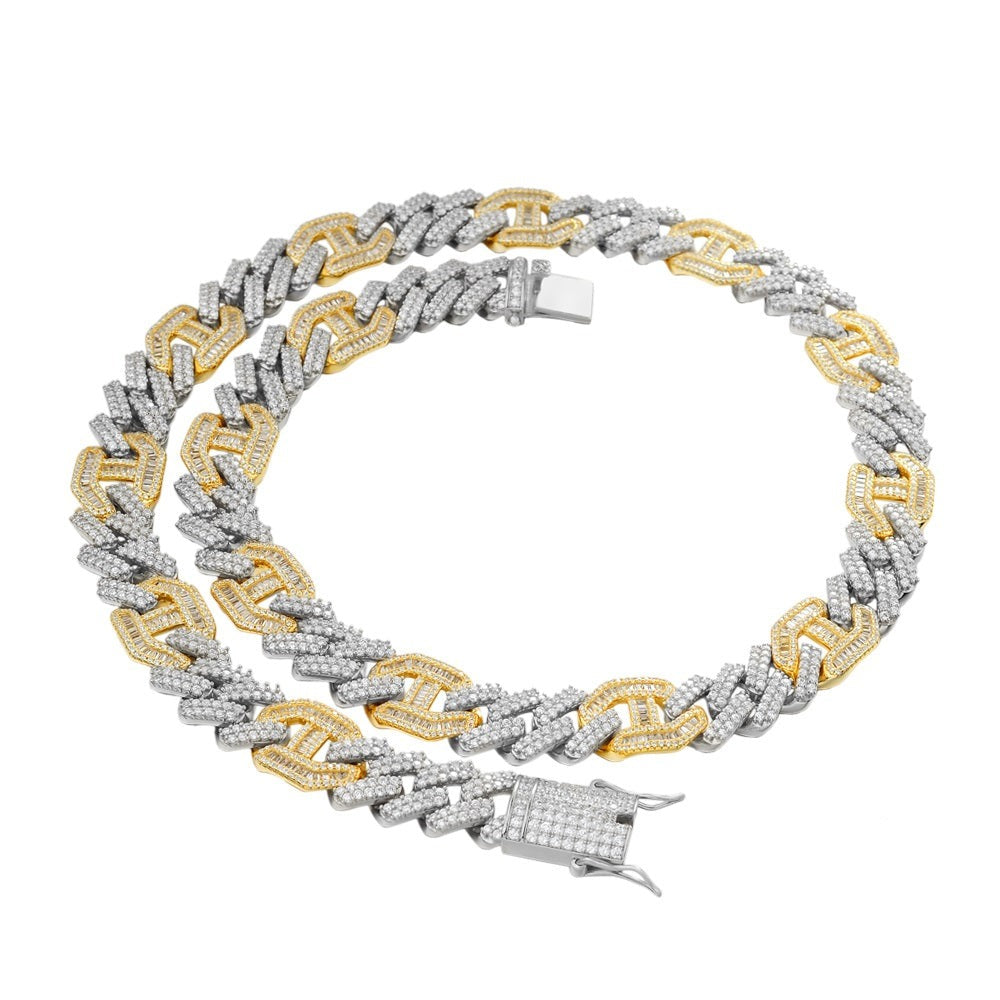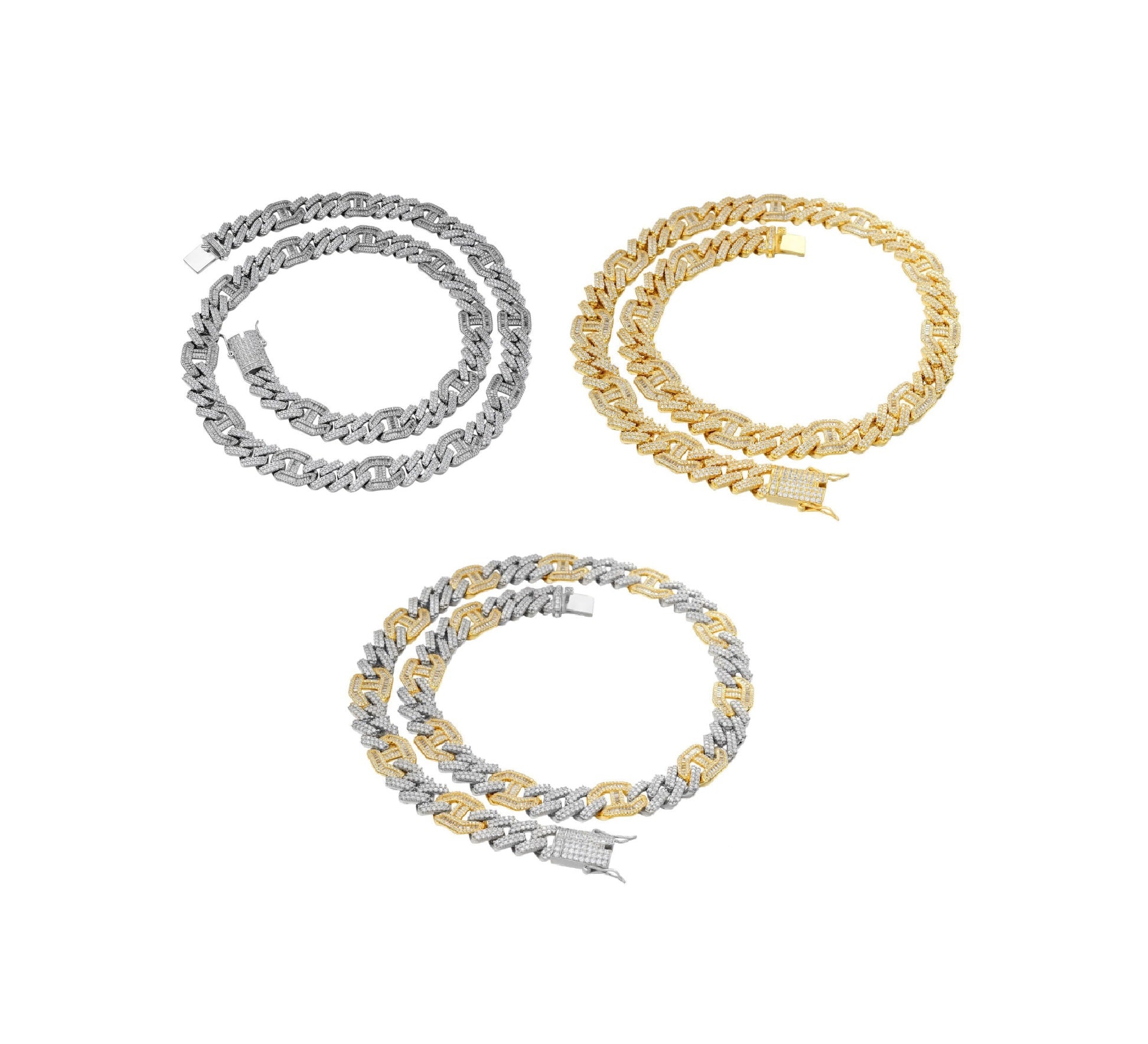 Impresionante cadena de piedras redondas y baguette heladas chapadas en rodio con circonita cúbica de plata de ley 925 : eleva tu estilo con esta belleza atemporal. Con una deslumbrante cadena de 15,5 mm con piedras redondas de circonita cúbica, añade un toque de glamour a cualquier look.