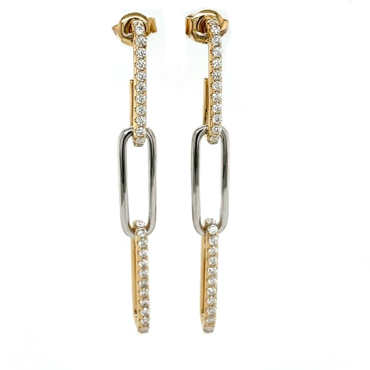 Impresionantes pendientes de clip de papel de dos tonos con moissanita de oro de 14 quilates: eleva tu estilo con esta belleza atemporal. Con un deslumbrante aprox. 0.4CT de Piedras Moissanitas, añade un toque de glamour a cualquier look.