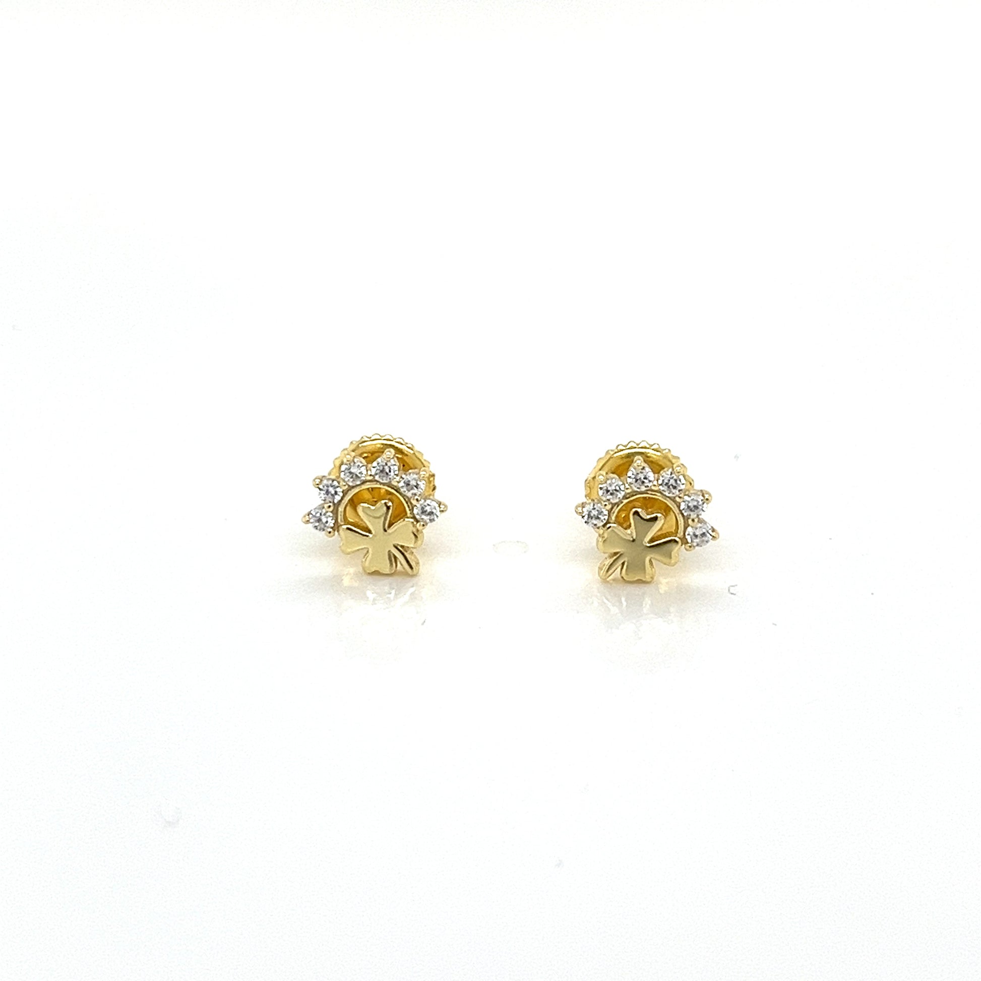 Impresionantes aretes con rosca de flor de trébol de moissanita de oro de 14 quilates: eleva tu estilo con esta belleza atemporal. Con un deslumbrante aprox. 0,14 quilates de piedras moissanita redondas, añade un toque de glamour a cualquier look.