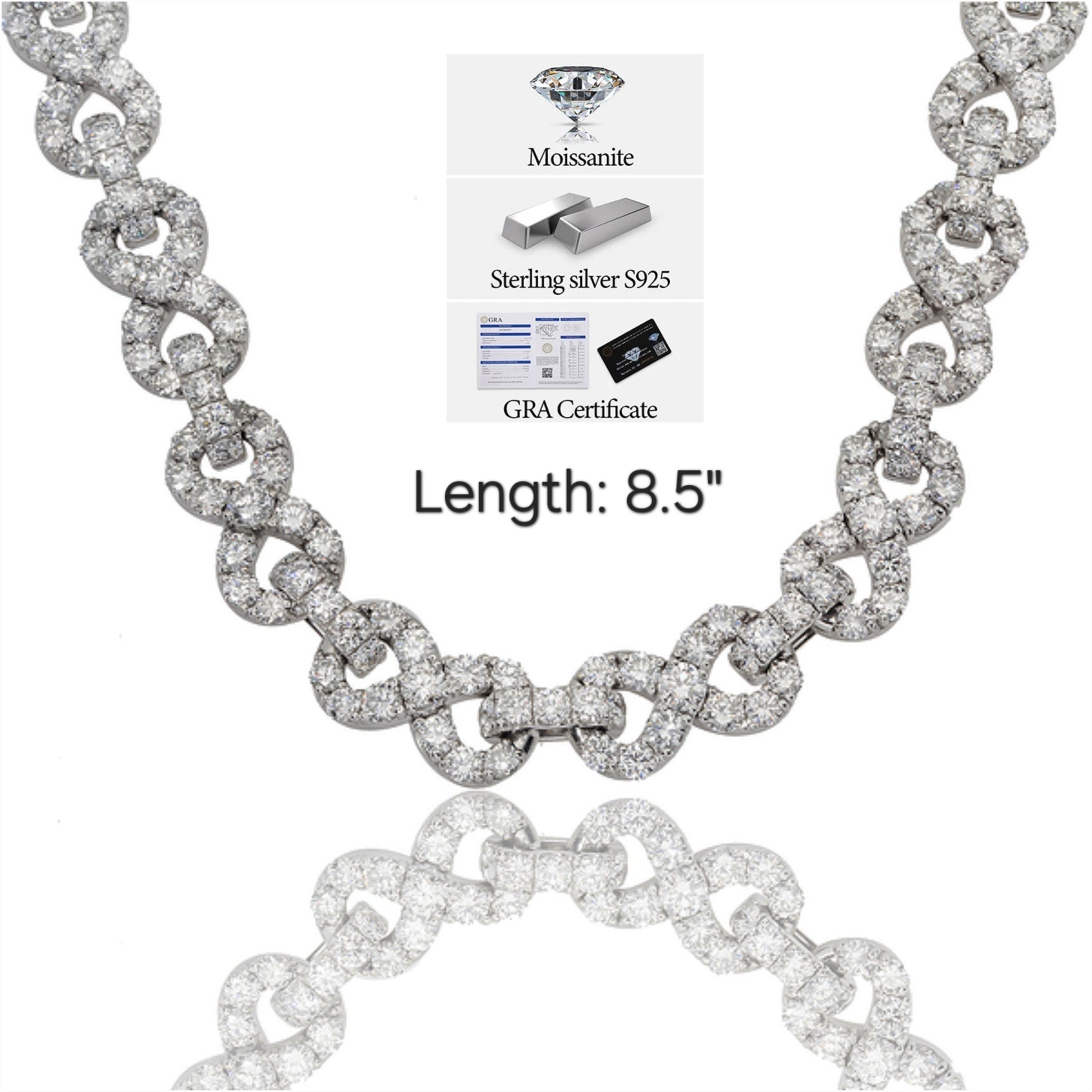 Iced Out 10mm Sterling Silver 925 Clustered Moissanite Infinity Link 7.5"or 8.5" Bracelet - M300059
