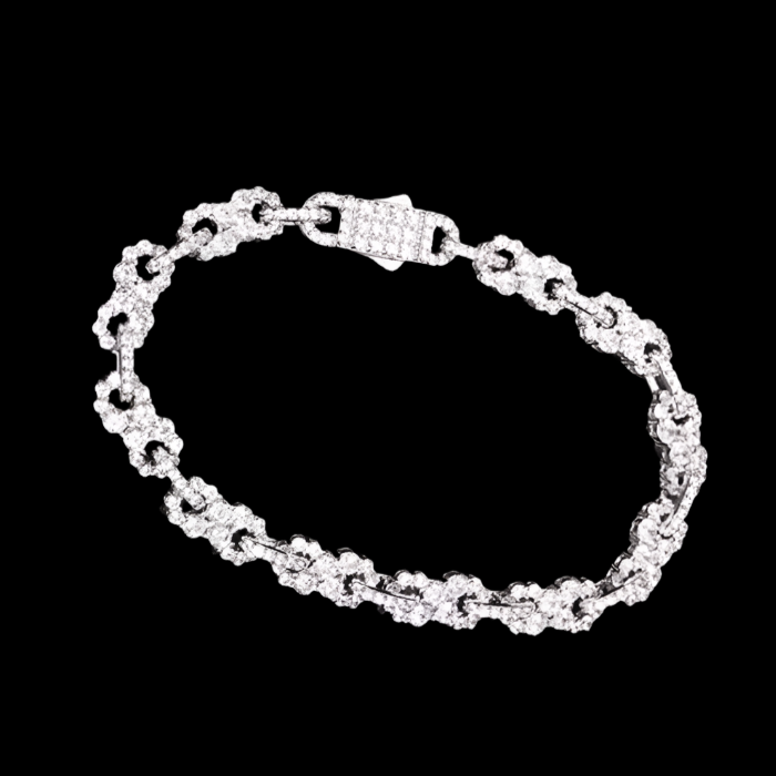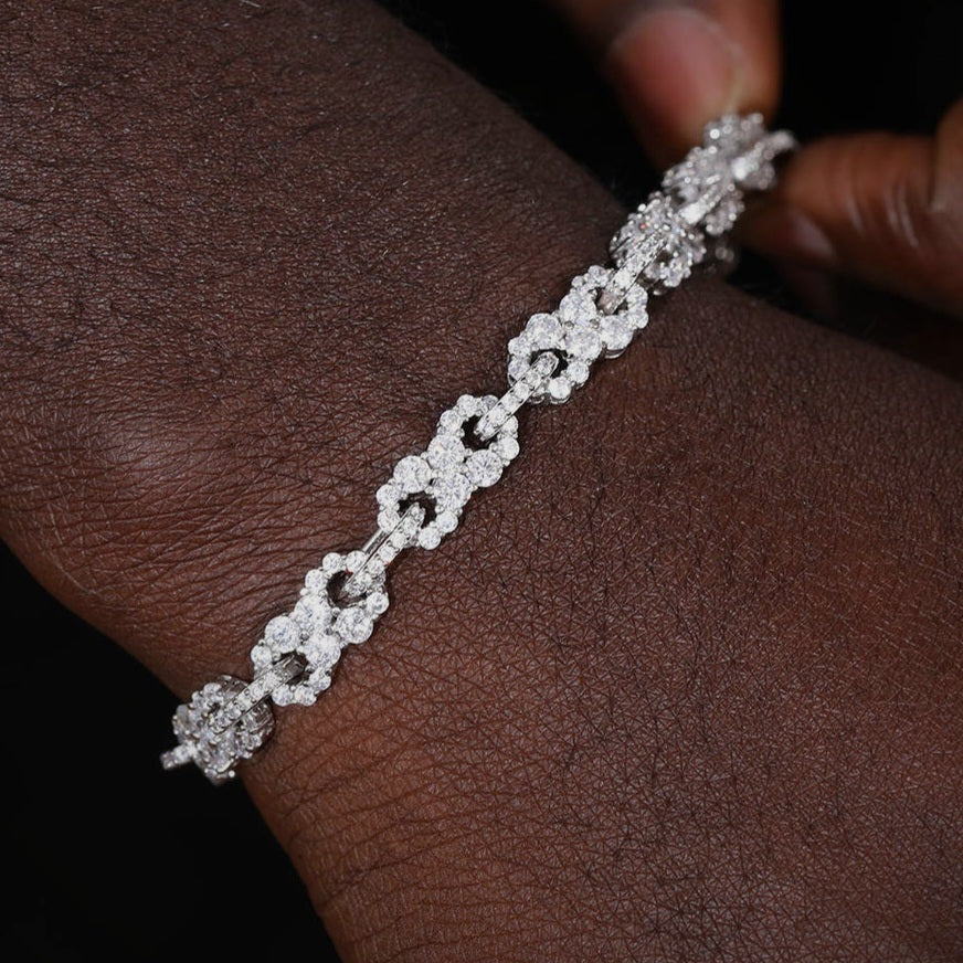 Experience luxurious and timeless elegance with our Iced Out Sterling Silver Clustered Moissanite Infinity Link Bracelet. Made from high-quality 925 sterling silver, this 10mm bracelet features a stunning infinity link design, adorned with sparkling clustered moissanite stones. Available in 7.5" or 8.5" length, perfect for adding a touch of glamour to any outfit.