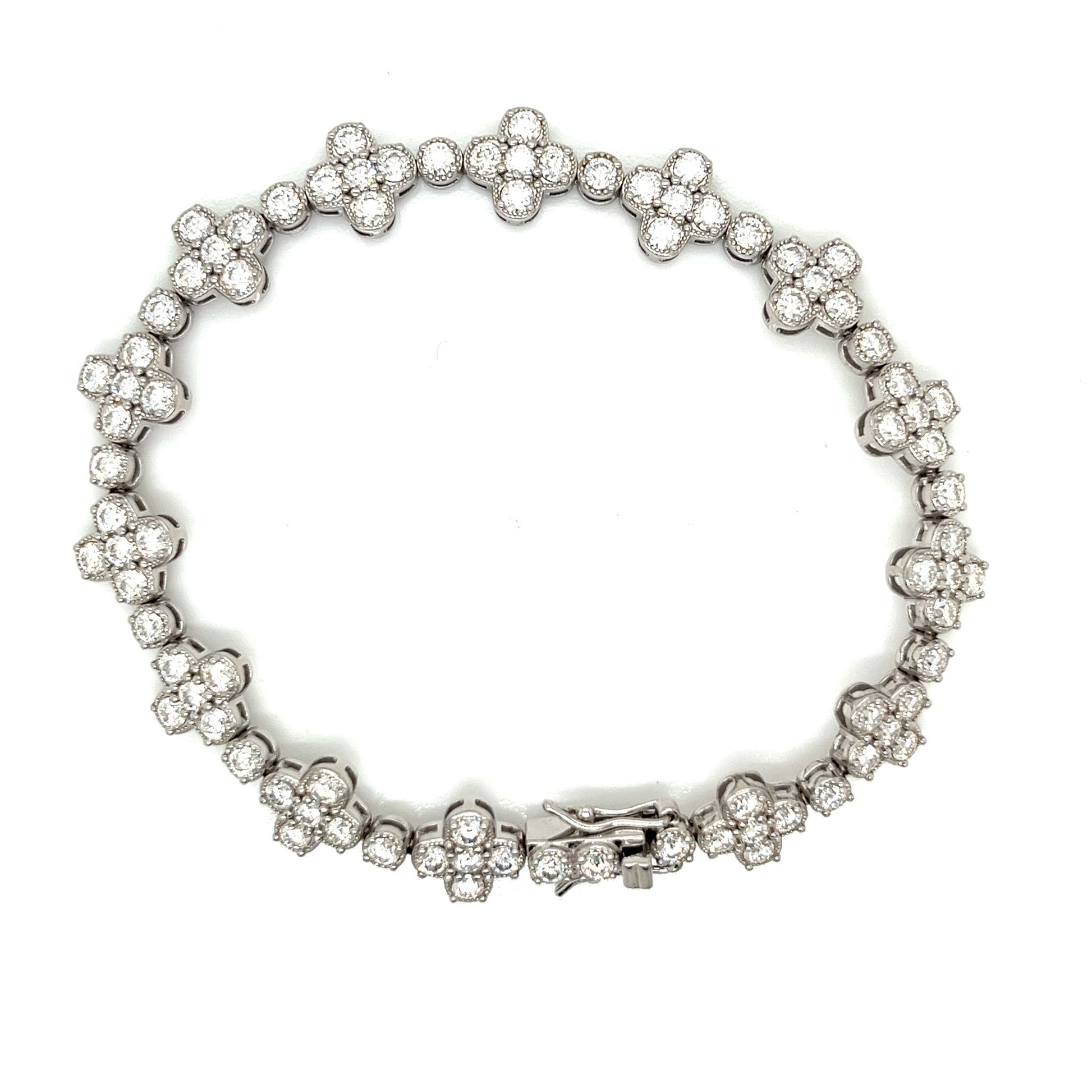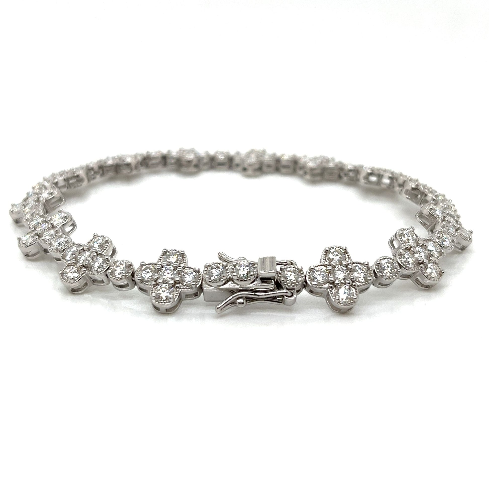 Pulsera de trébol baguette de 8 mm con moissanita de plata de ley 925 : eleva tu estilo con esta belleza atemporal. Con aprox. 6,86 CT para 7,5", 6,94 CT para 8,25" y 7,07 CT para 8,5" de piedras moissanita redondas y baguette, añade un toque de glamour a cualquier look.