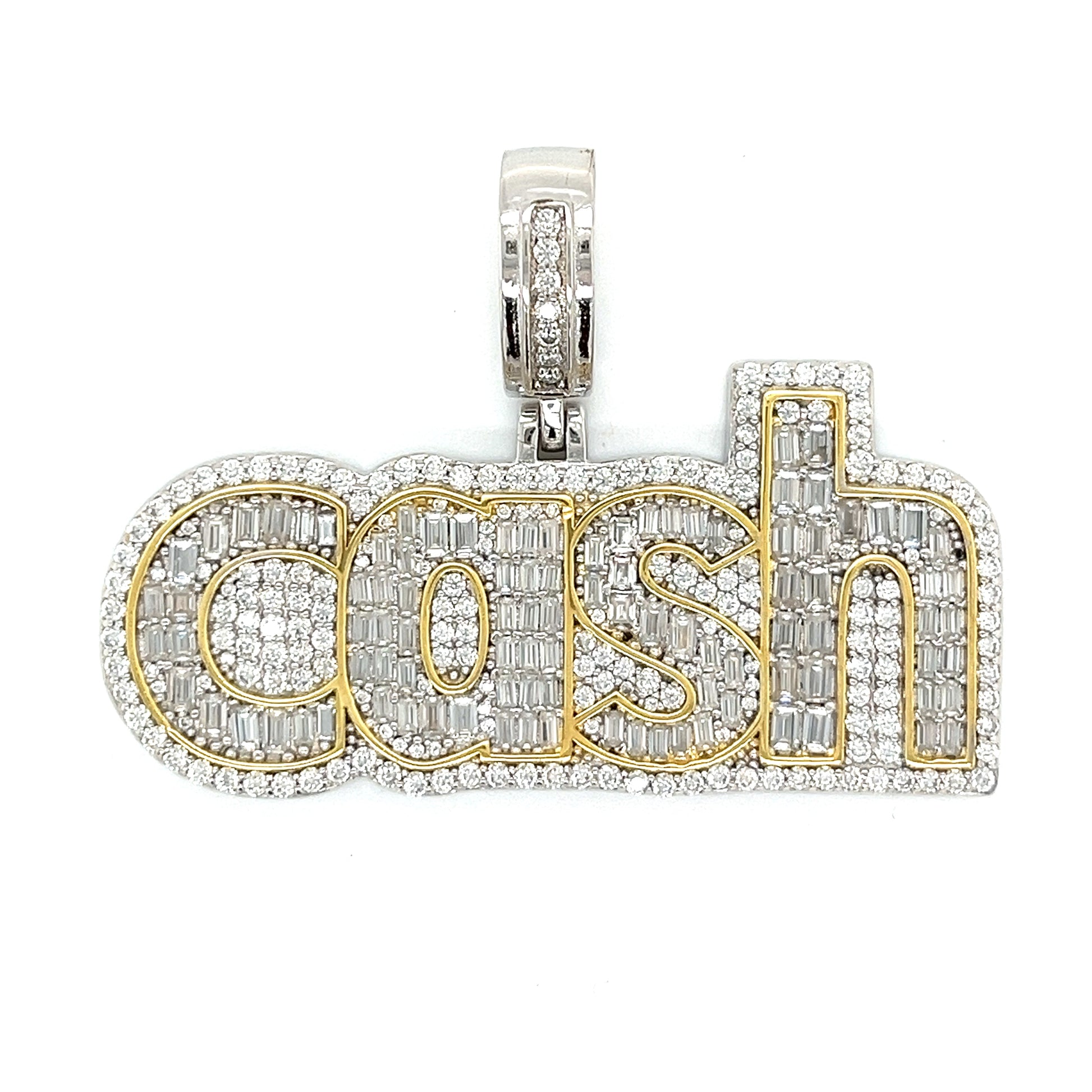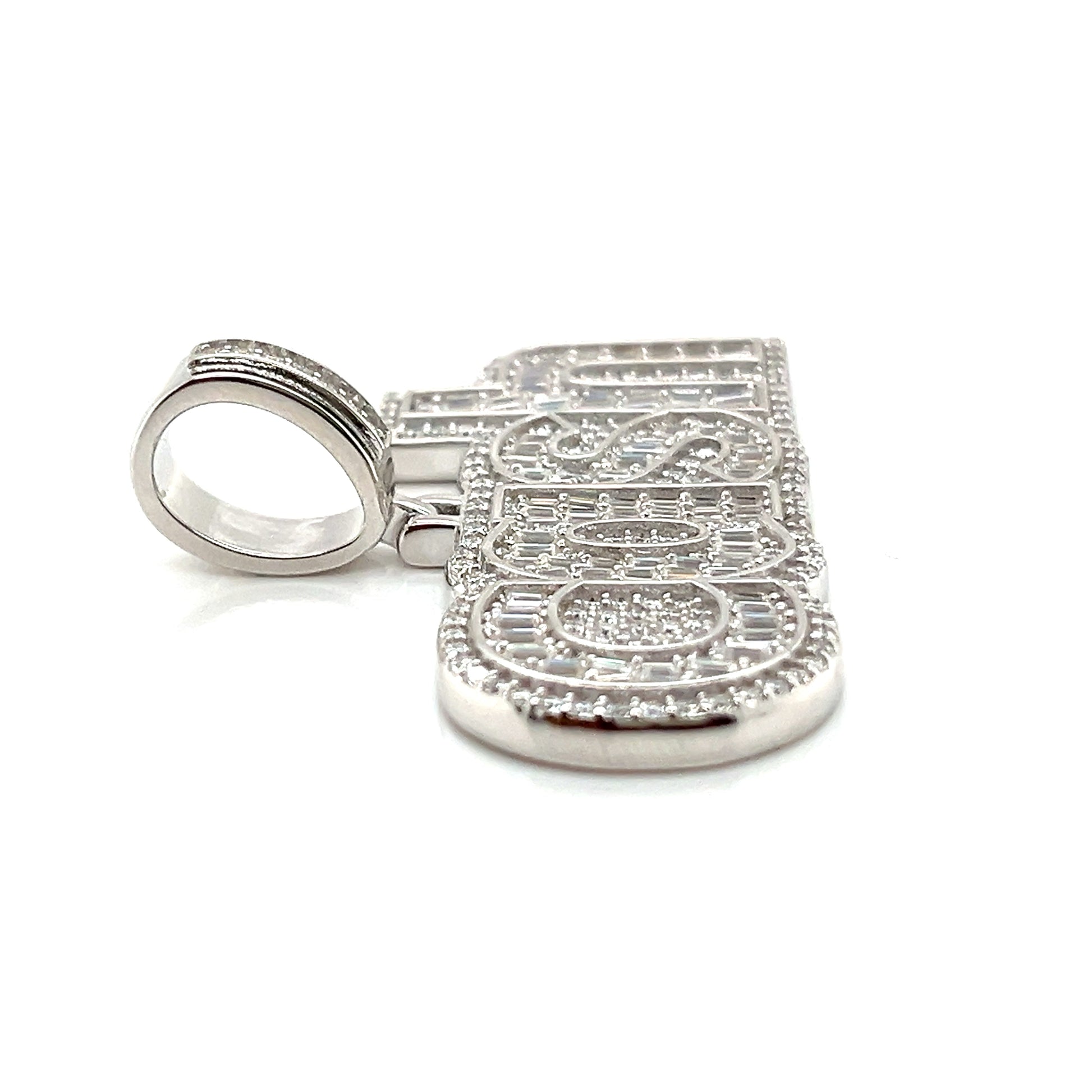 Impresionante colgante en efectivo de moissanita y rodio de plata de ley 925: eleva tu estilo con esta belleza atemporal. Con aprox. Piedras moissanita redondas y baguette de 5,69 quilates que añaden un toque de glamour a cualquier look.