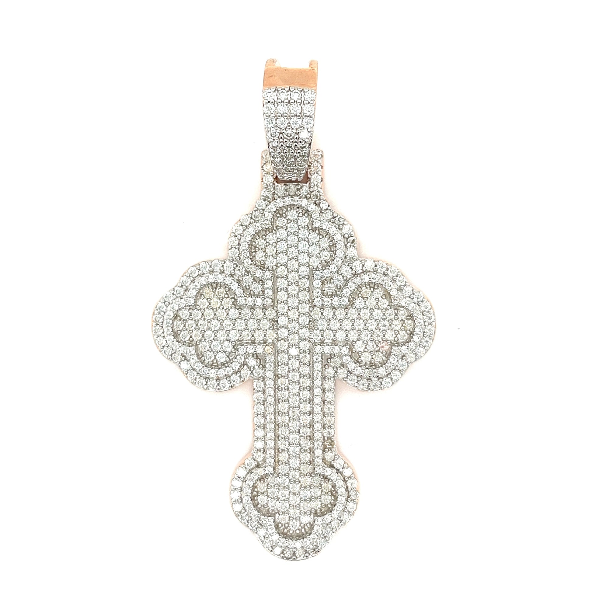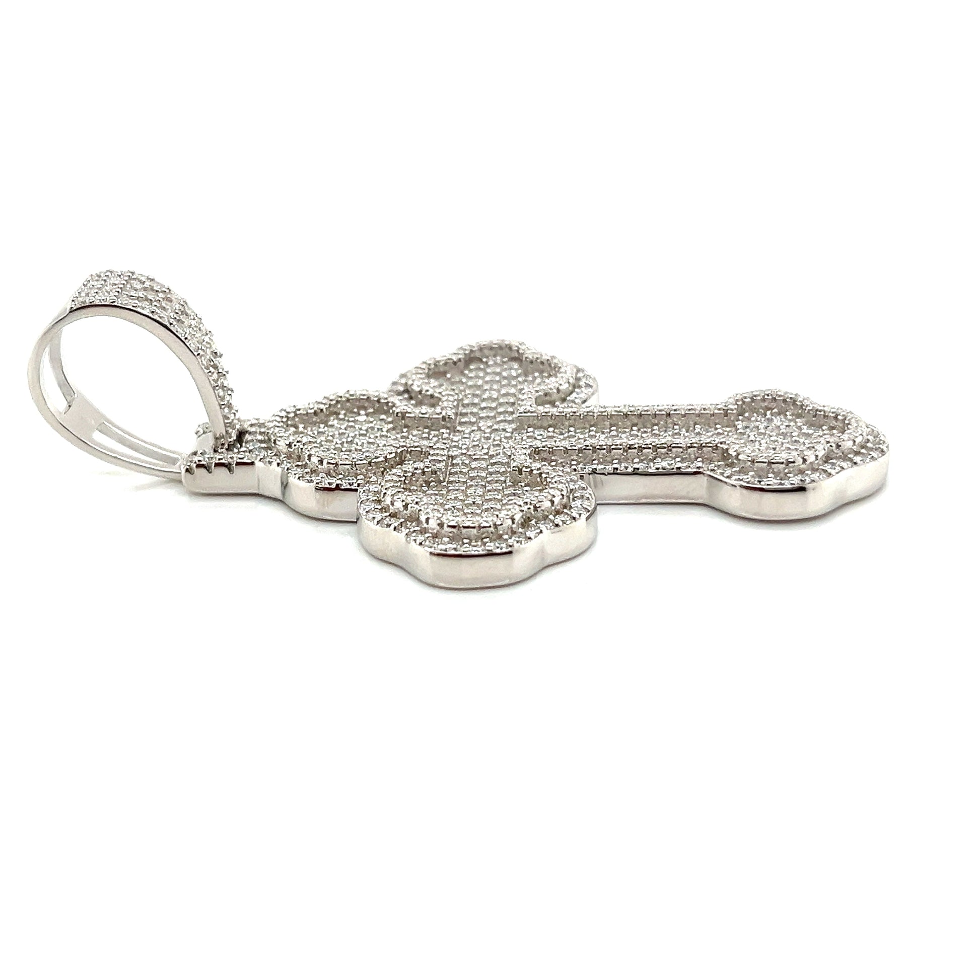 Impresionante colgante de cruz de moissanita de rodio en plata de ley 925: eleva tu estilo con esta belleza atemporal. Con aprox. Piedras moissanita redondas y baguette de 4,65 quilates que añaden un toque de glamour a cualquier look.