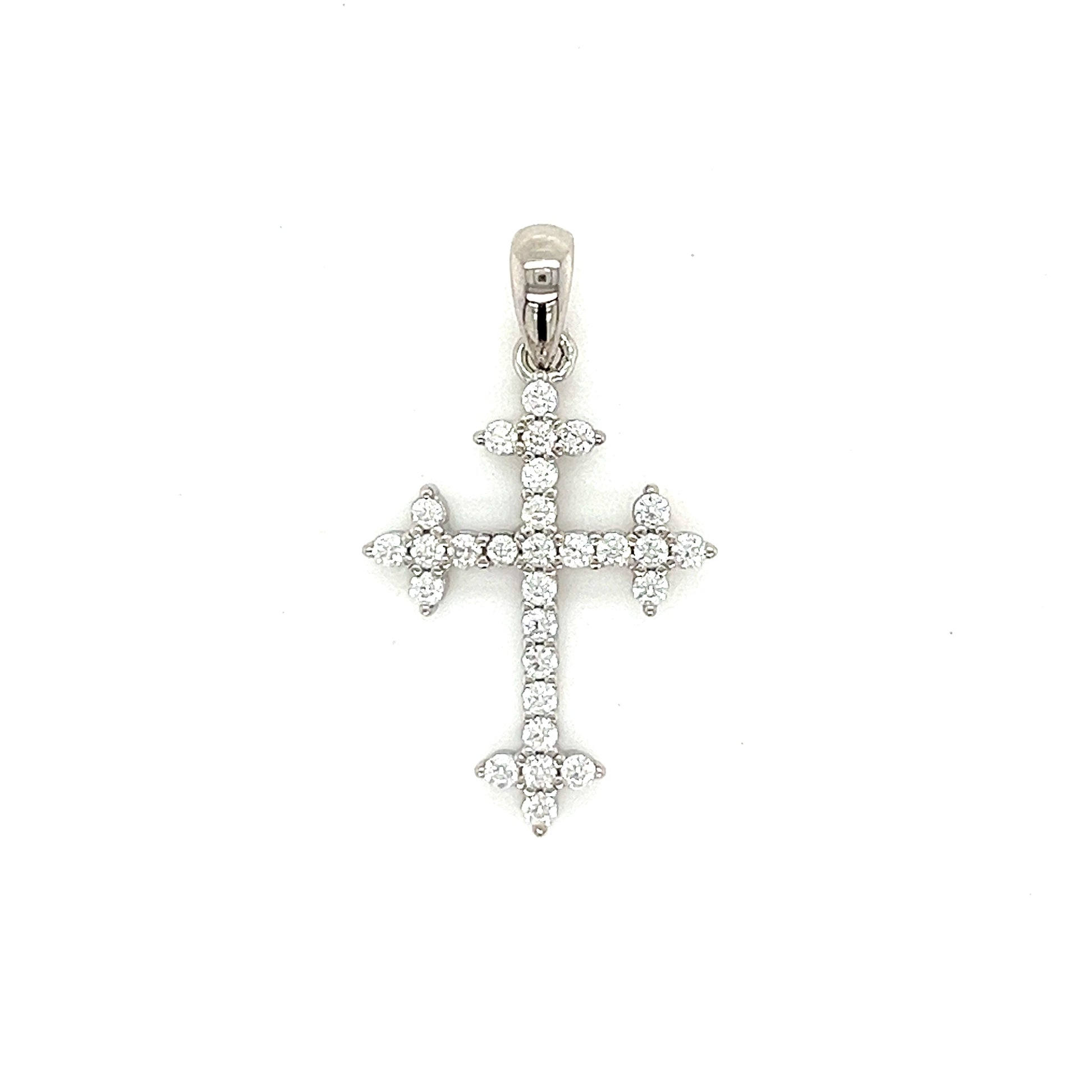 Abrace la elegancia con nuestro colgante cruzado de MOISSANITE en plata de ley 925 y rodio. En plata blanca y oro amarillo blanco de 14 quilates adornado con impresionantes piedras de aprox. 0,52 CT de piedras MOISSANITE redondas. Libera la belleza de la naturaleza al alcance de tu mano.