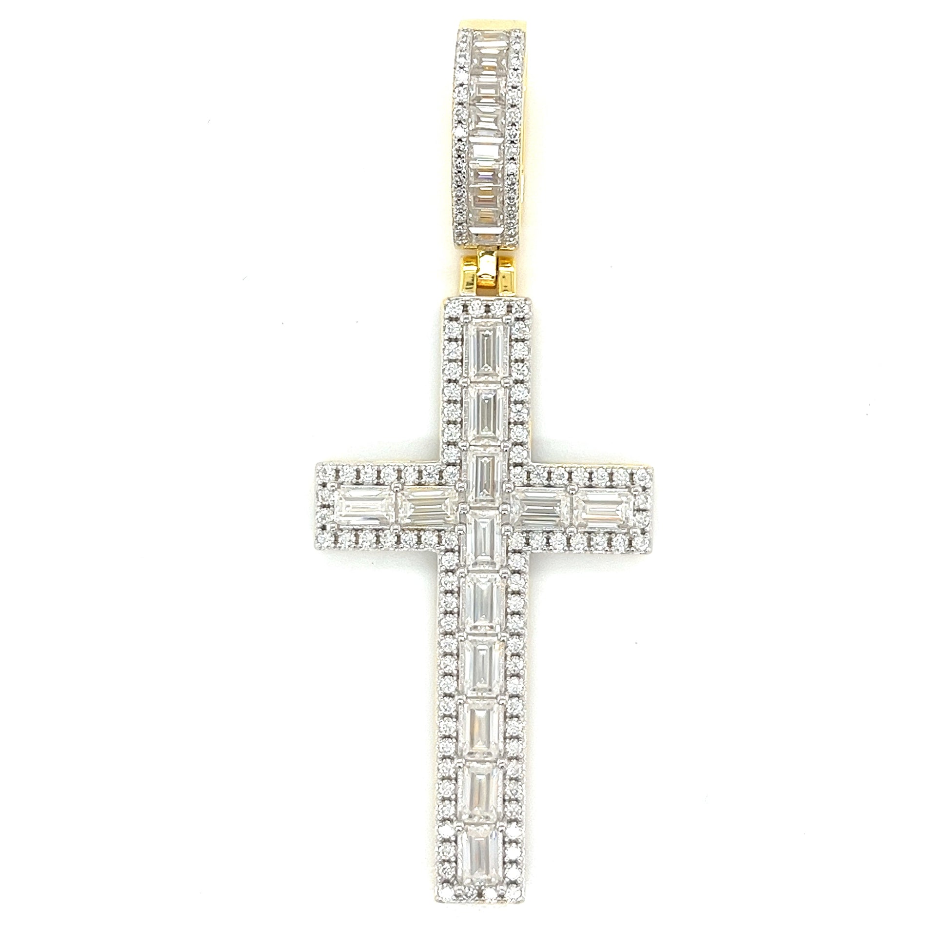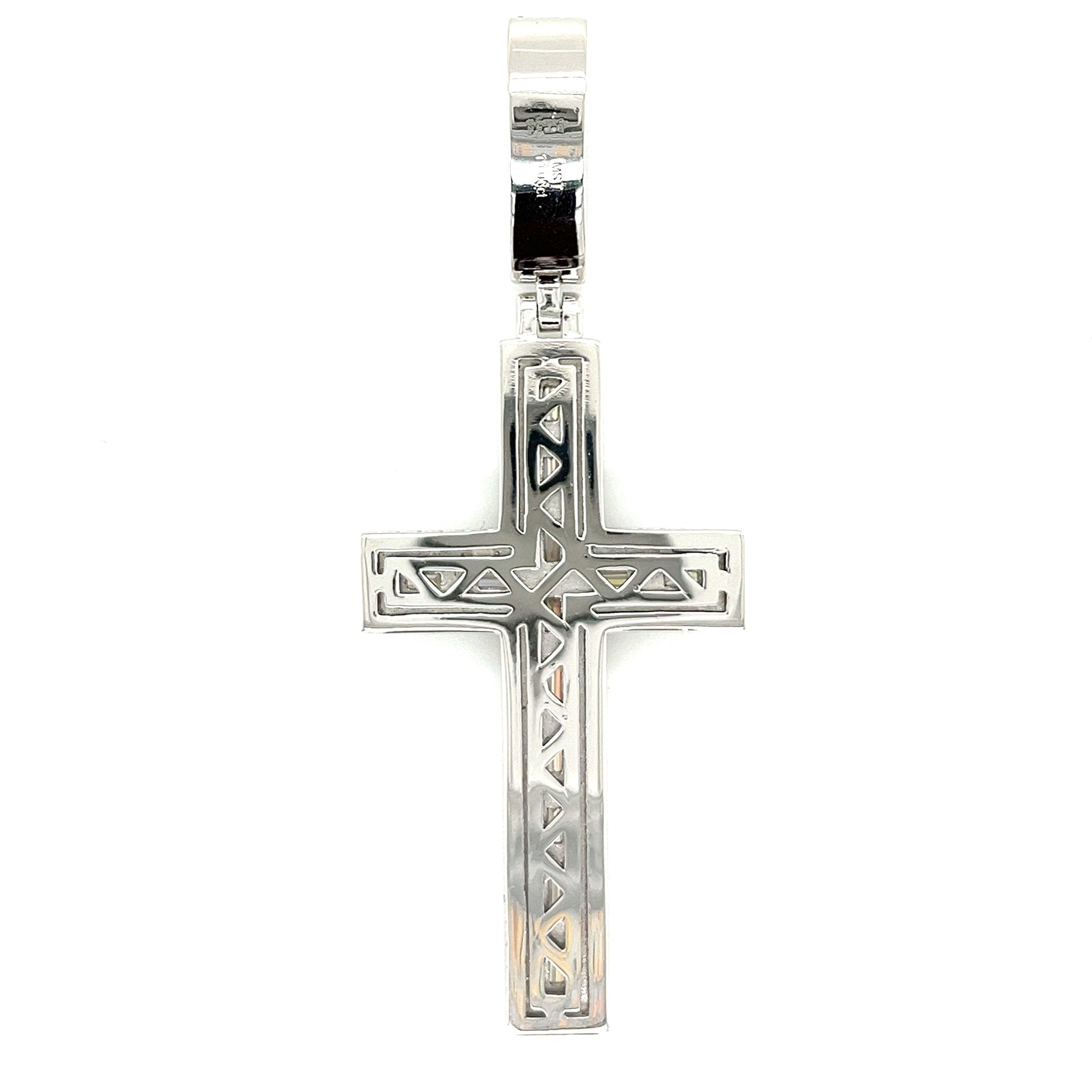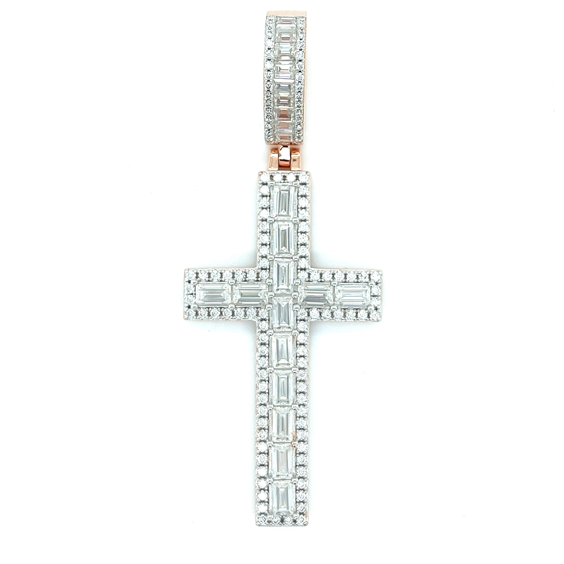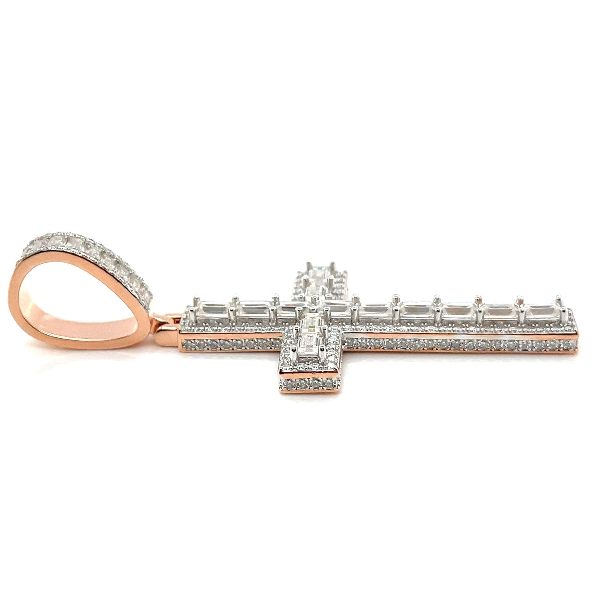 Impresionante colgante de cruz de moissanita de rodio en plata de ley 925: eleva tu estilo con esta belleza atemporal. Con aprox. 11,07 quilates de piedras moissanita redondas y baguette que añaden un toque de glamour a cualquier look.