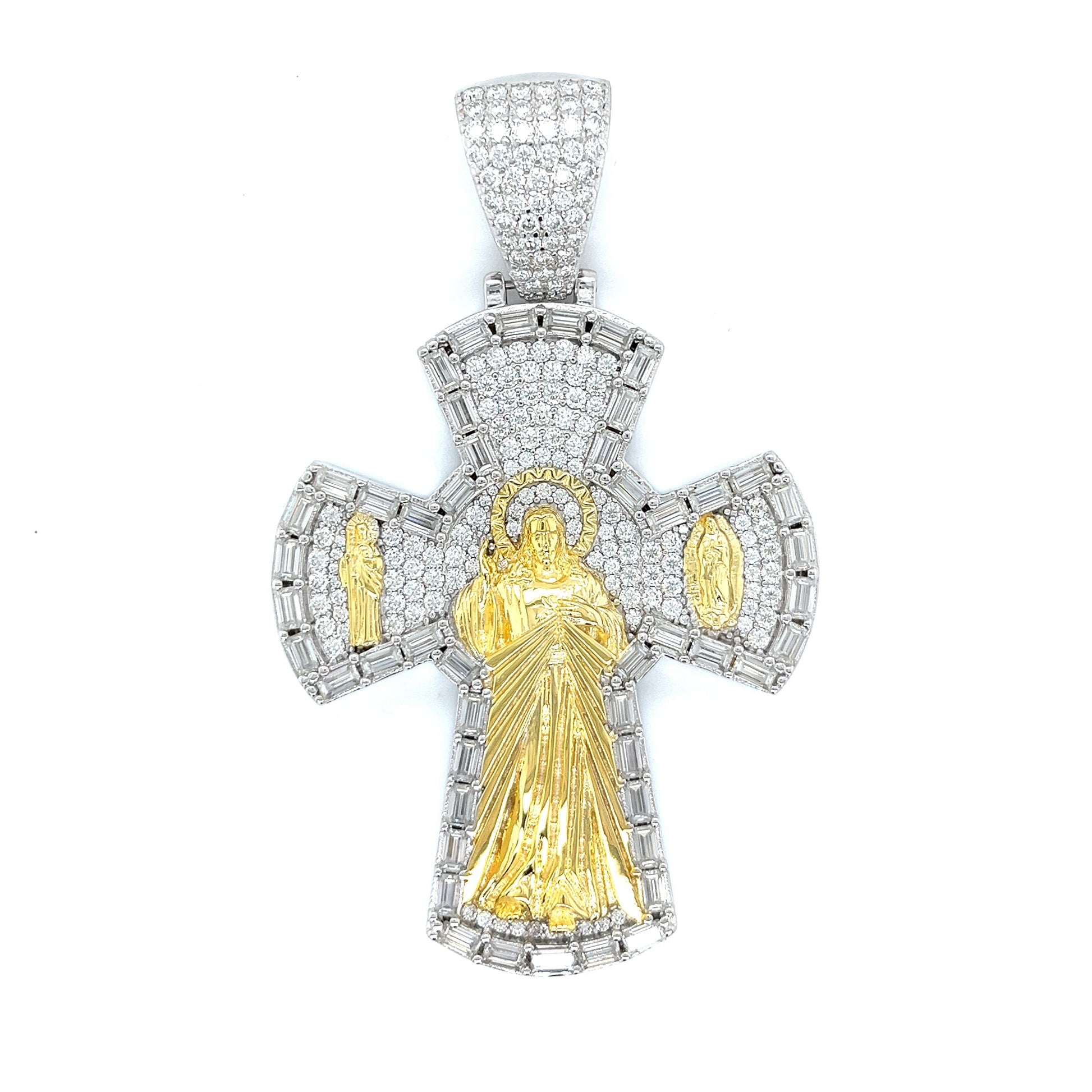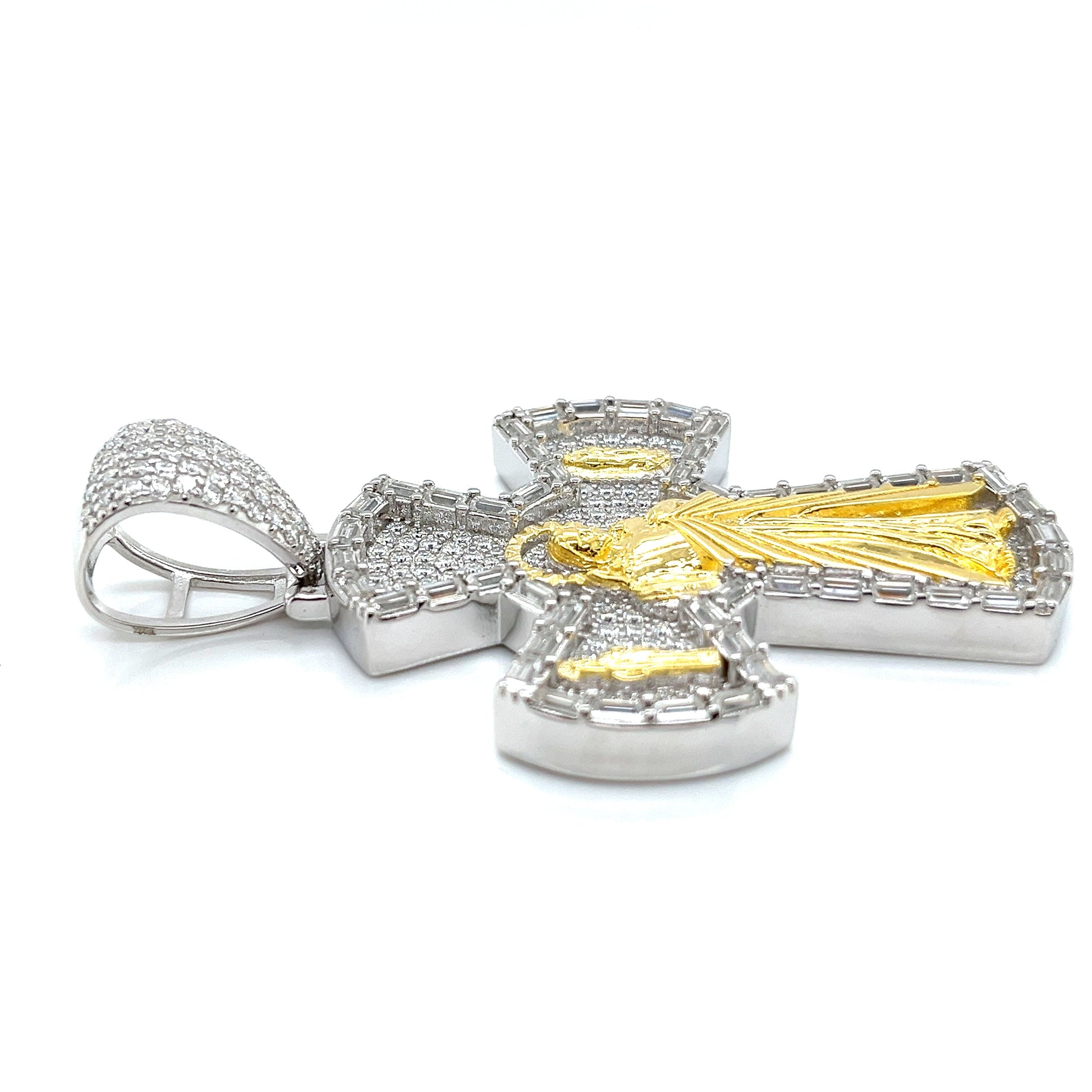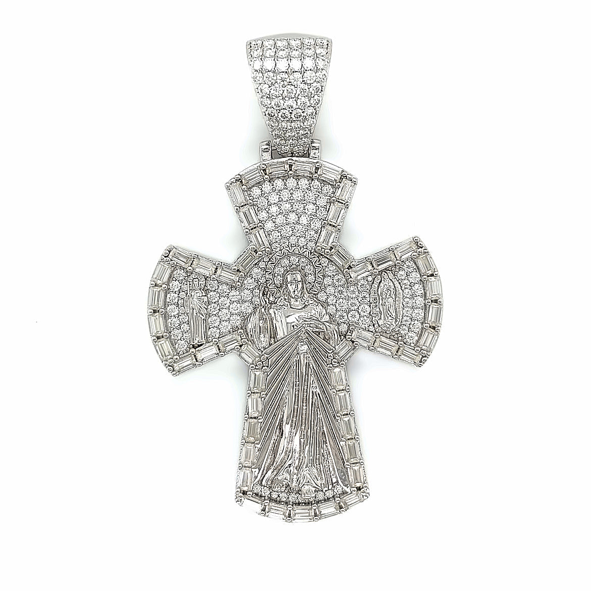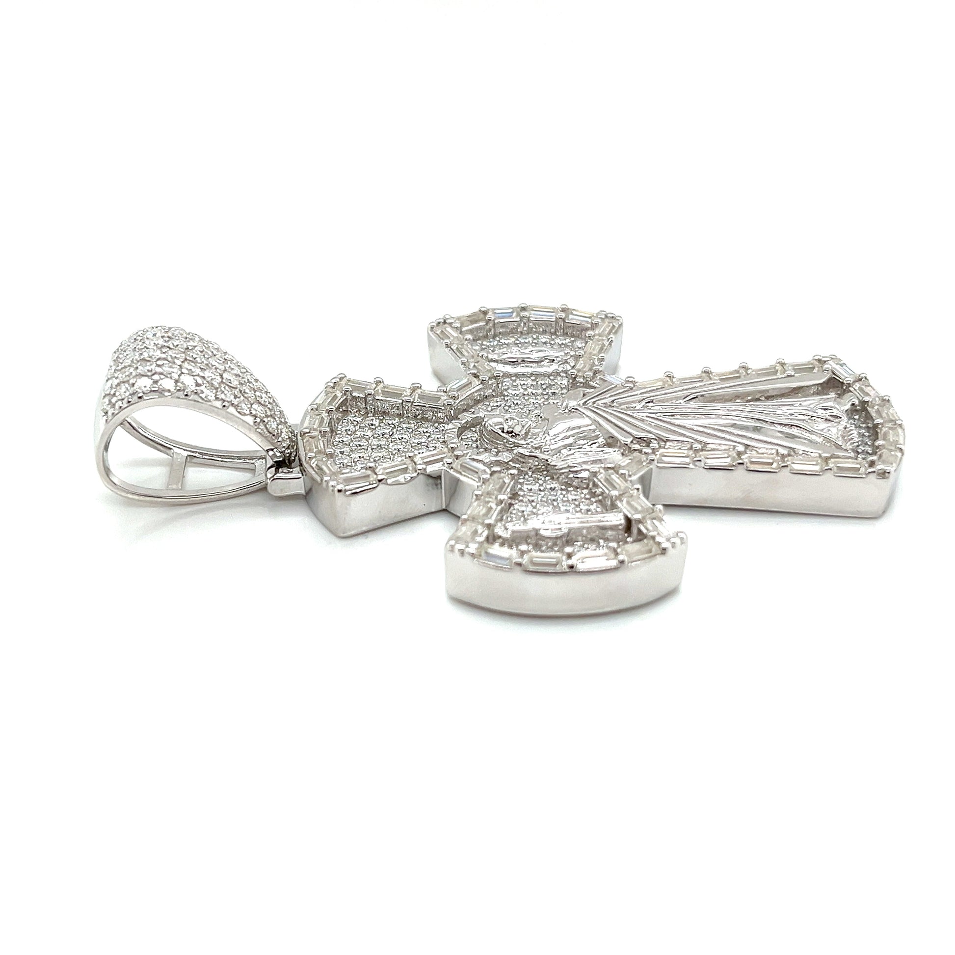 Impresionante colgante de cruz santa de moissanita y rodio de plata de ley 925: eleva tu estilo con esta belleza atemporal. Con aprox. 59,77 quilates de piedras moissanita redondas y baguette que añaden un toque de glamour a cualquier look.