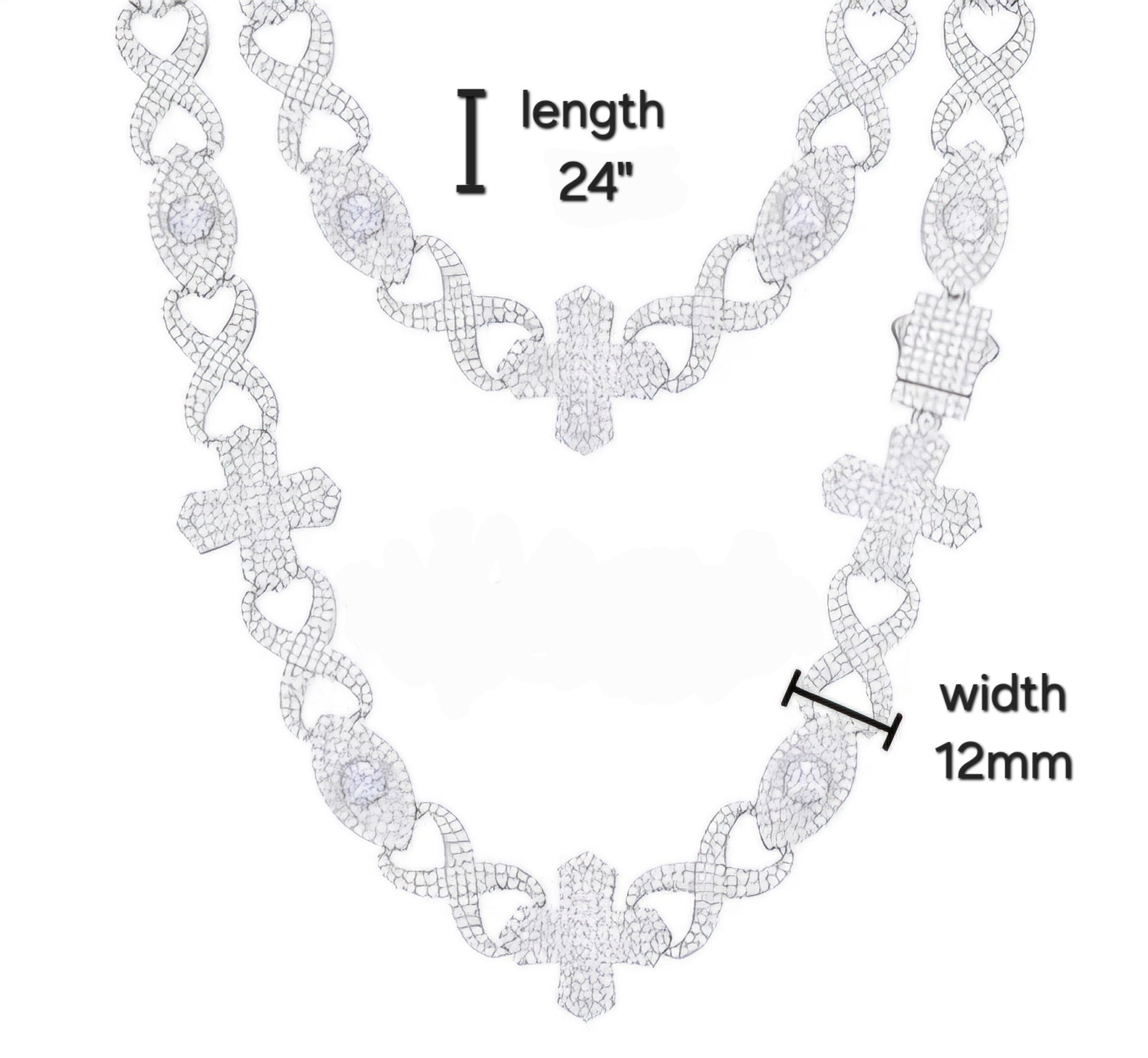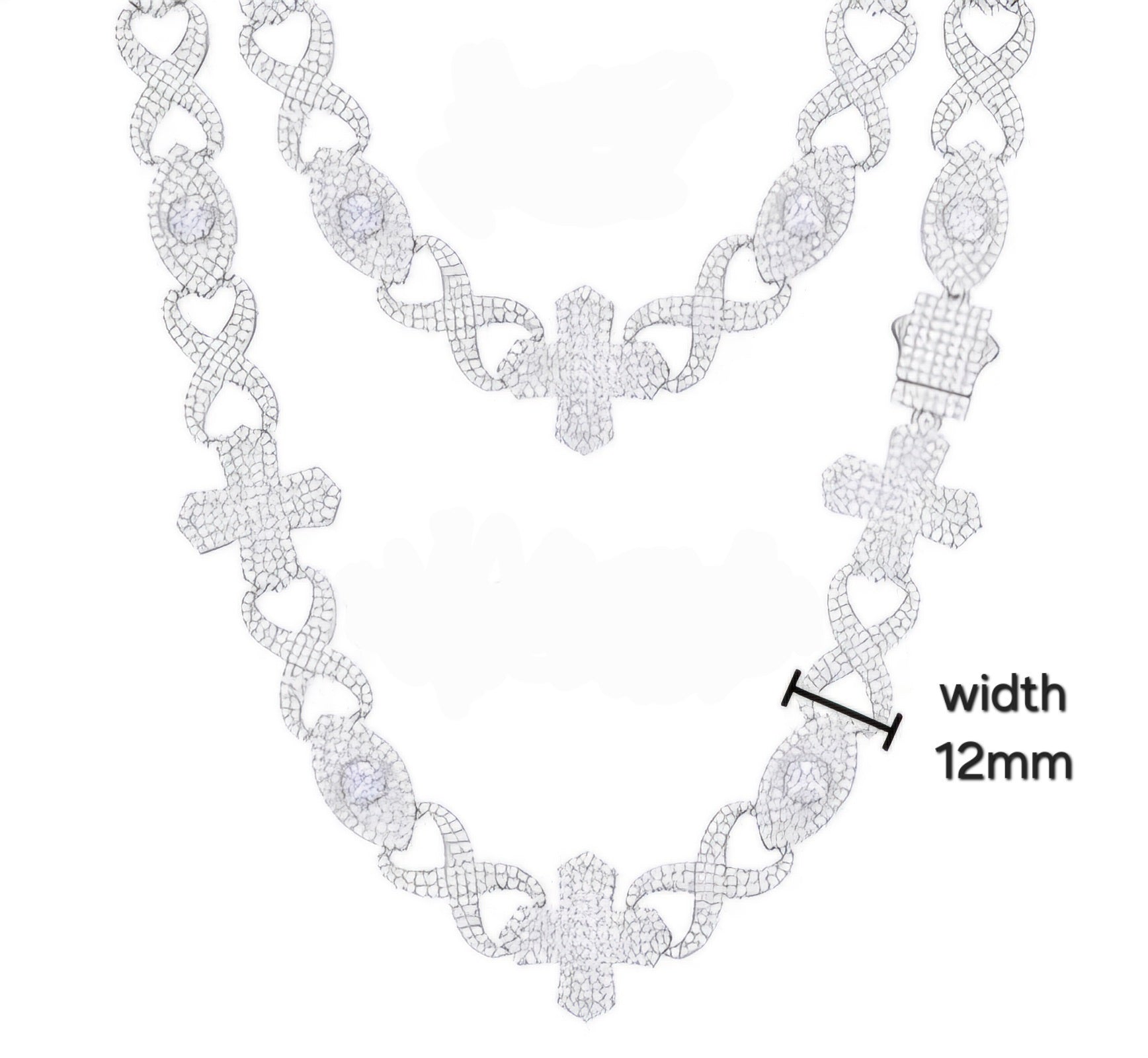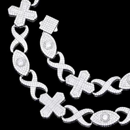Sterling Silver 925 Moissanite 12mm Infinity Cross Eye Link 18"-24" Chain Necklace - M500019