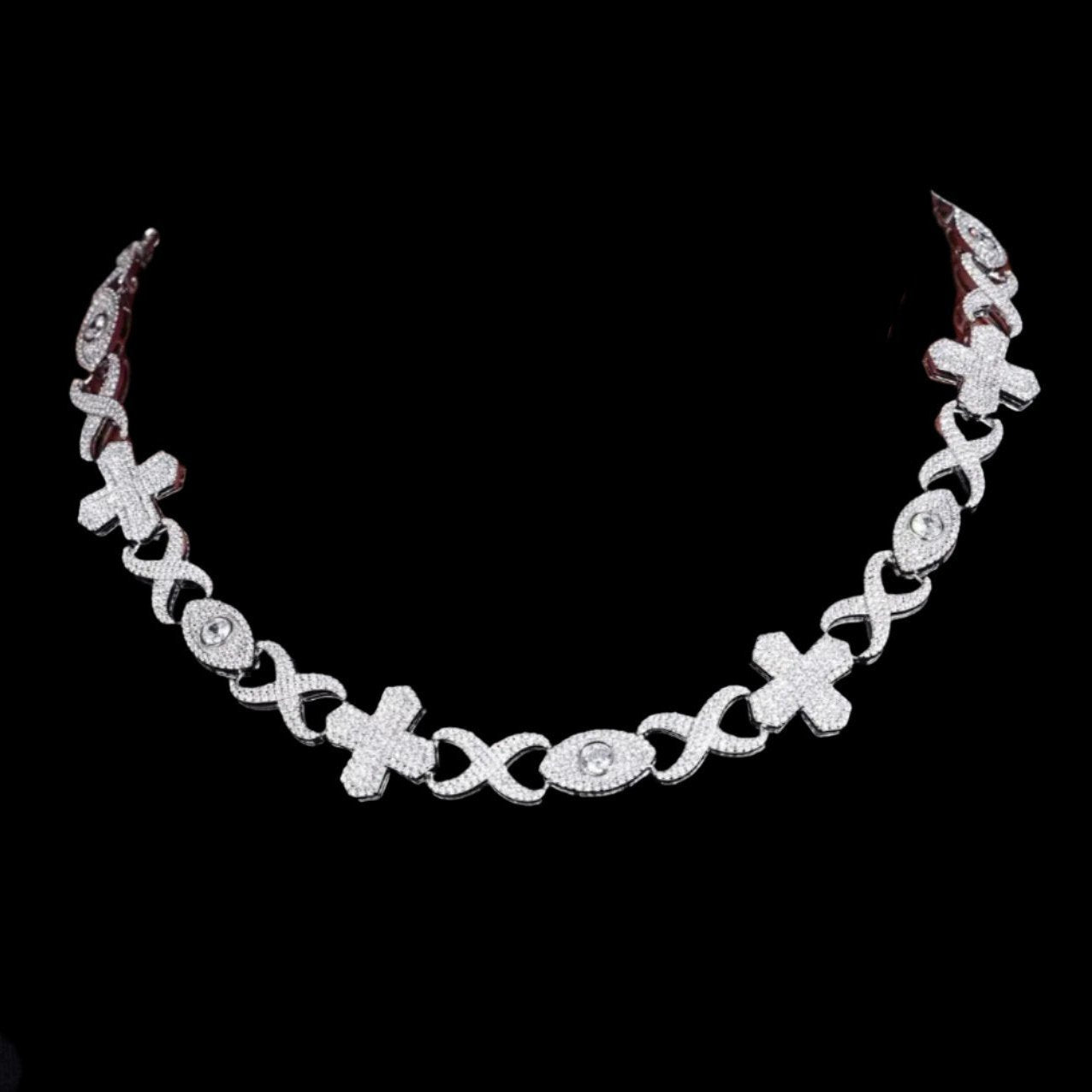 Crafted from high-quality Sterling Silver 925, this chain necklace features a stunning Moissanite Infinity Cross Eye Link design. Perfect for adding a touch of elegance to any outfit, this necklace is a must-have for those who appreciate fine craftsmanship and timeless beauty.
