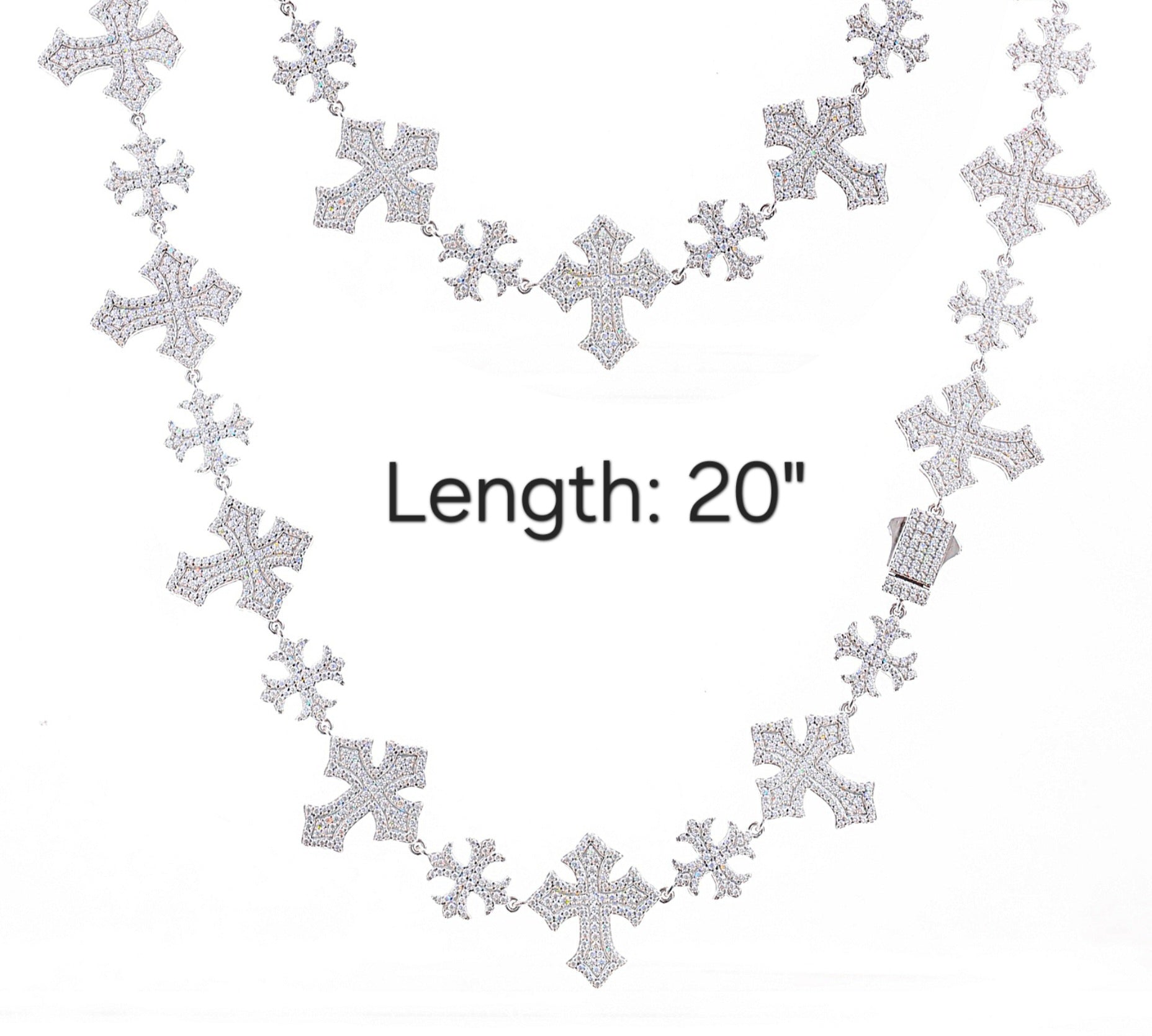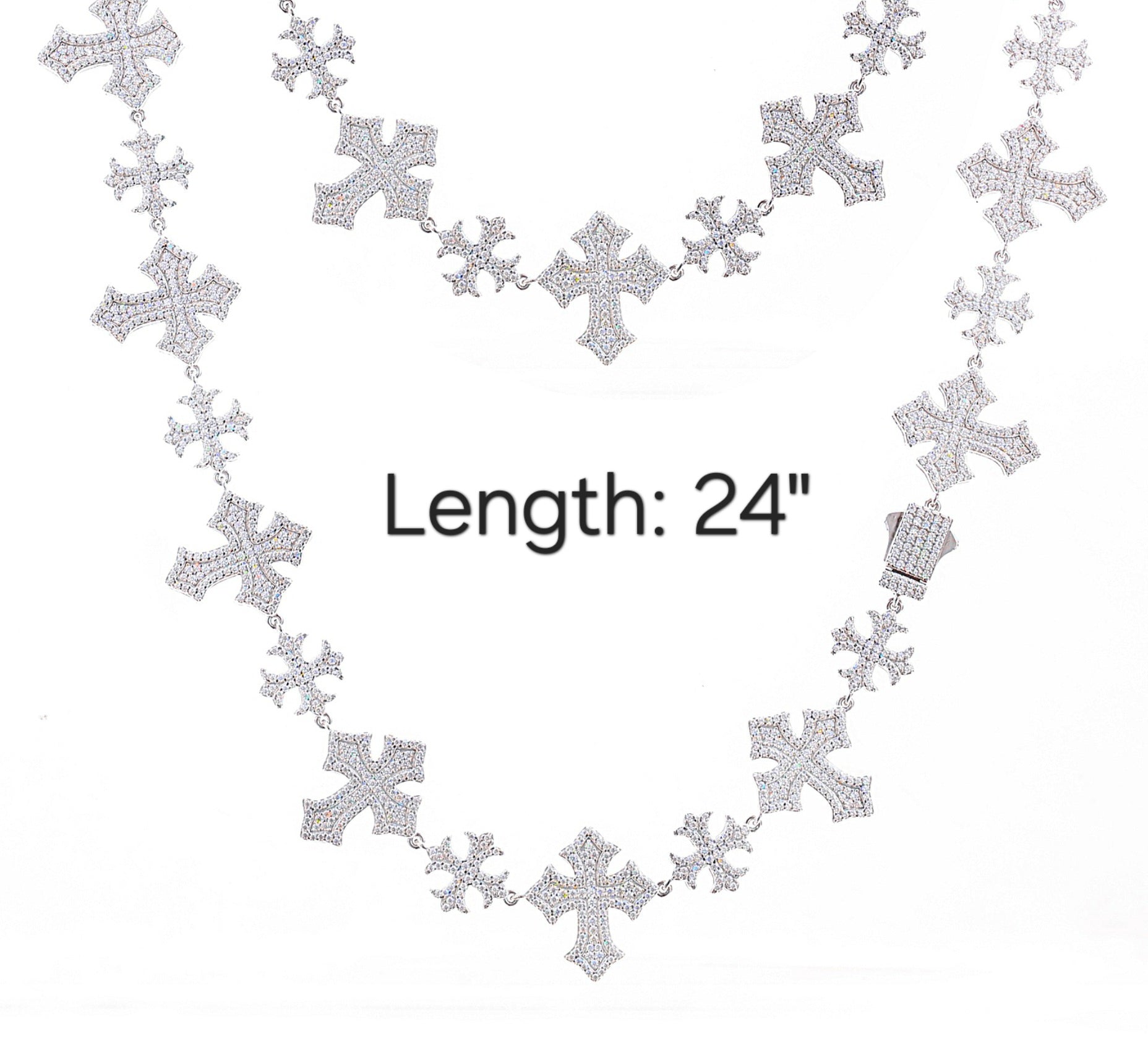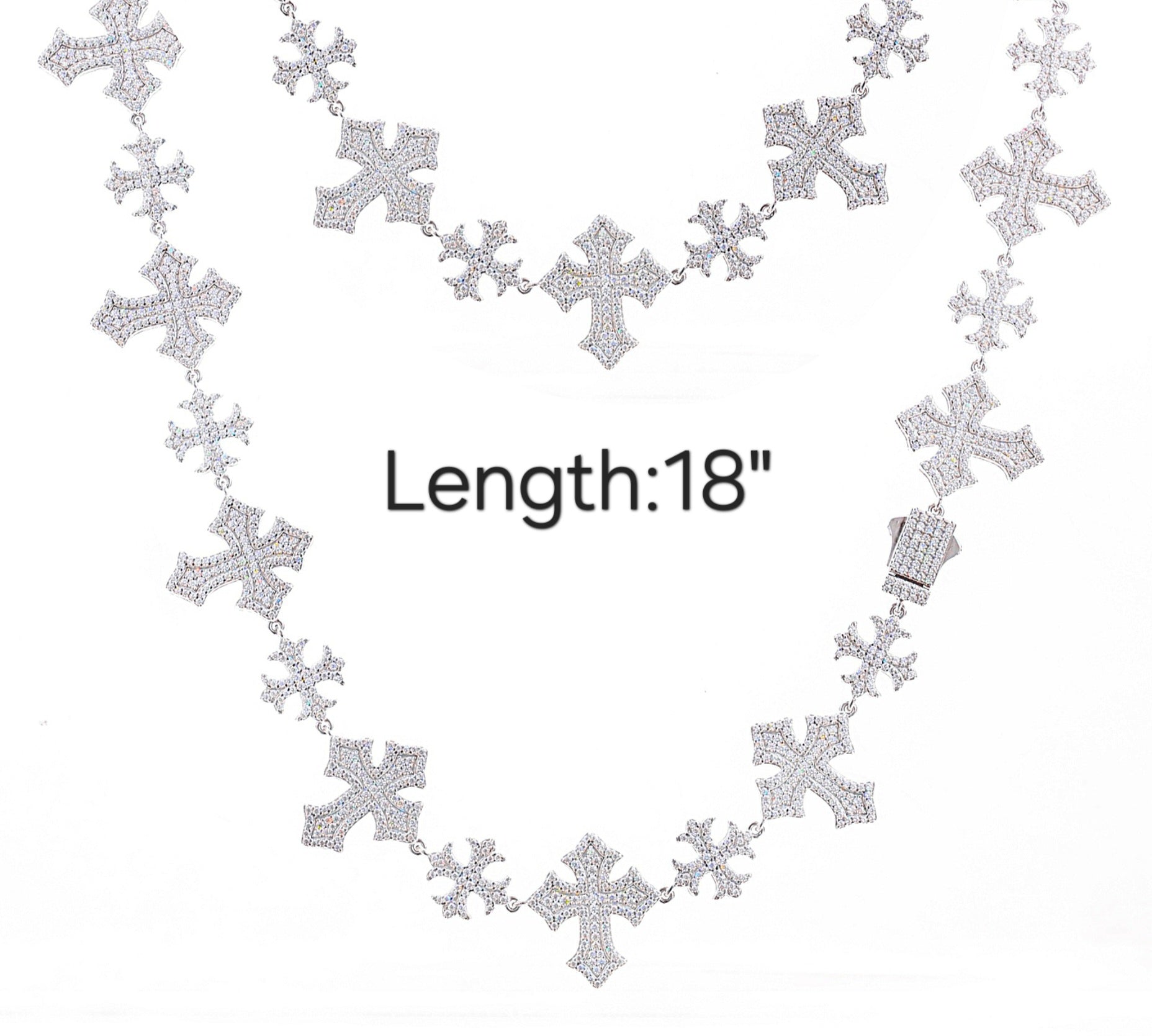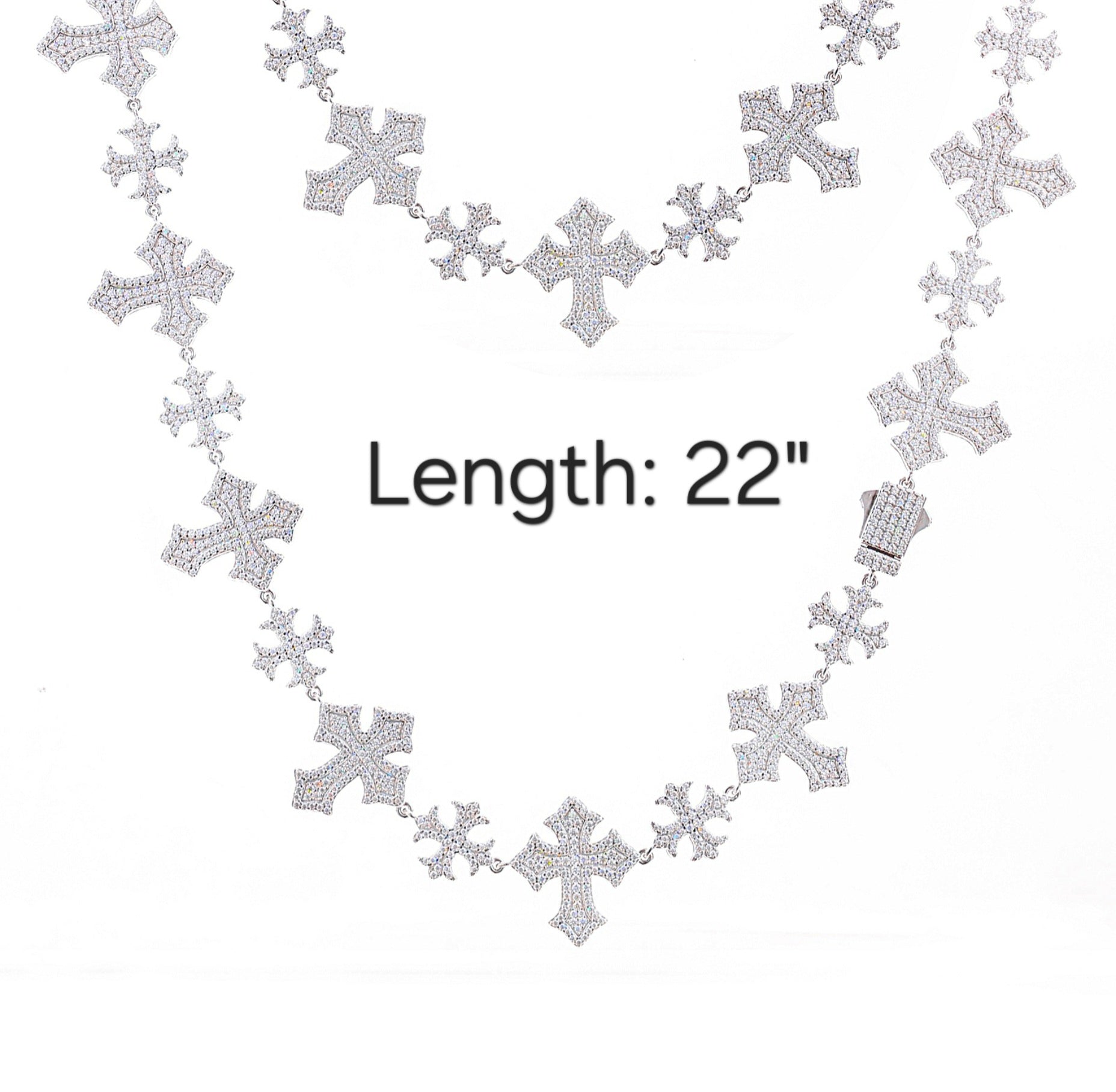 Iced Out Moissanite Sterling Silver 925 Crosses Link 13/22mm Iced Out 18"-24" Chain Necklace - M500049