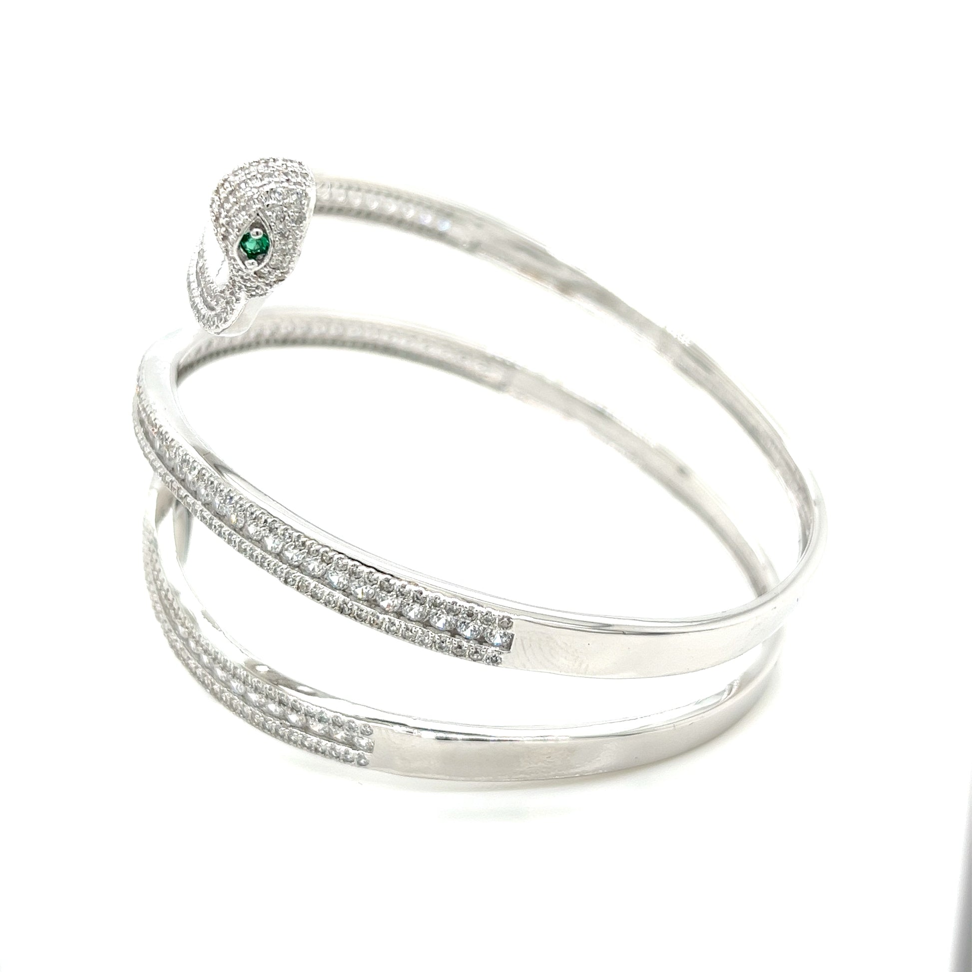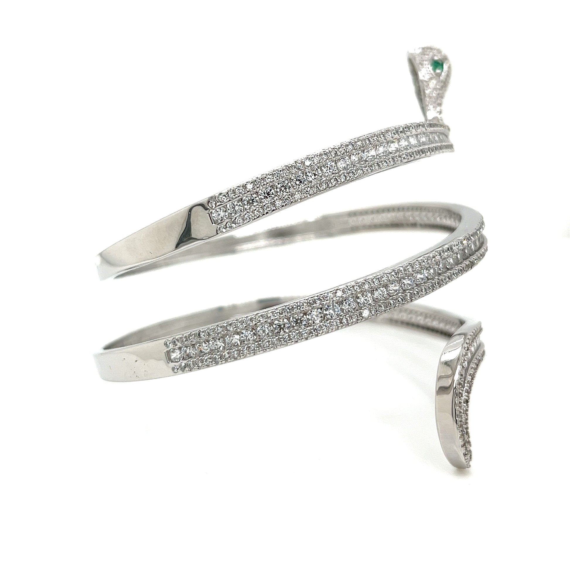 Impresionante brazalete envolvente de plata de ley 925 con forma de serpiente: eleva tu estilo con esta belleza atemporal. Este brazalete que mide 2,7" * 2,5" presenta circonita cúbica redonda Piedras, aporta un toque de glamour a cualquier look.