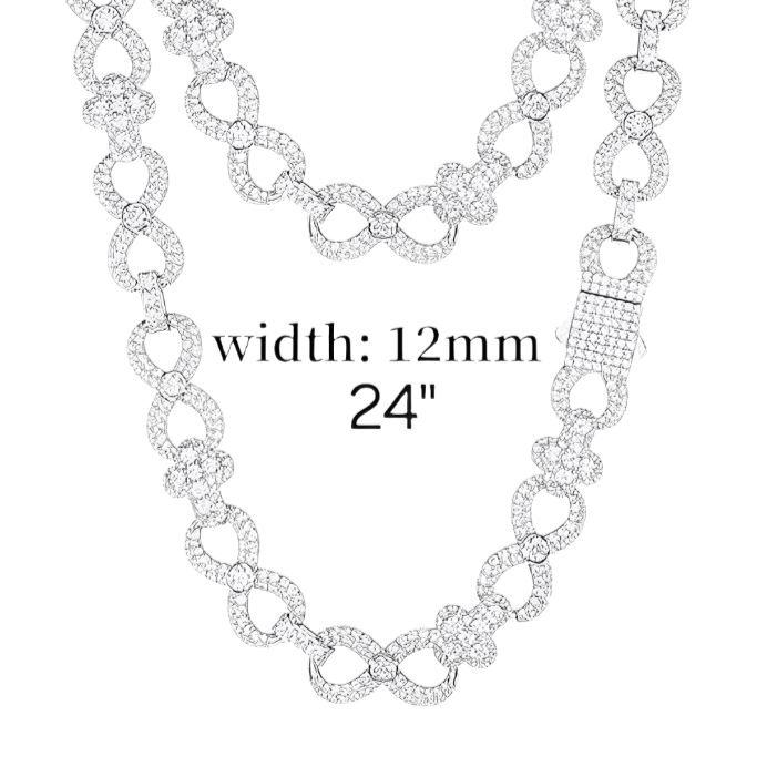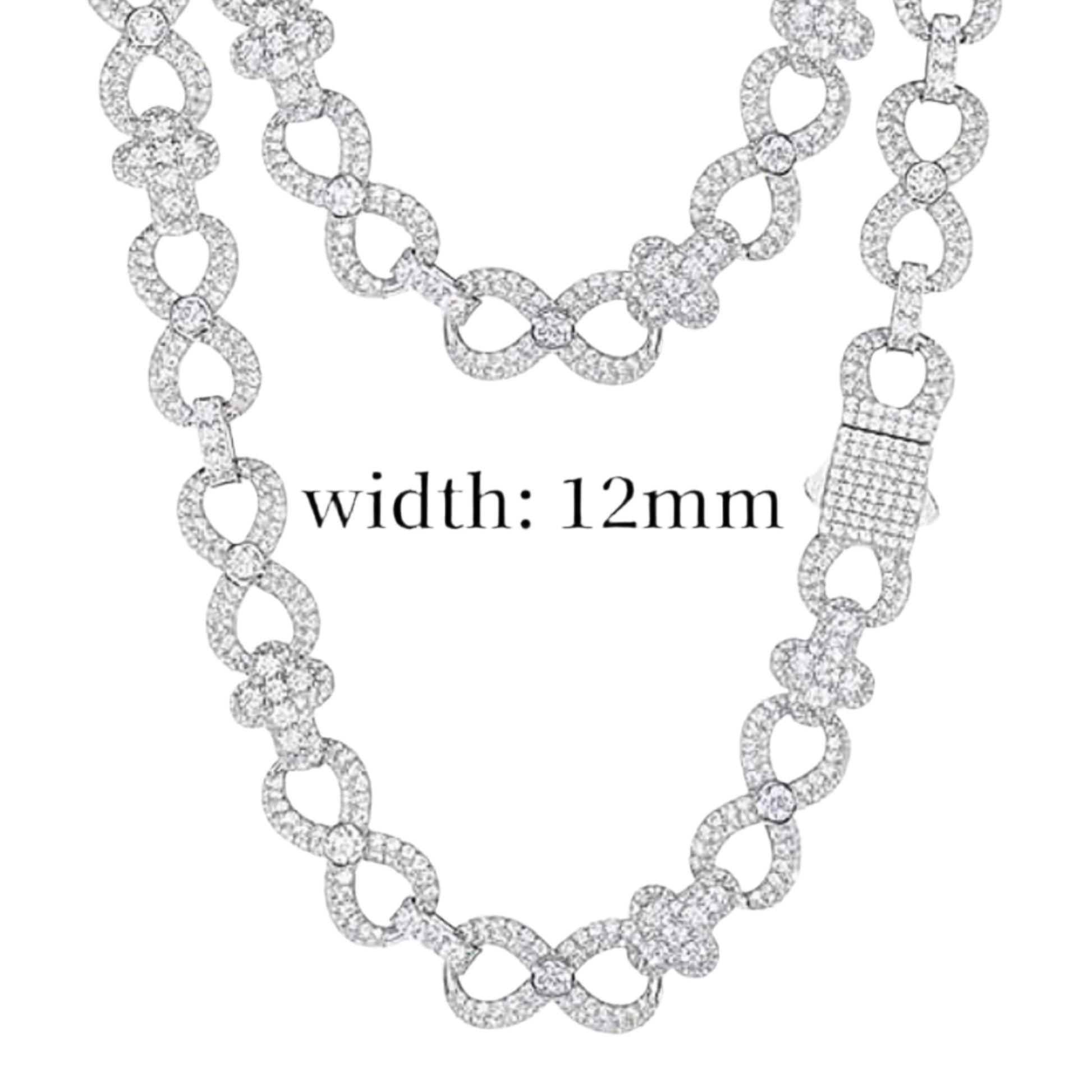 Moissanite Sterling Silver 925 Cross Infinity Link 12mm Iced Out 18"-24" Chain Necklace - M500039