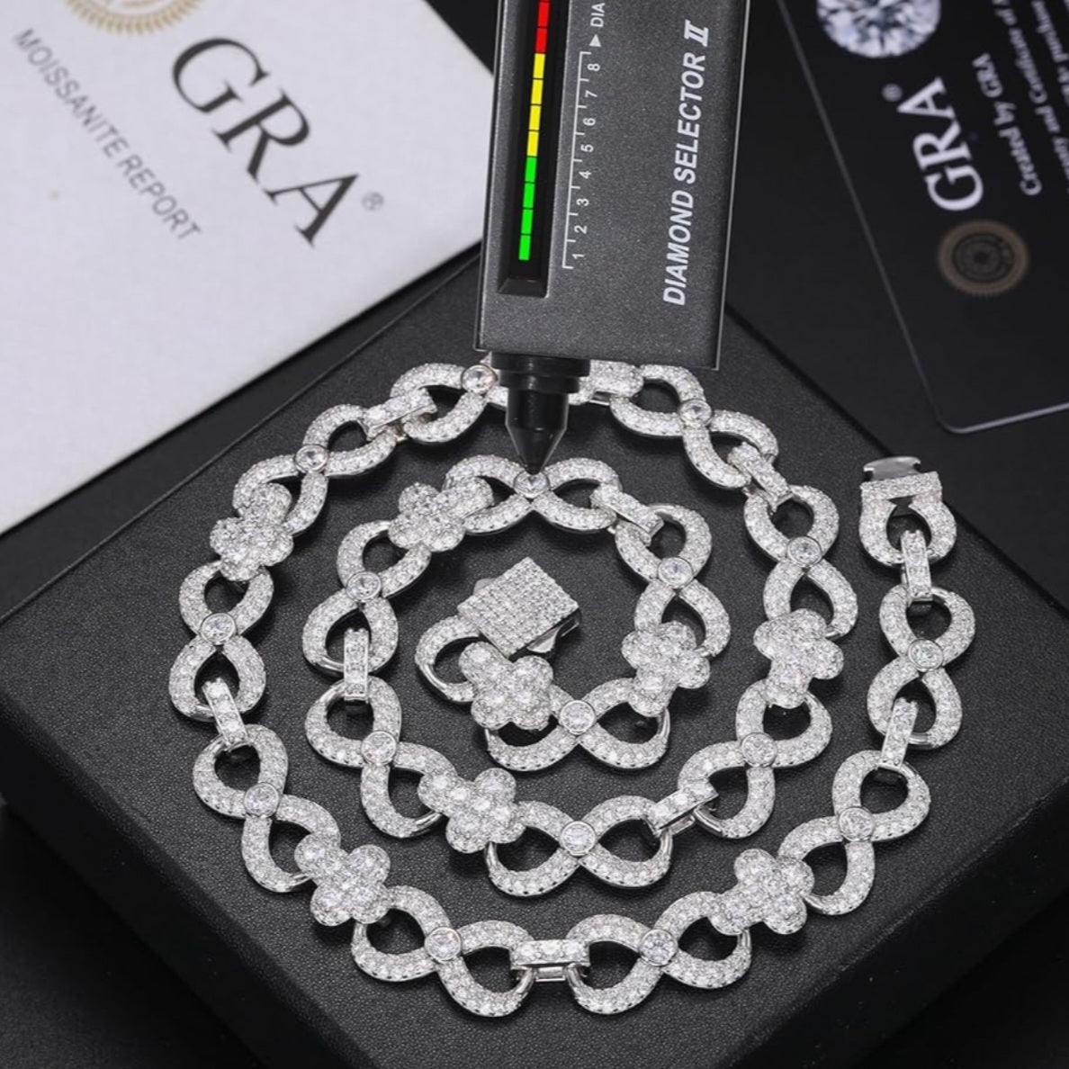 Crafted from high-quality Sterling Silver 925, this chain necklace features stunning Moissanite stones with an Infinity Cross Link design. Perfect for adding a touch of elegance to any outfit, this necklace is a must-have for those who appreciate fine craftsmanship and timeless beauty.