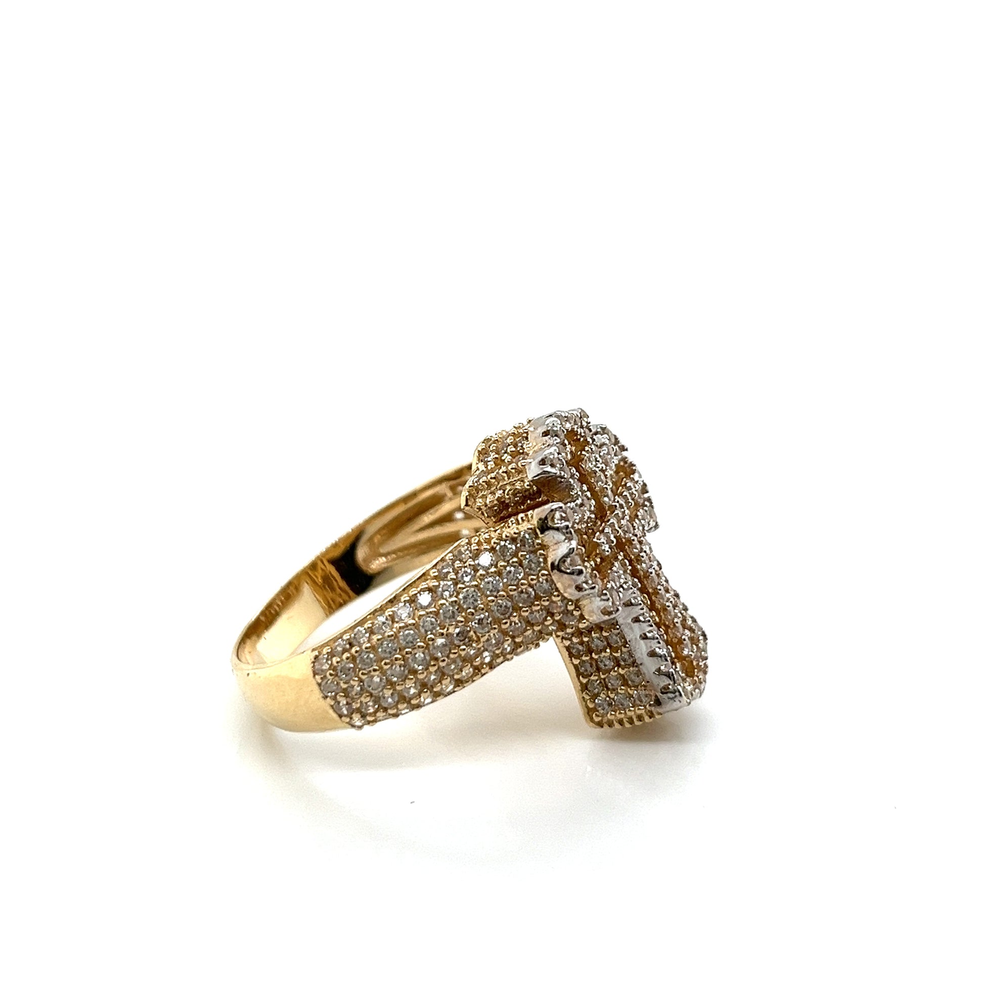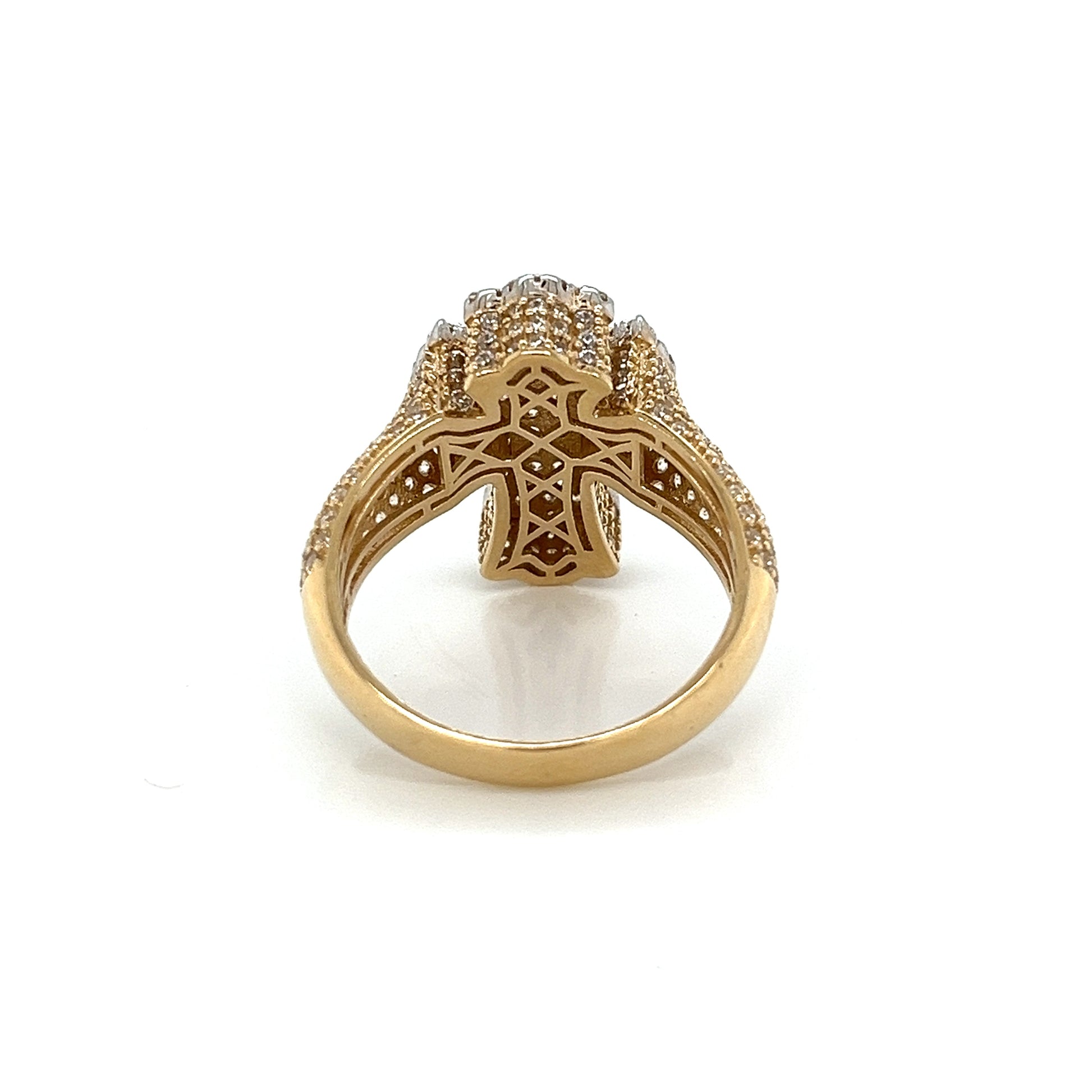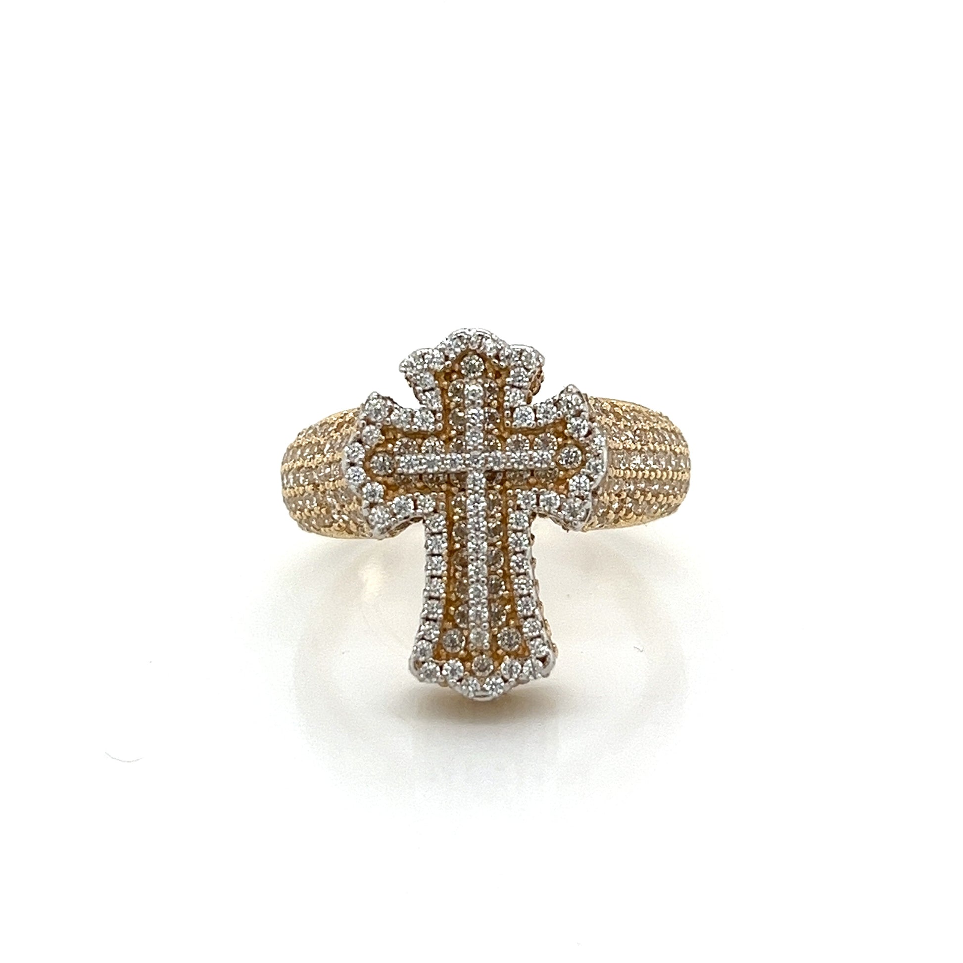 14K Gold Cross 3D Ring W/ CZ