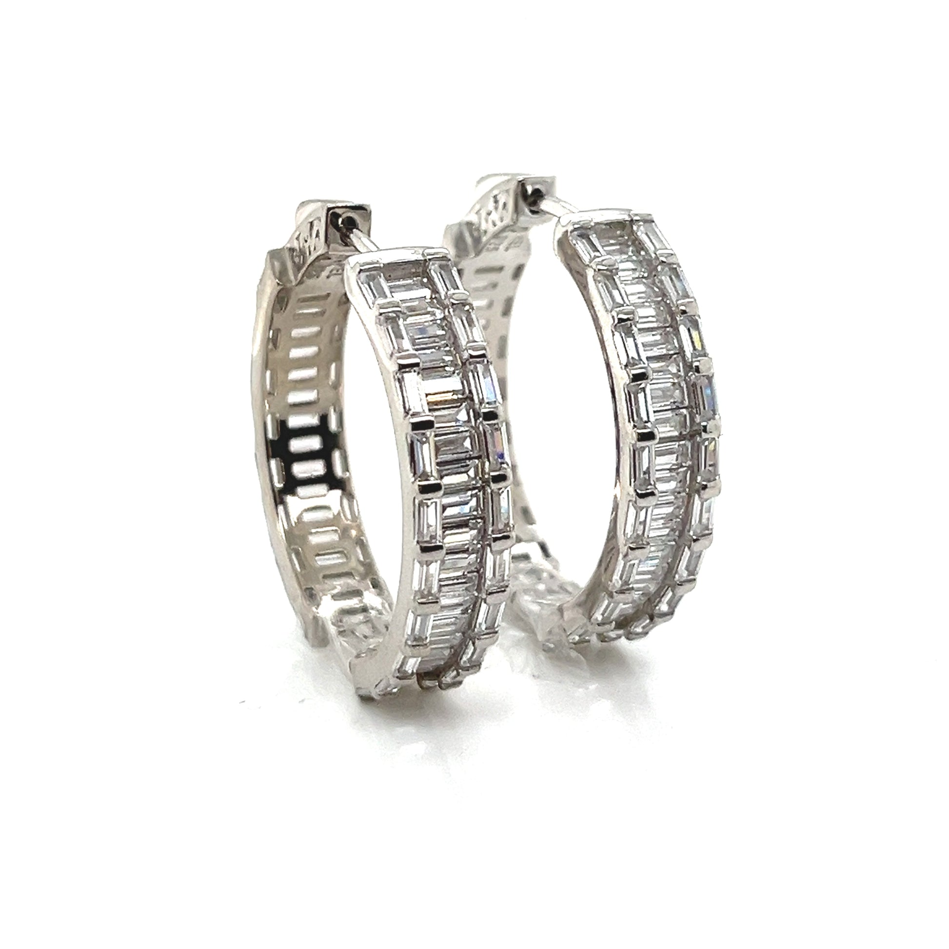 Stunning 925 Sterling Silver Rhodium Baguette Hoop EARRINGS : Elevate your style with these timeless beauty. Featuring High Quality 925 Silver Hoop with Baguette CZ Stones, it adds a touch of glamour to any look.