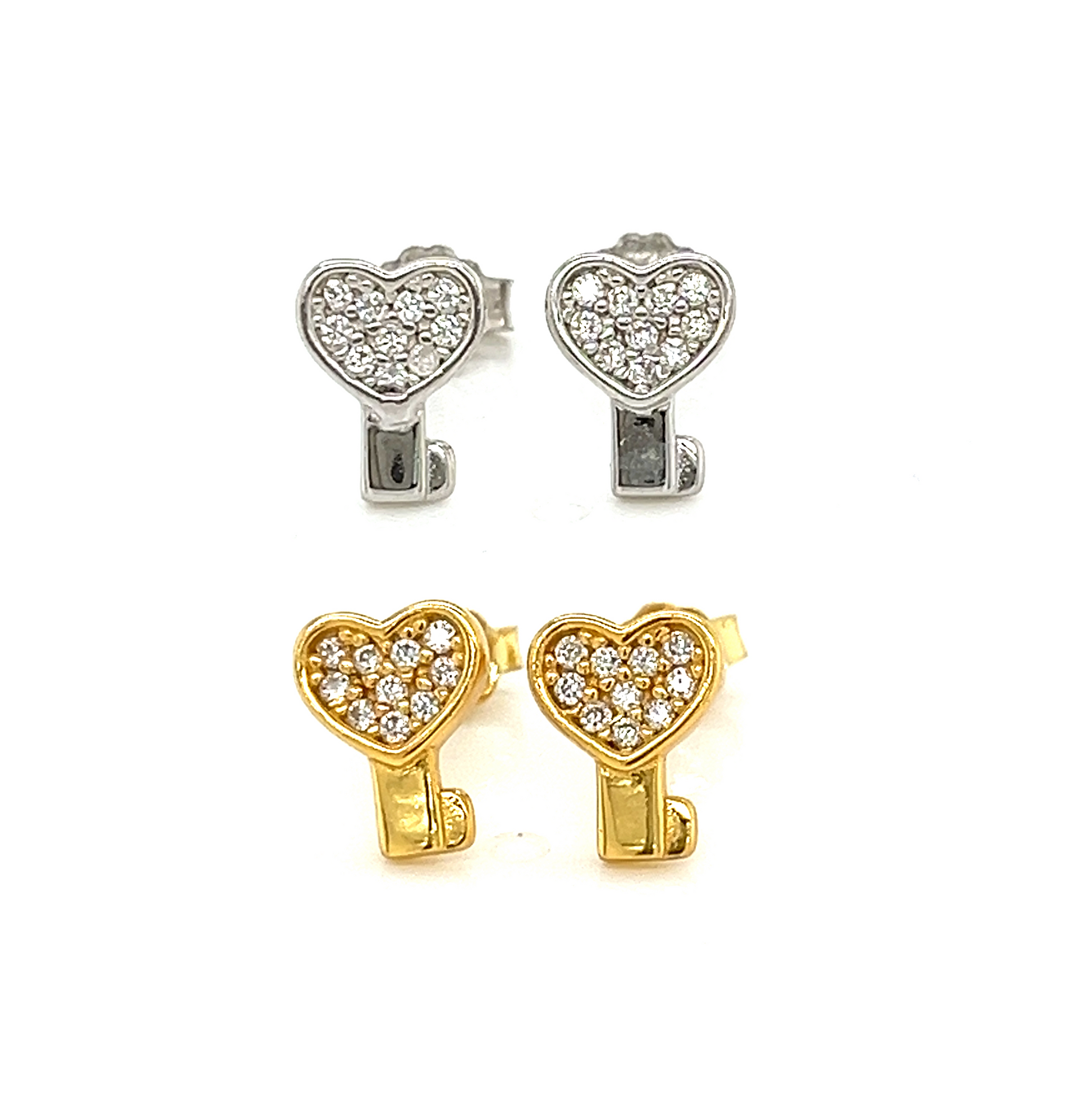 Enhance your jewelry collection with the stunning 925 Sterling Silver Rhodium &14K Gold Plated Heart Earrings. Featuring sparkling CZ round stones in Yellow Gold Plated & White Silver, these earrings are the perfect blend of elegance and sophistication.