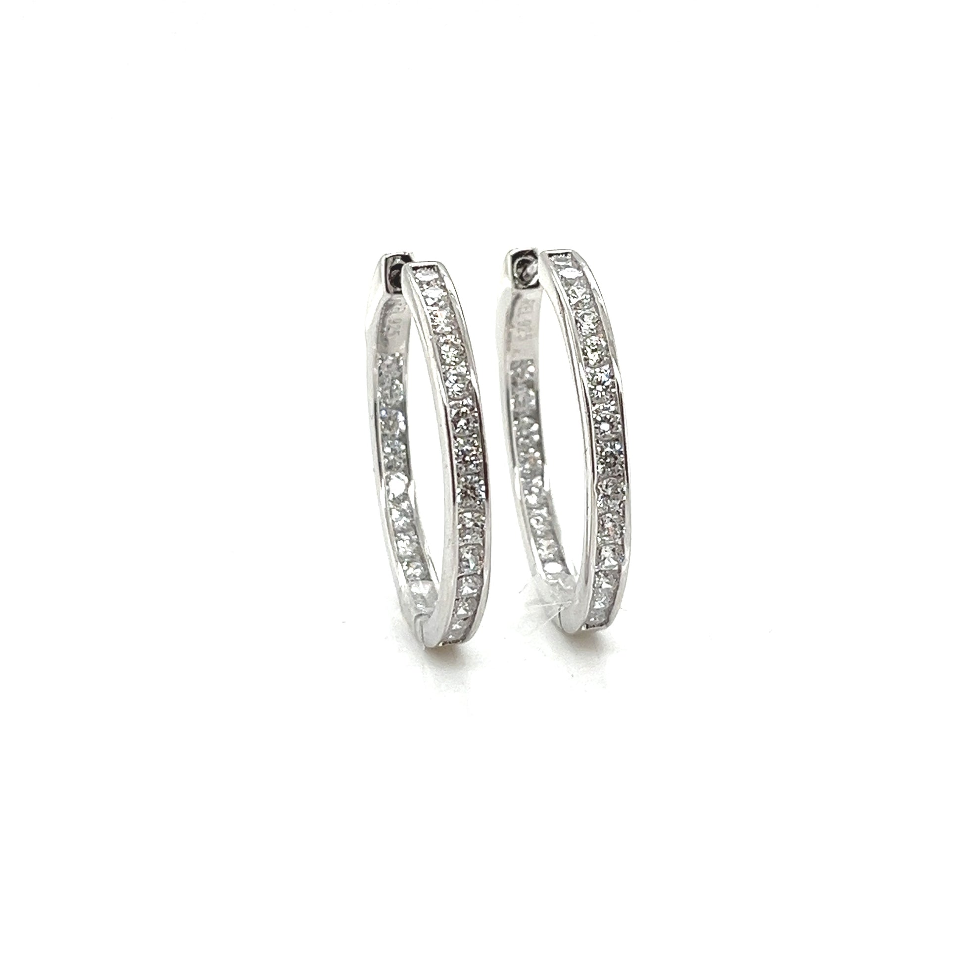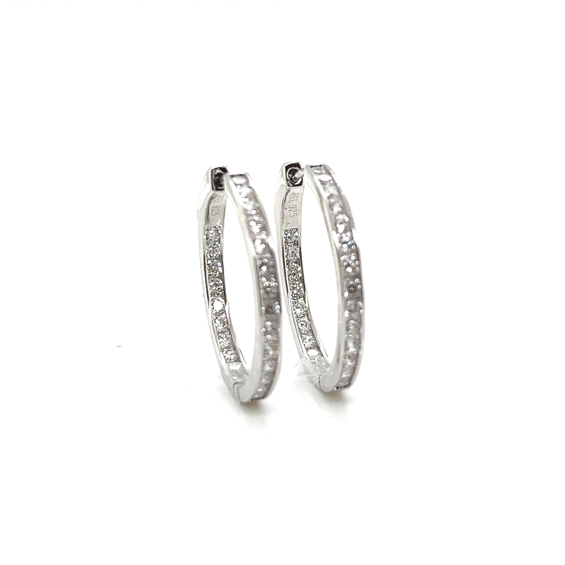 Stunning 925 Sterling Silver Rhodium CZ Prong Hoop EARRINGS : Elevate your style with these timeless beauty. Featuring High Quality 925 Silver Hoop, it adds a touch of glamour to any look.