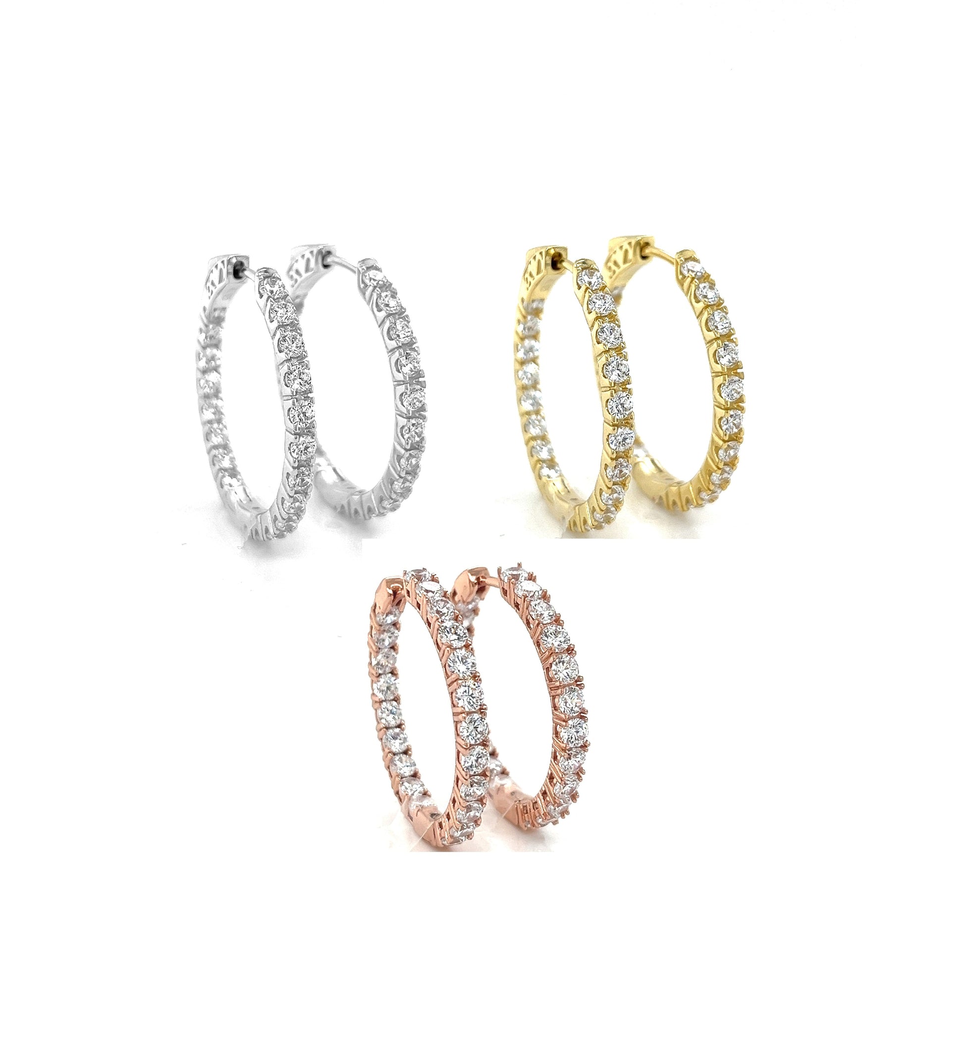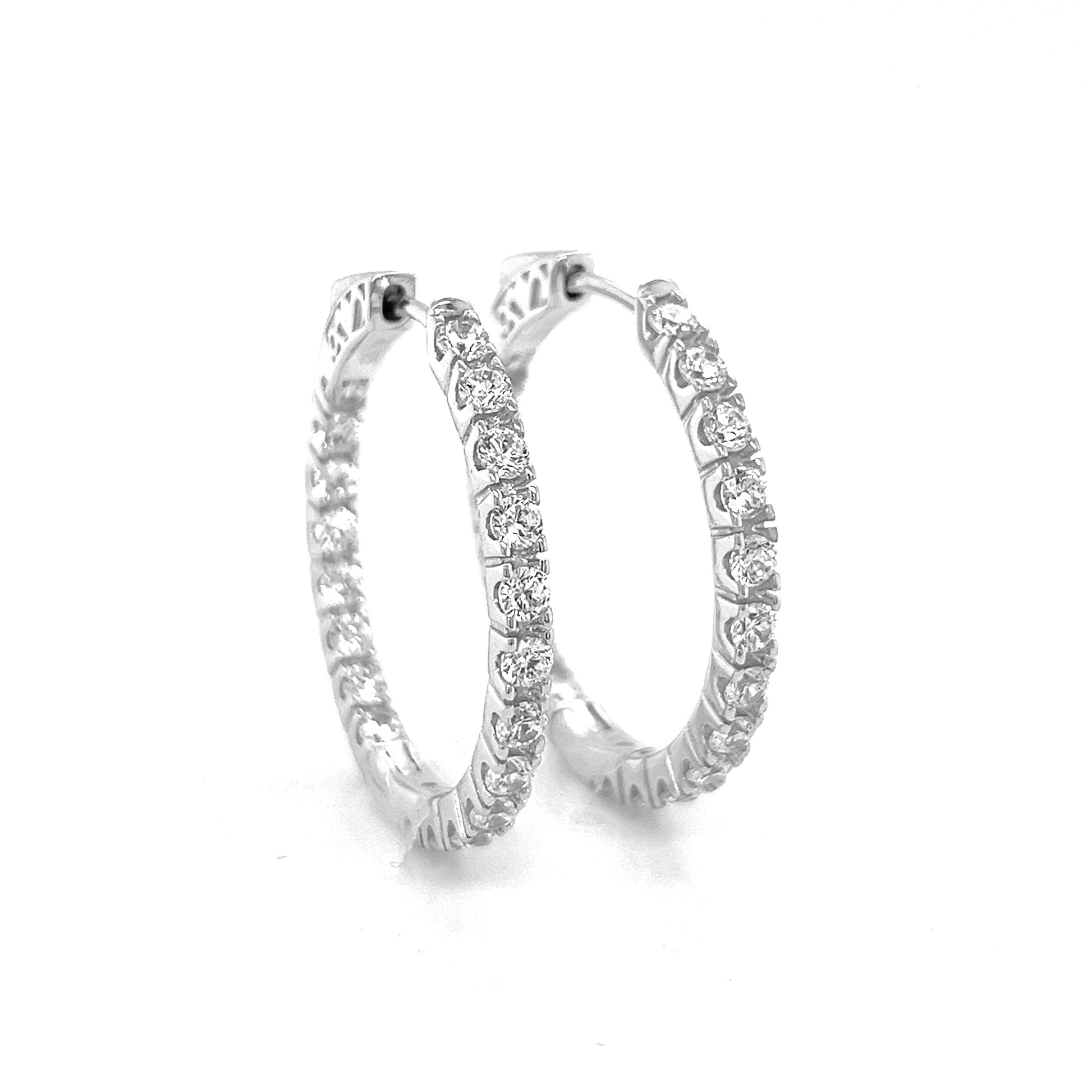 Stunning 925 Sterling Silver Rhodium CZ Hoop EARRINGS : Elevate your style with these timeless beauty. Featuring High Quality 925 Silver Hoop with Round CZ Stones, it adds a touch of glamour to any look.