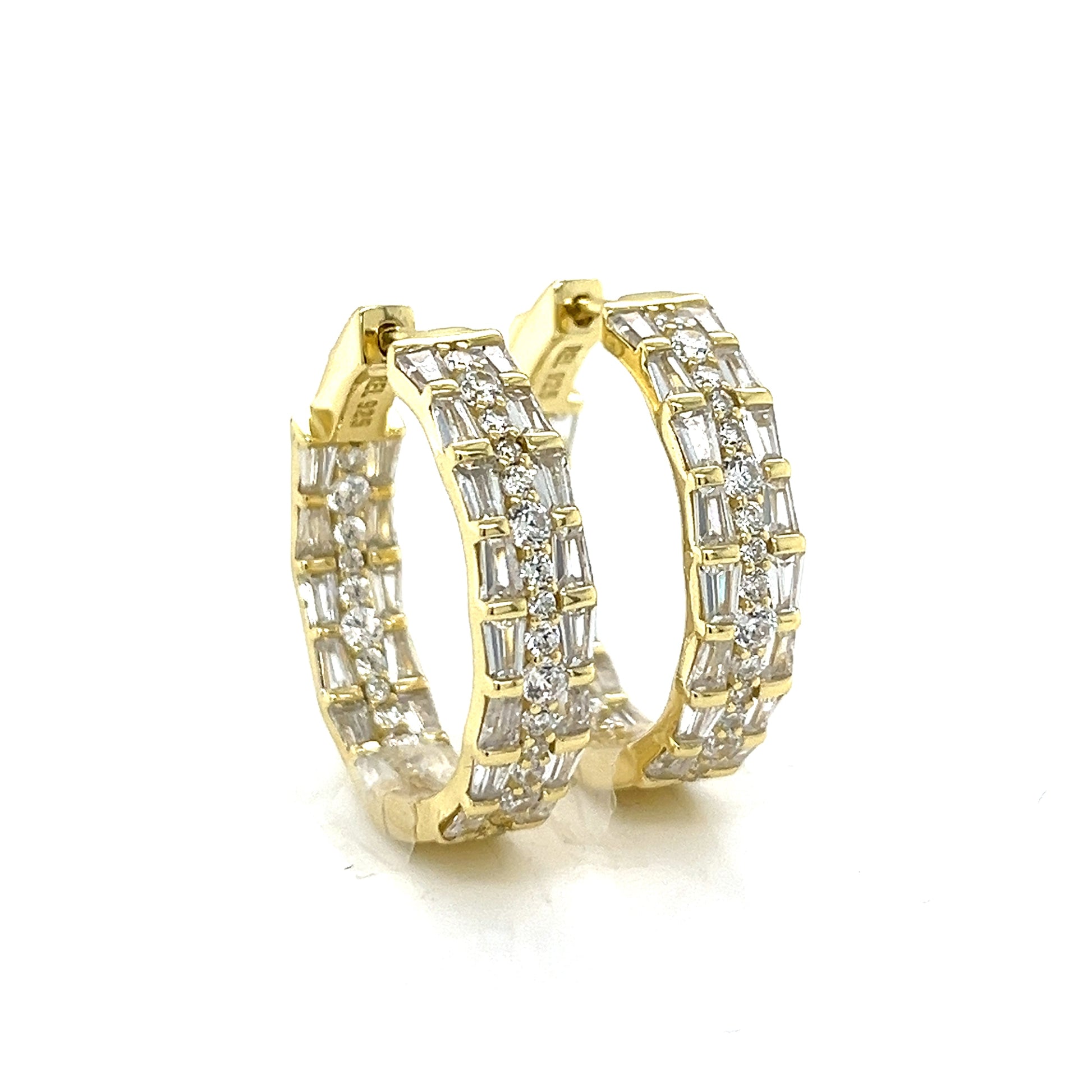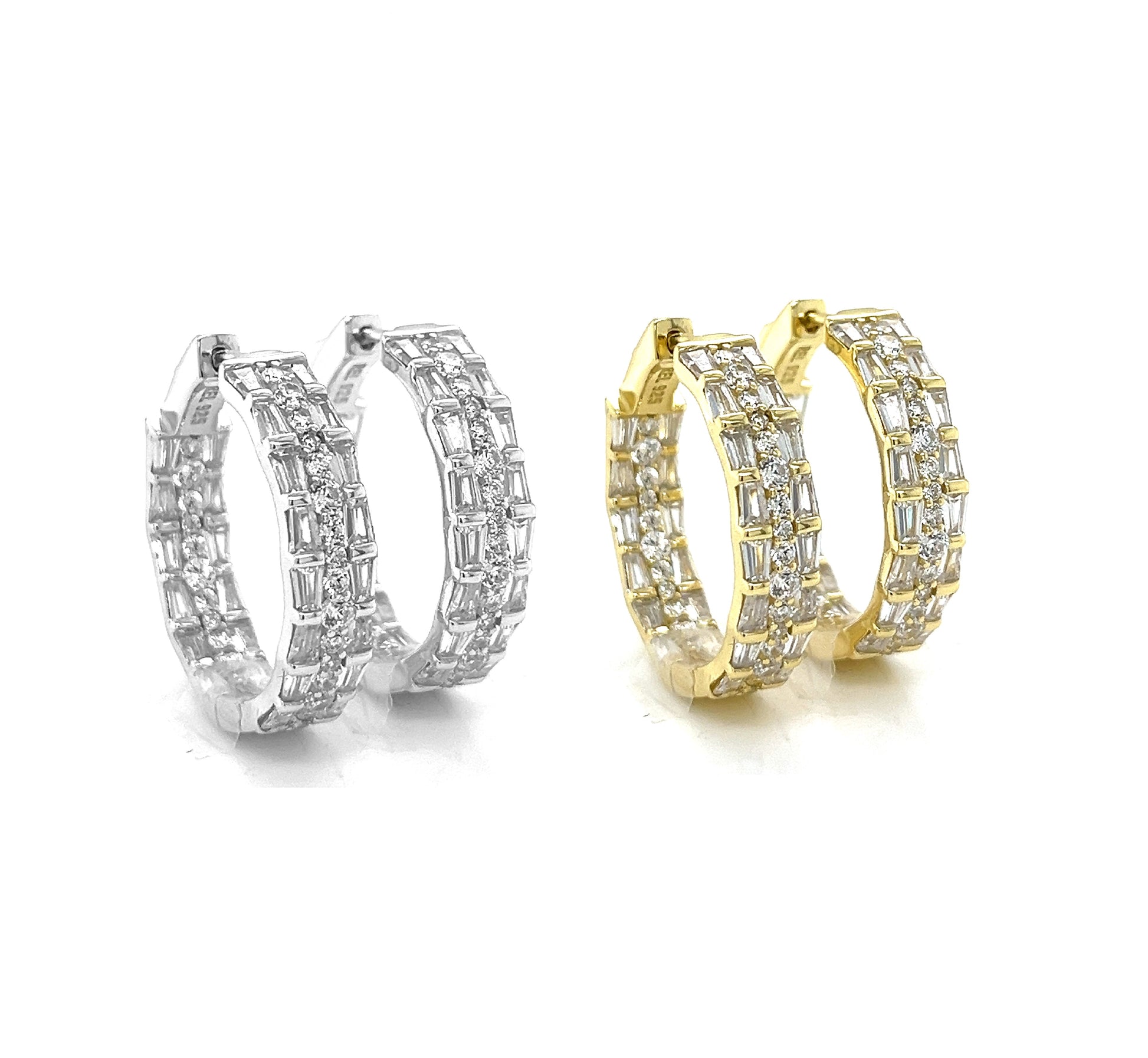 Stunning 925 Sterling Silver Rhodium Baguette Hoop EARRINGS : Elevate your style with these timeless beauty. Featuring High Quality 925 Silver Hoop with Round & Baguette CZ Stones, it adds a touch of glamour to any look.