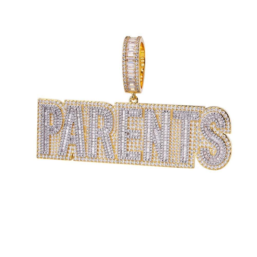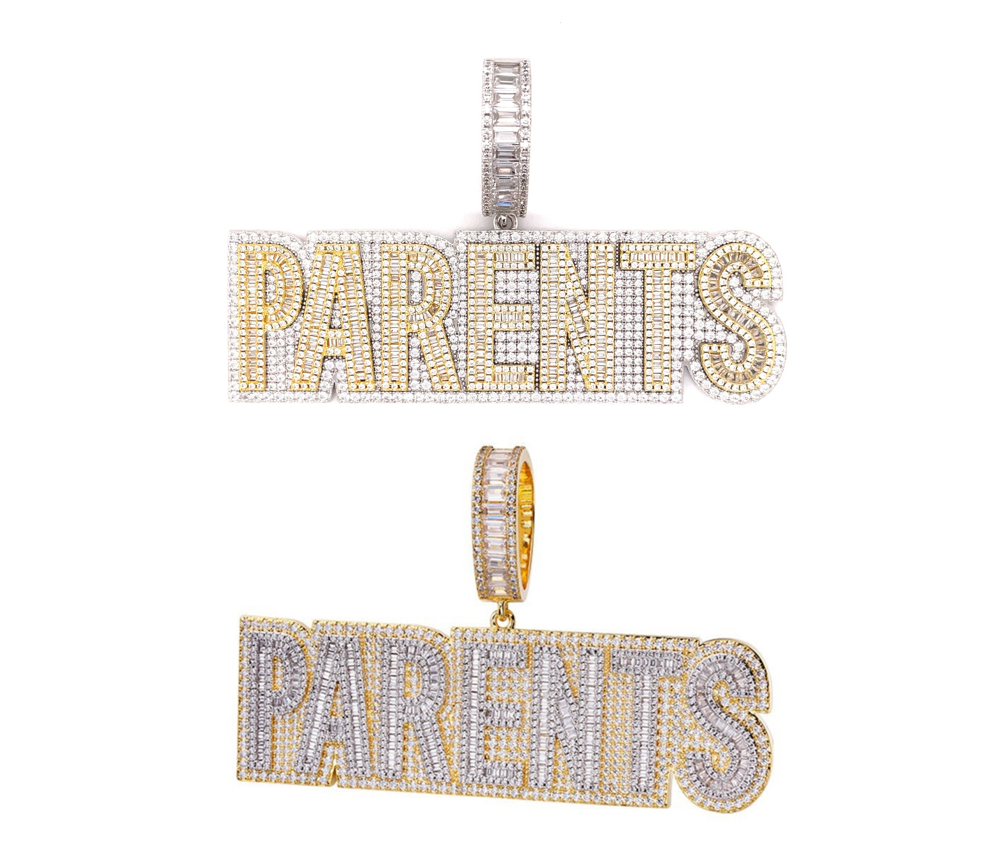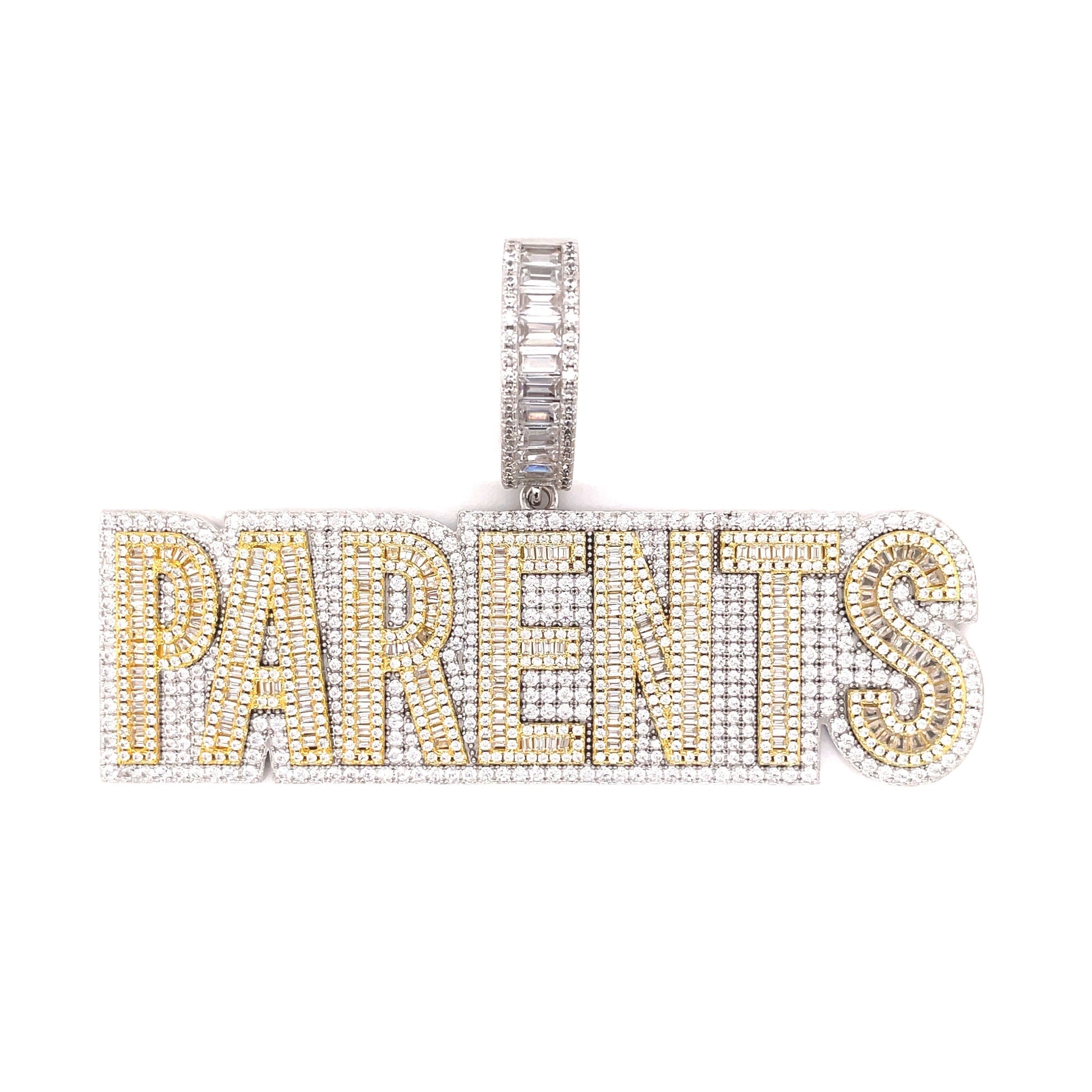 Stunning 925 Sterling Silver Rhodium CZ "PARENTS" Pendant : Elevate your style with this timeless beauty. Featuring 2.2"*3.2"(with bail) Bracelet of Round Cubic zirconia(CZ) Stones, it adds a touch of glamour to any look.