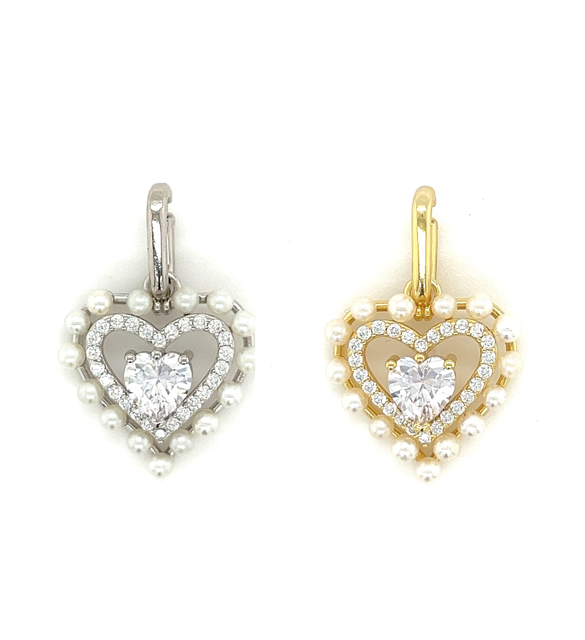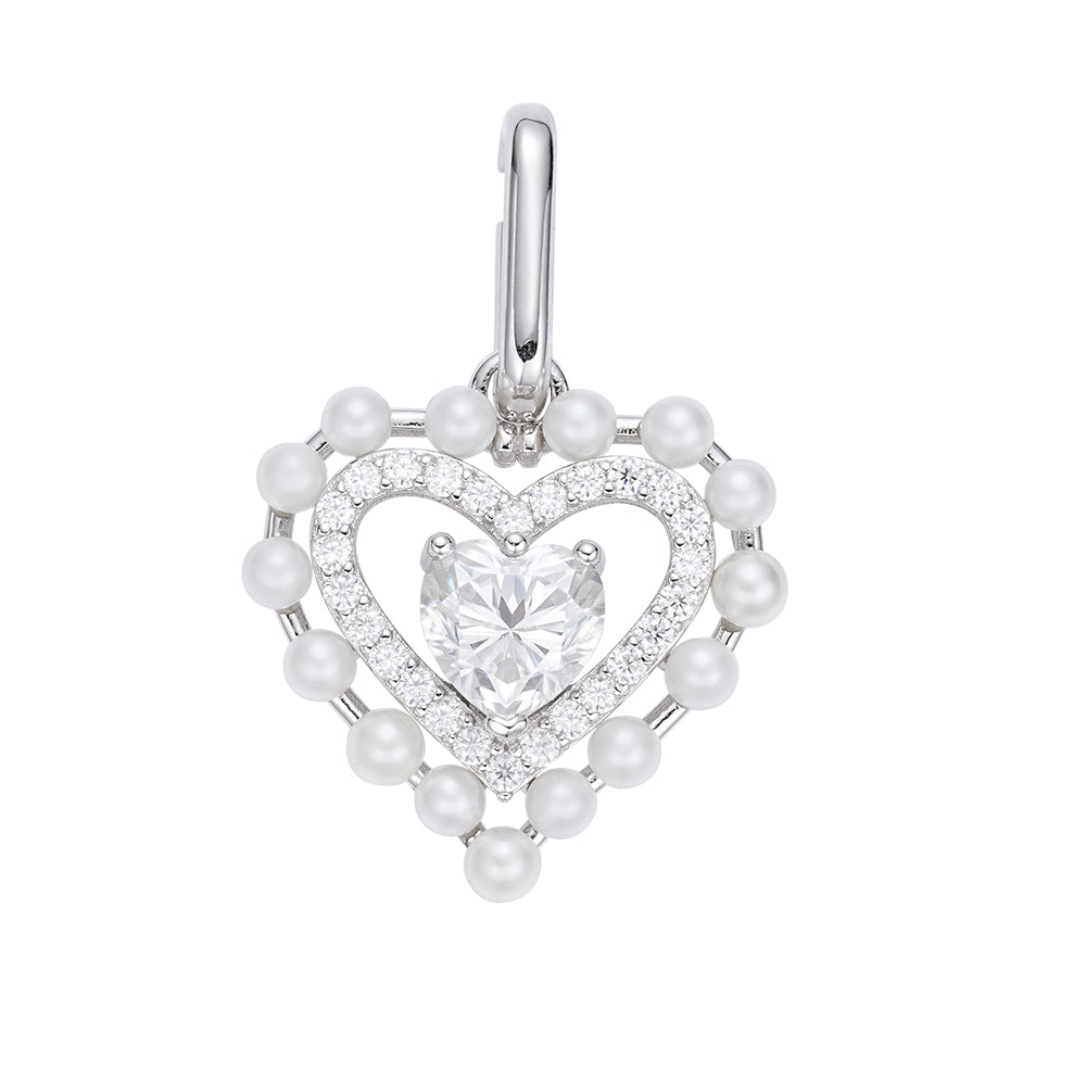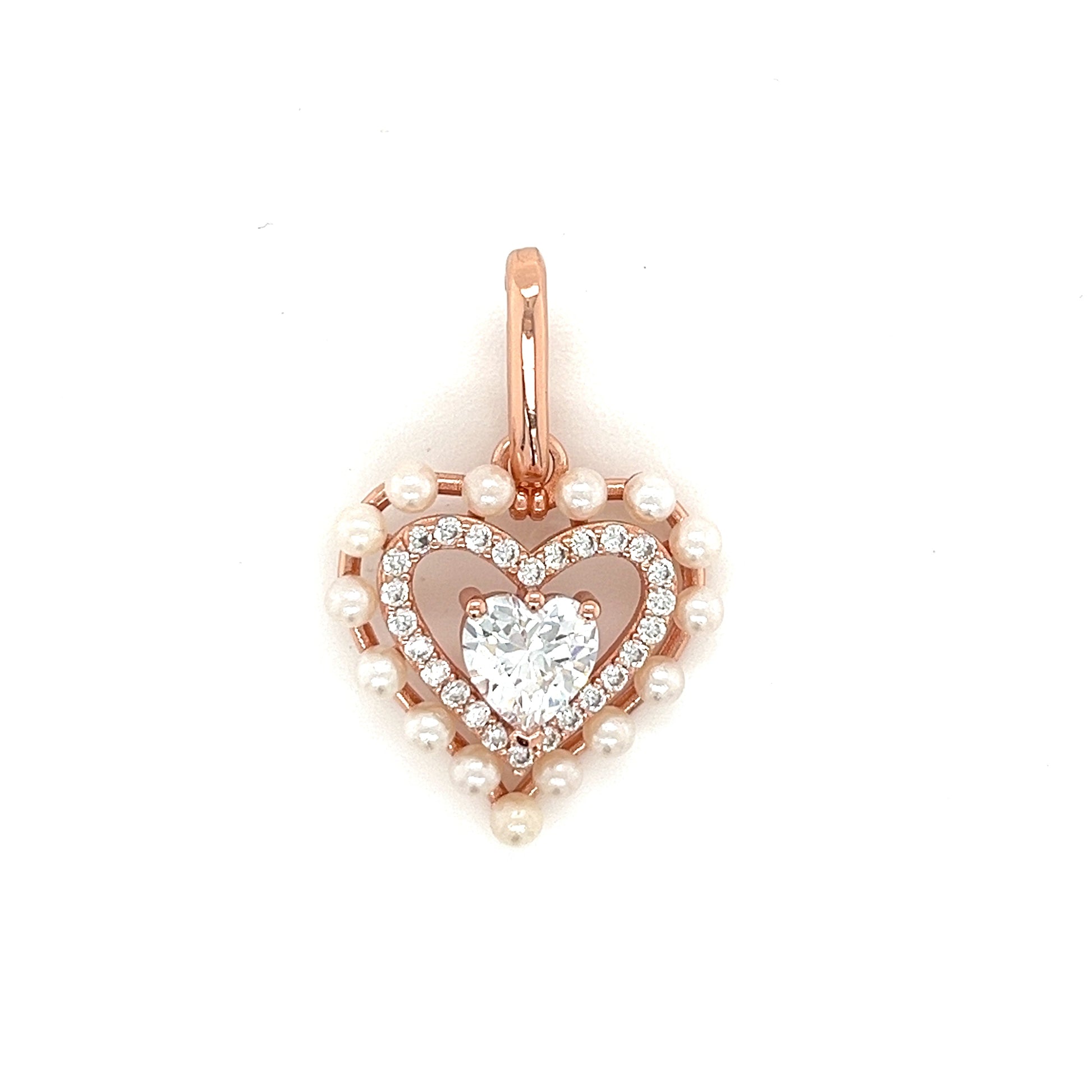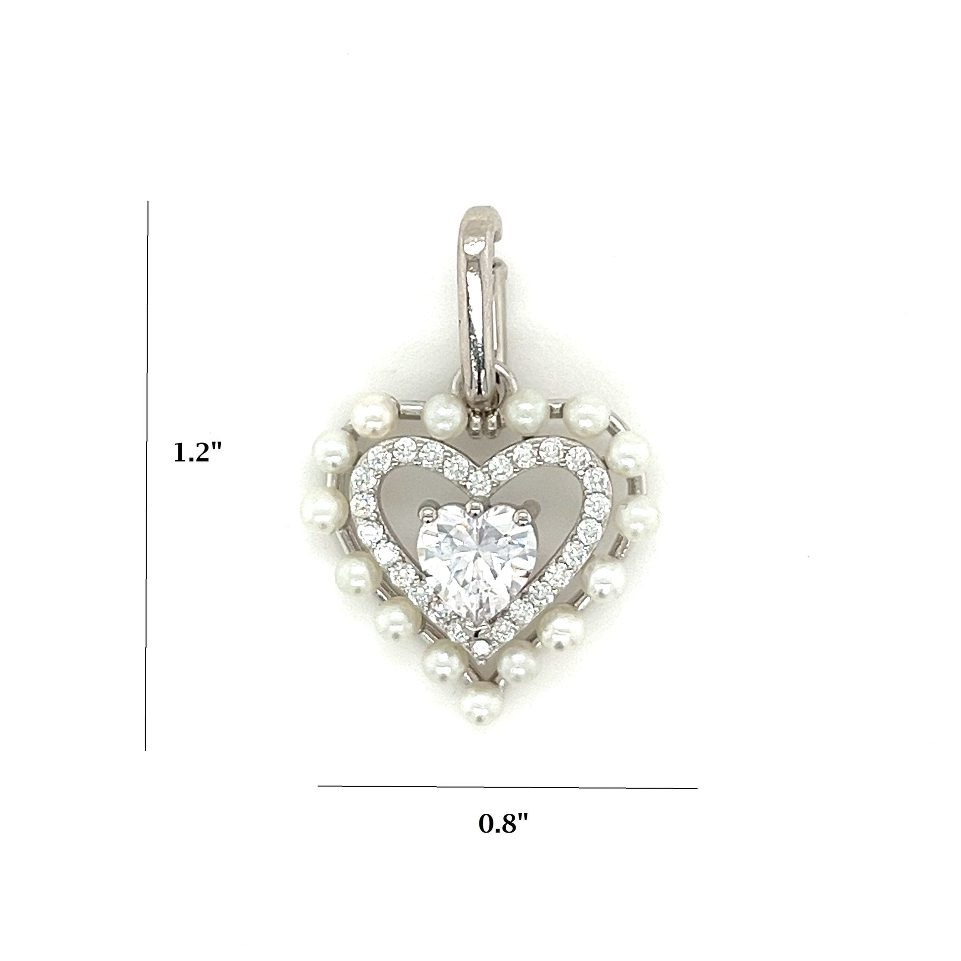 Embrace elegance with our 925 Sterling Silver Rhodium CZ Heart Pearl Pendant. Measuring 1.2" x 0.8" - inch adorned with Round Cubic Zirconia Stones. Unleash the beauty of nature on your fingertips.