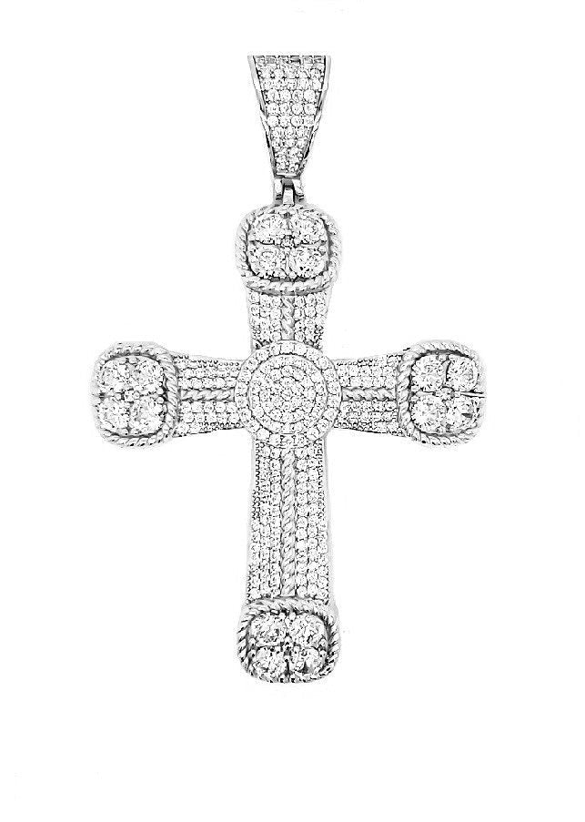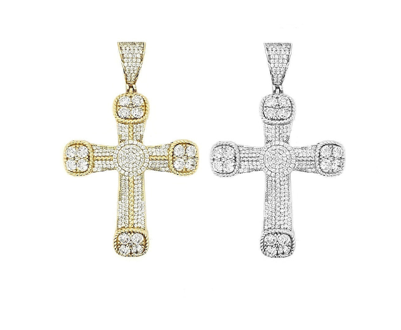 Stunning 925 Sterling Silver Rhodium CZ CROSS Pendant : Elevate your style with this timeless beauty. Featuring 3.2"*2.2"(with bail) pendant of Round Cubic zirconia(CZ) Stones, it adds a touch of glamour to any look.