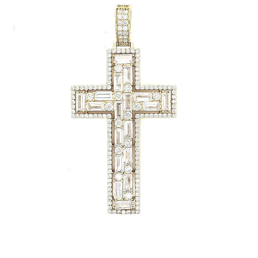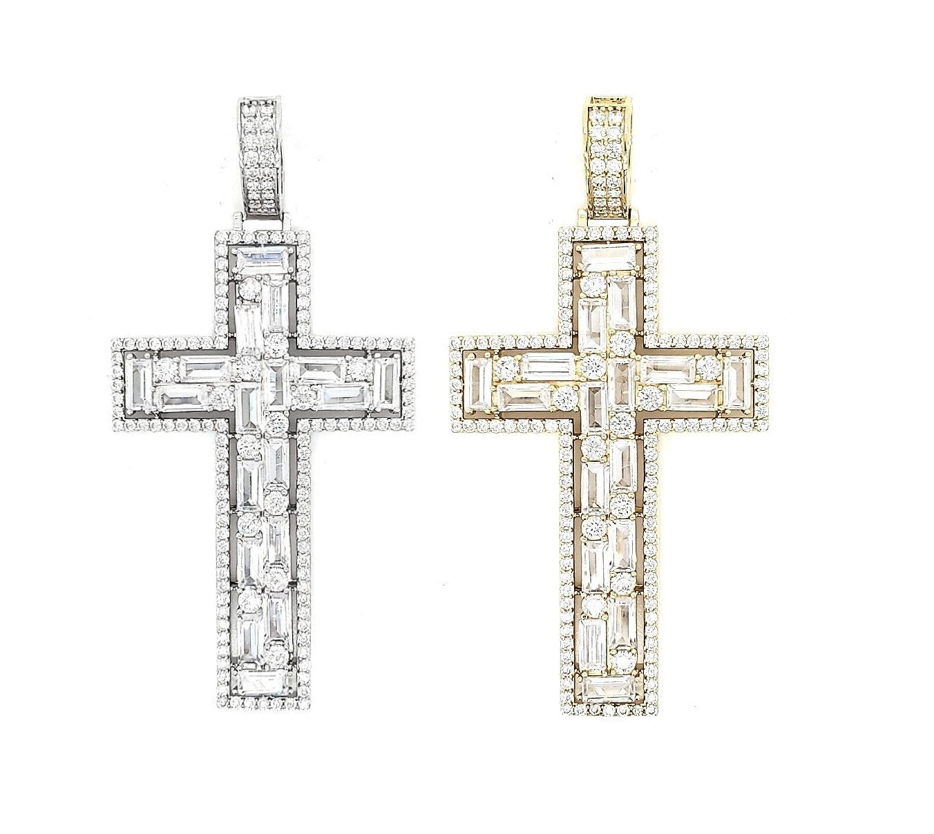 Stunning 925 Sterling Silver Rhodium CZ CROSS Pendant : Elevate your style with this timeless beauty. Featuring 3.2"*1.7" pendant of Round Cubic zirconia(CZ) Stones, it adds a touch of glamour to any look.