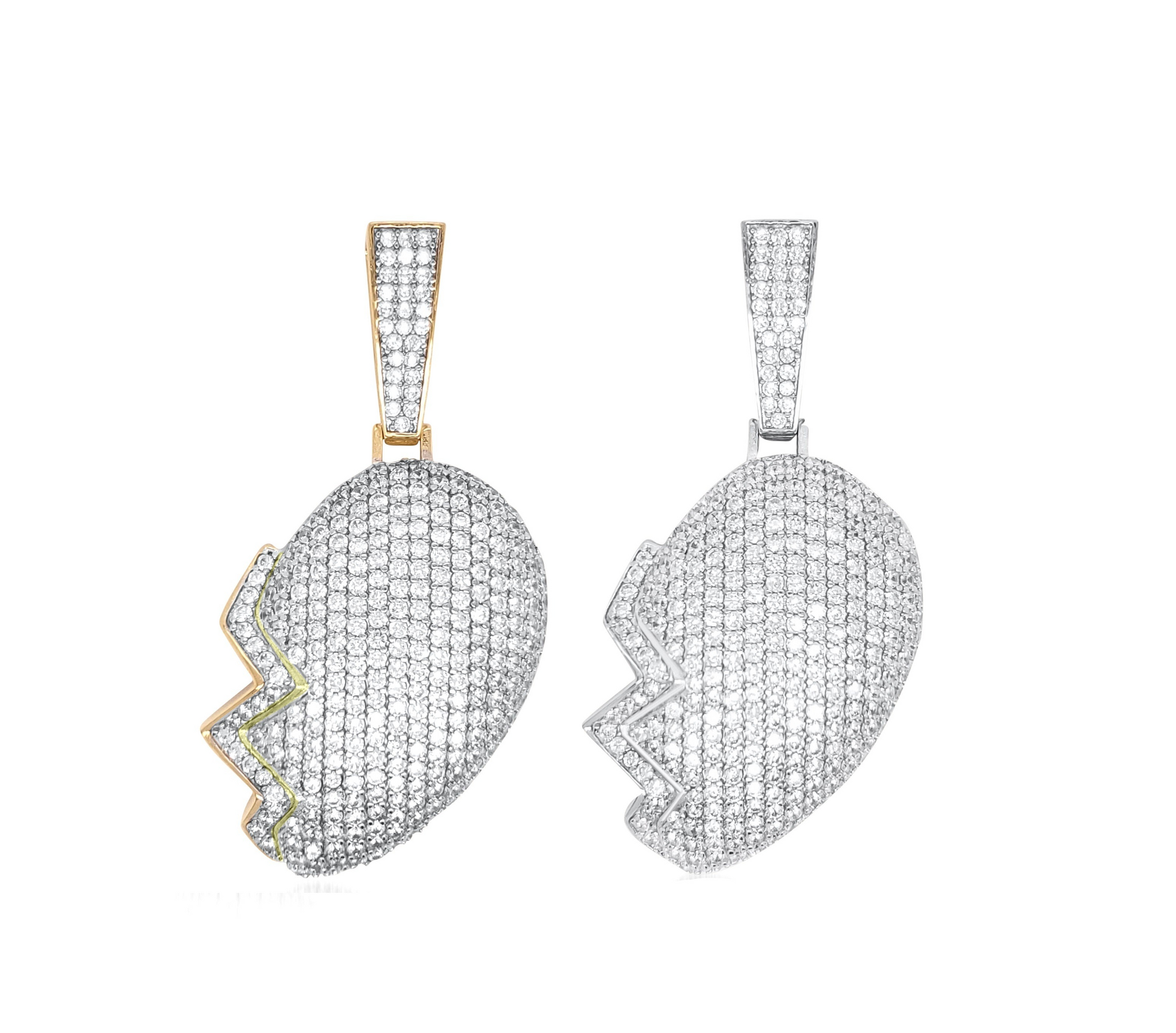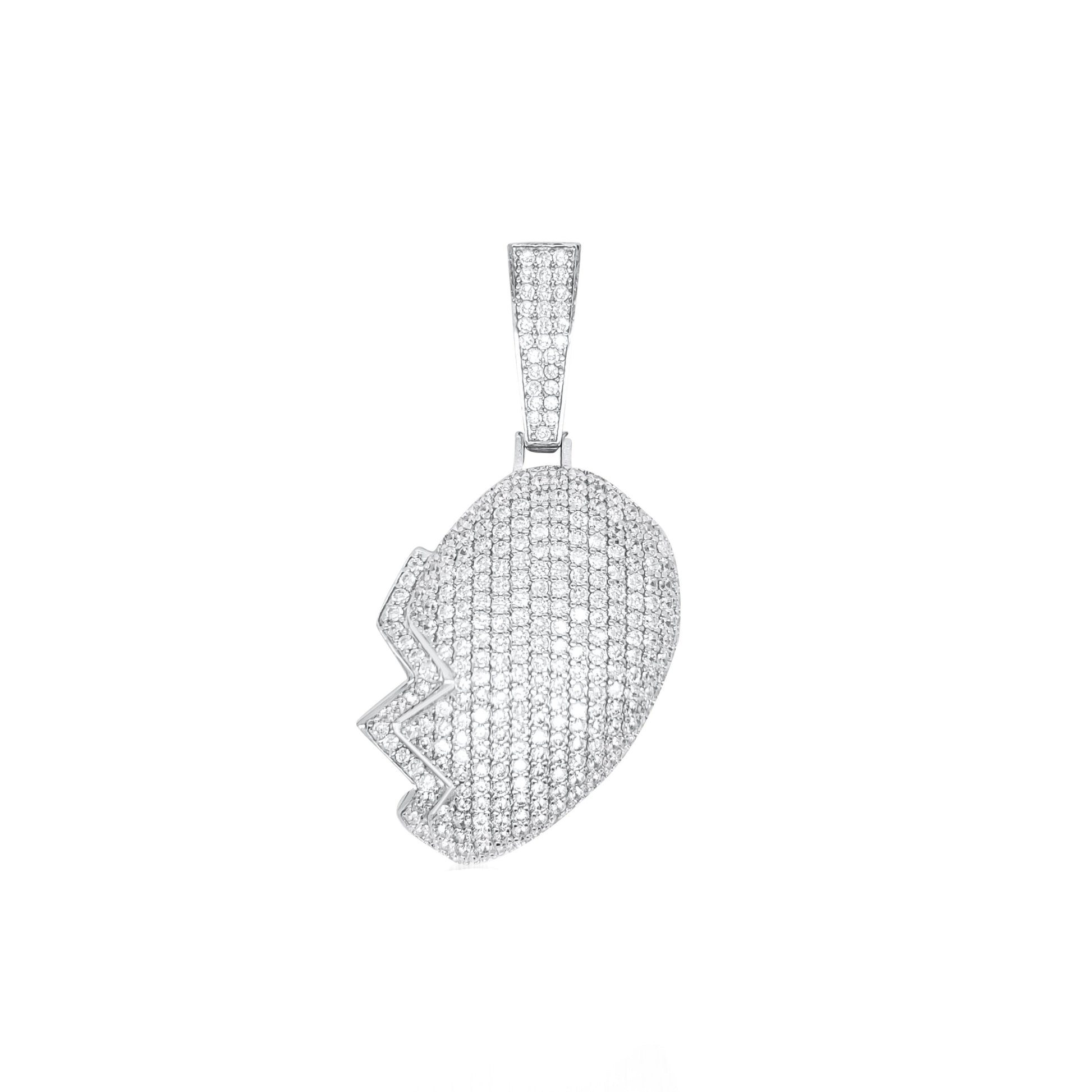 Stunning 925 Sterling Silver Rhodium CZ HALF HEART Pendant : Elevate your style with this timeless beauty. Featuring 2.5"*1.25"(with bail) pendant of Round Cubic zirconia(CZ) Stones, it adds a touch of glamour to any look.