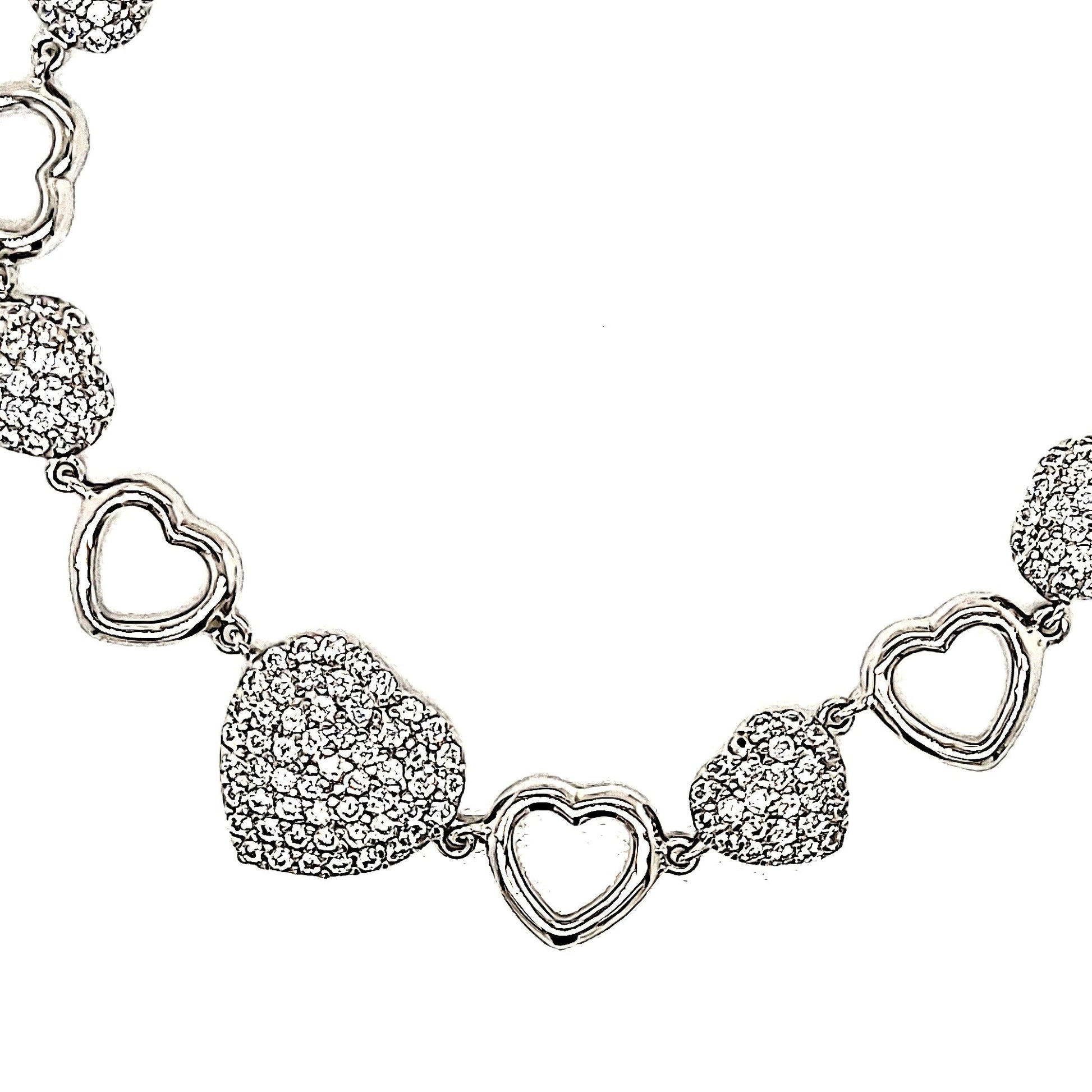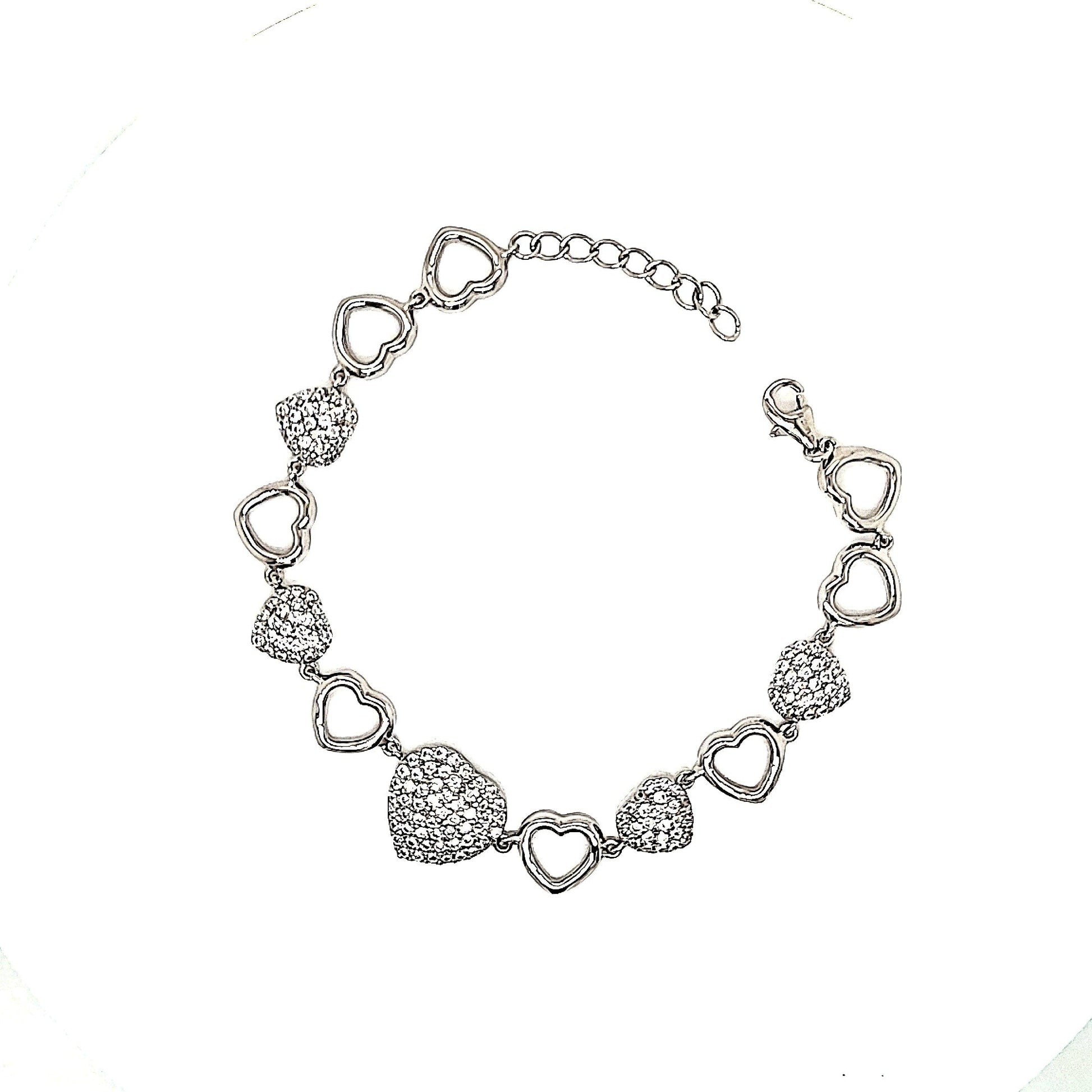 925 Sterling Silver Rhodium/14k Gold Plated Heart Shaped Round CZ Stones  Fancy Bracelet.