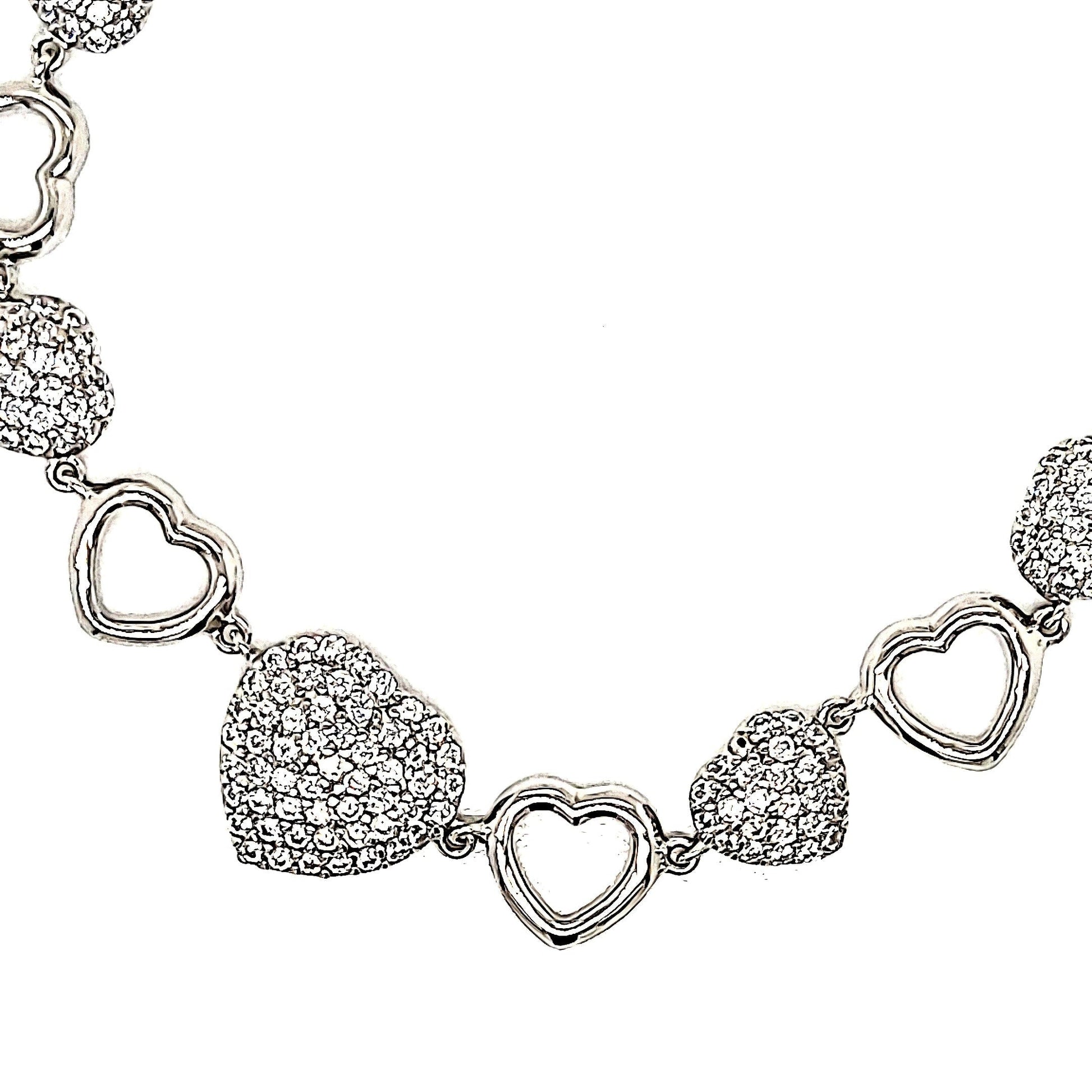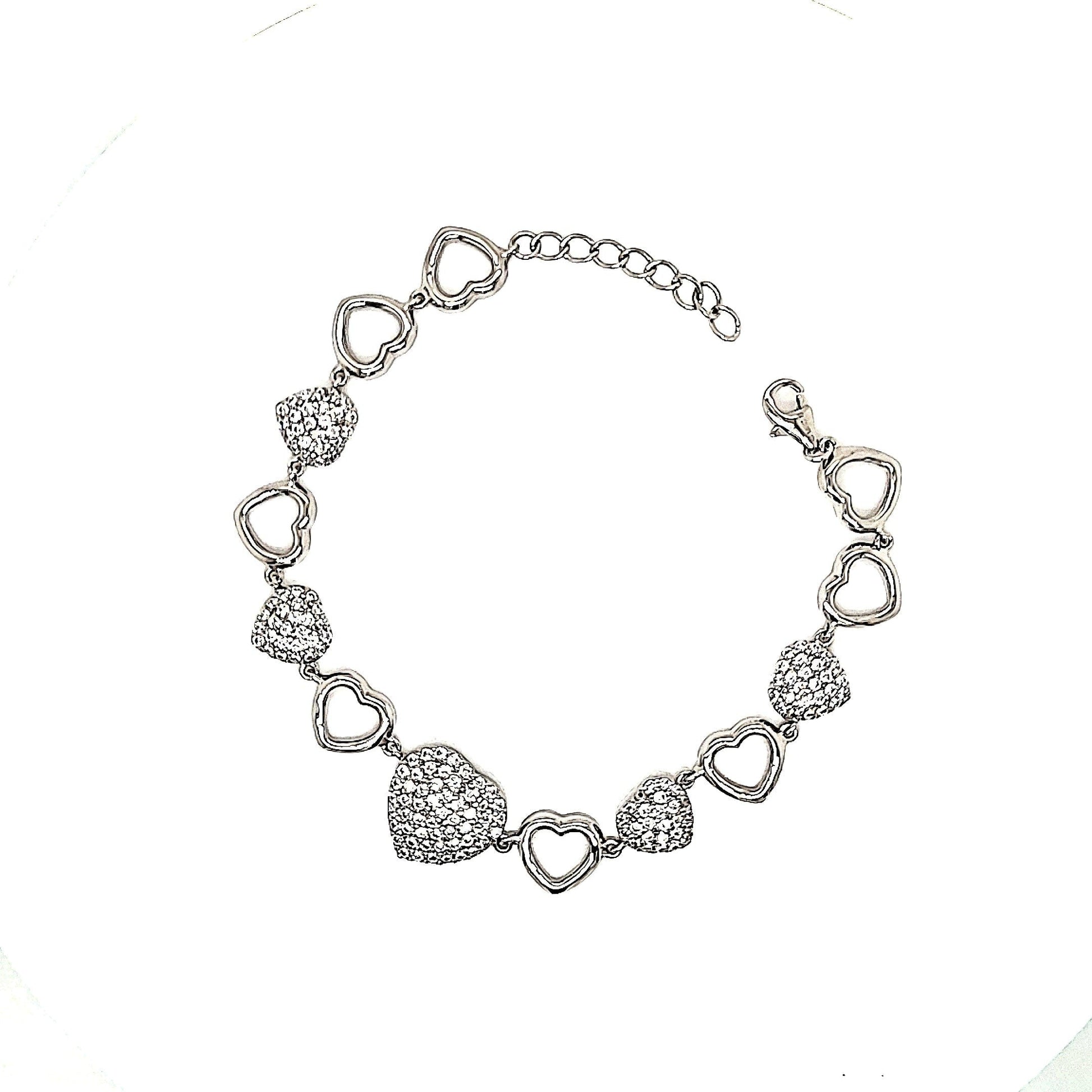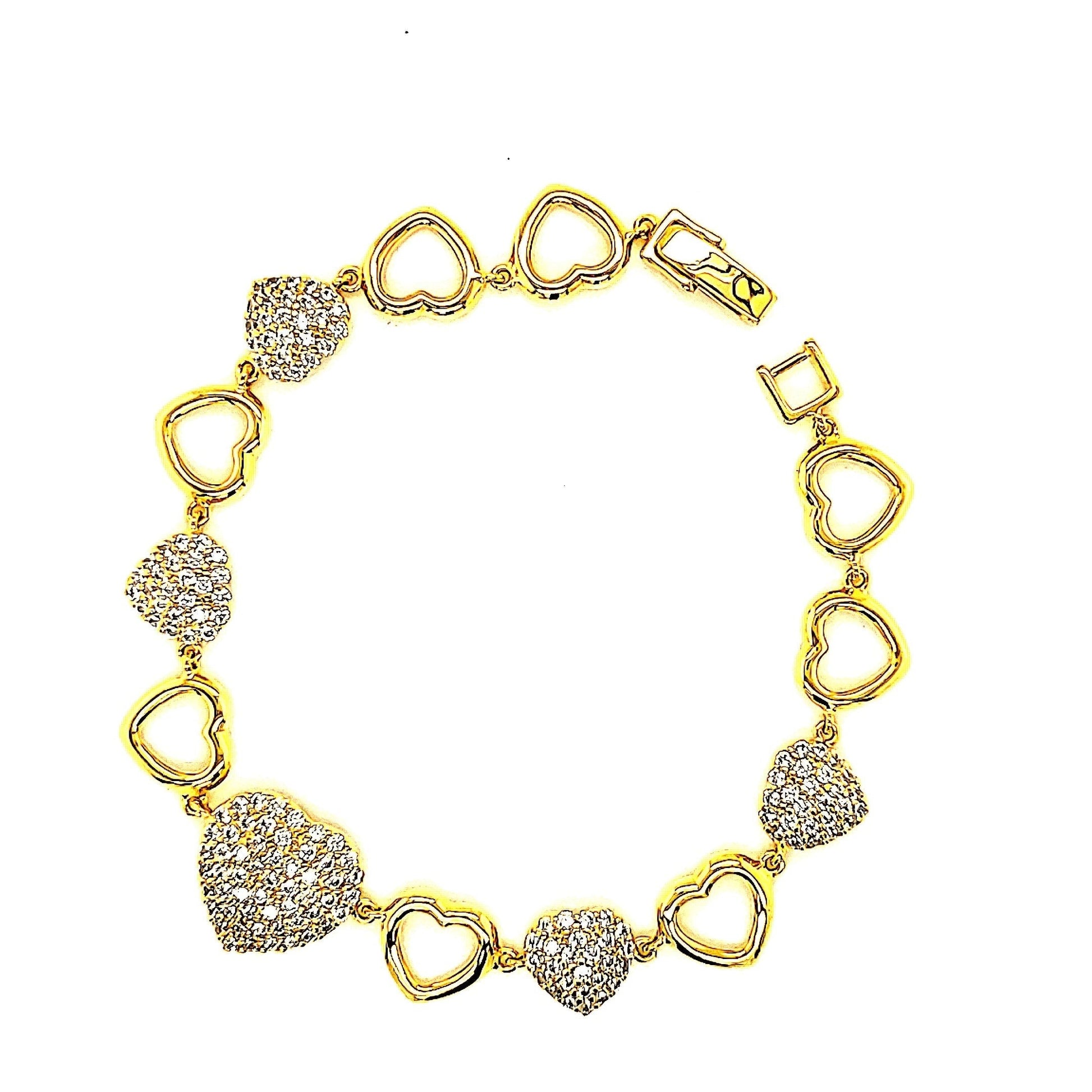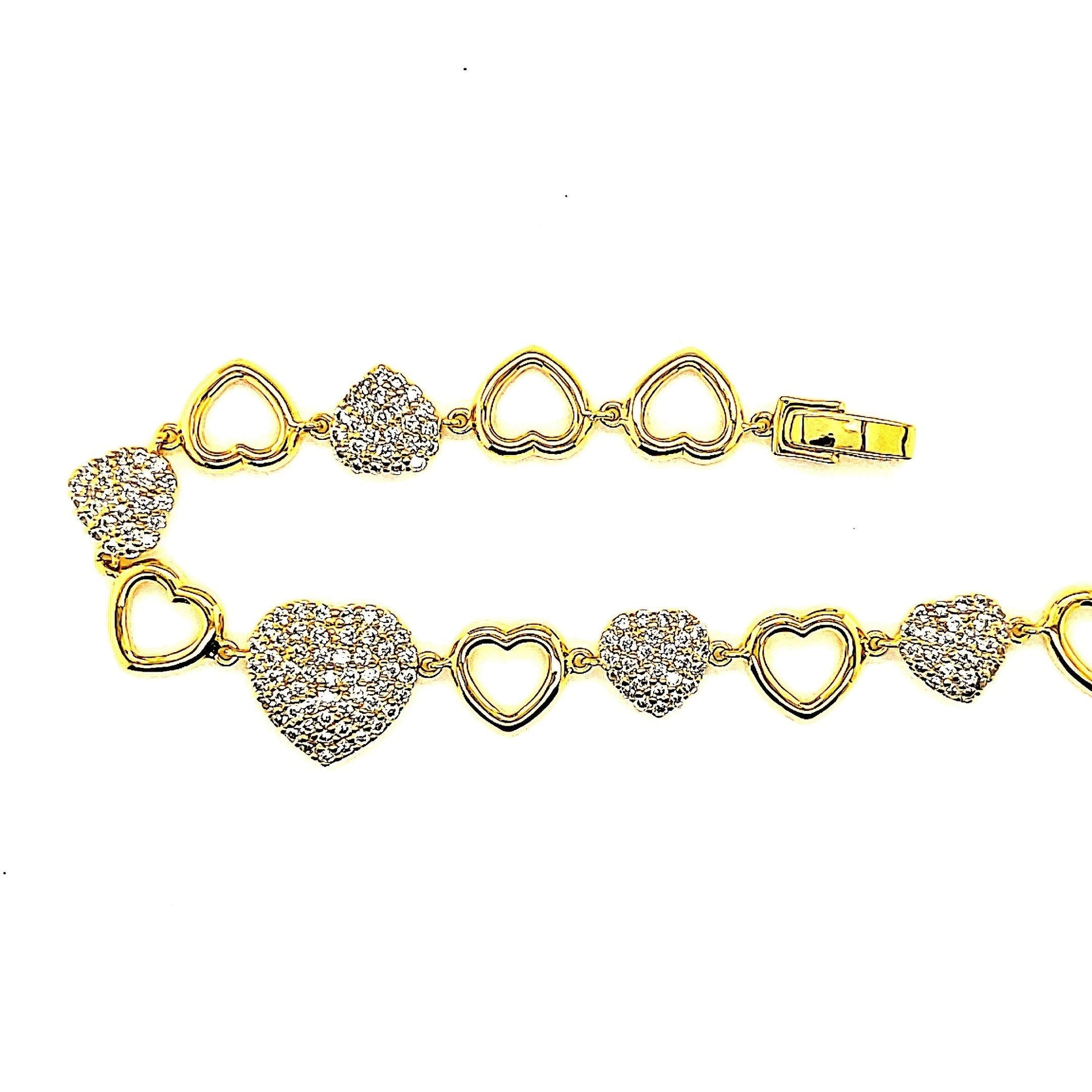925 Sterling Silver Rhodium/14k Gold Plated Heart Shaped Round CZ Stones Fancy Bracelet.