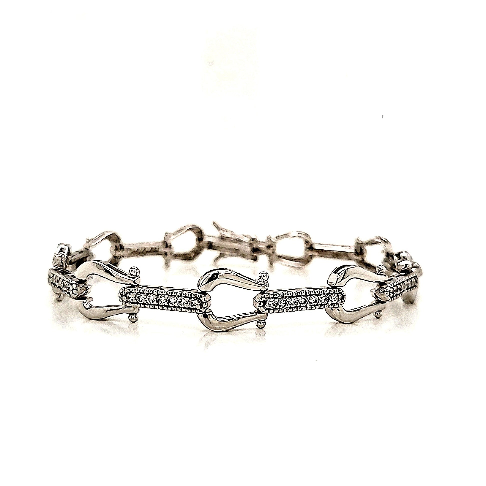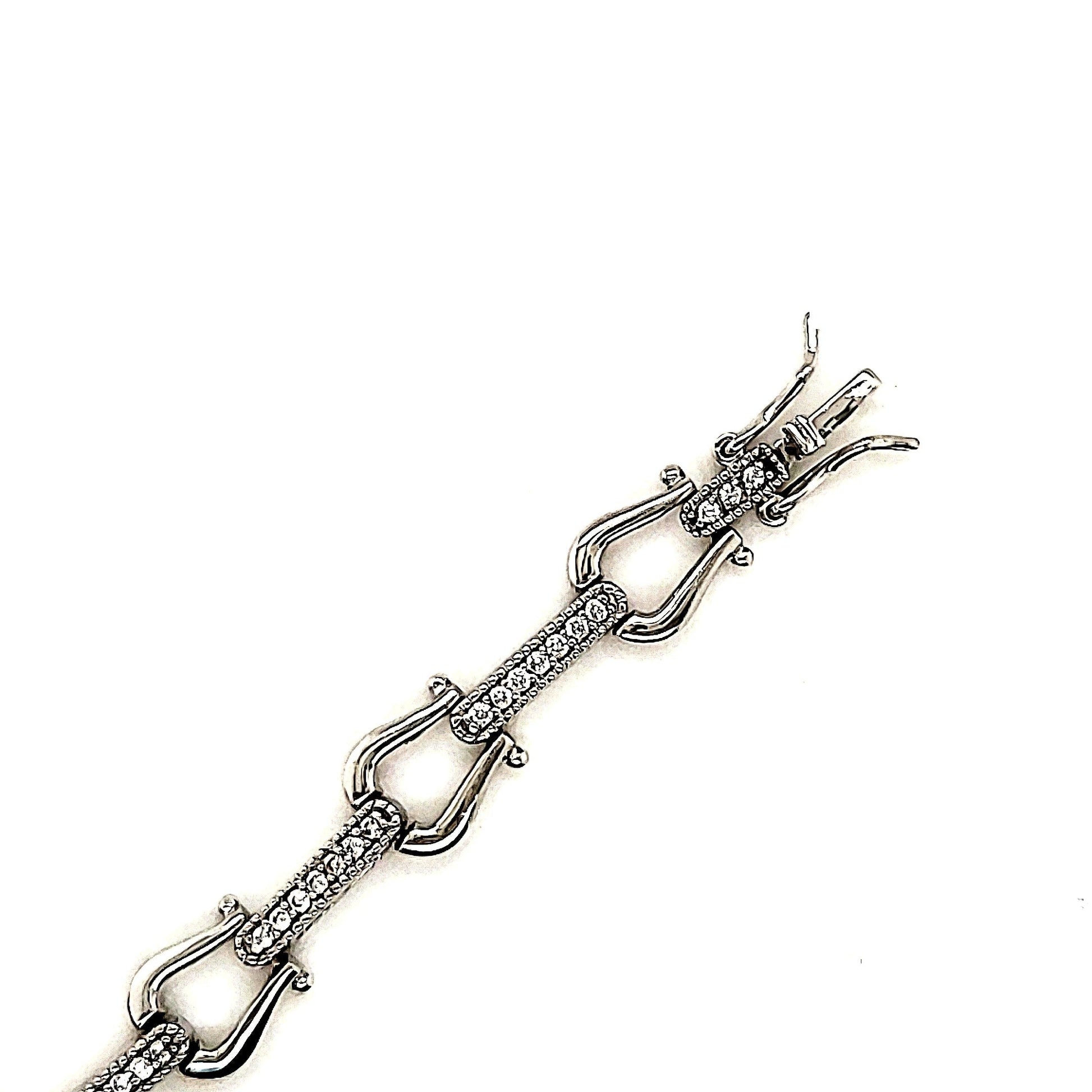 925 Sterling Silver Rhodium Plated Horseshoe Shaped With Round CZ Stones Fancy Bracelet.