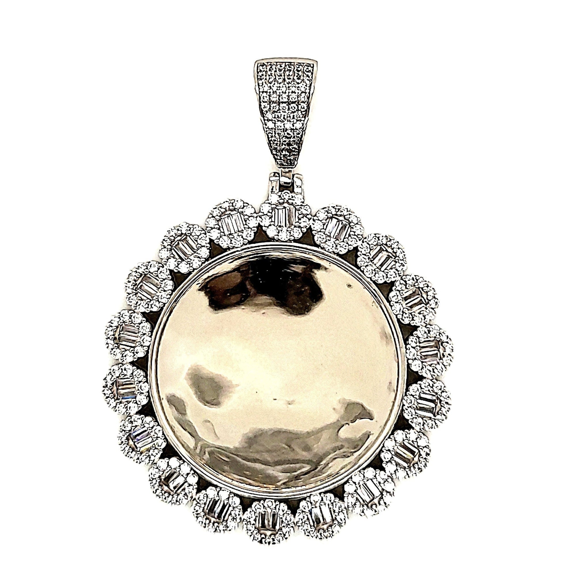 Stunning 925 Sterling Silver Rhodium CZ FLOWER PICTURE Pendant : Elevate your style with this timeless beauty. Featuring 2.5"*2"(with bail) pendant of Round Cubic zirconia(CZ) Stones, it adds a touch of glamour to any look.
