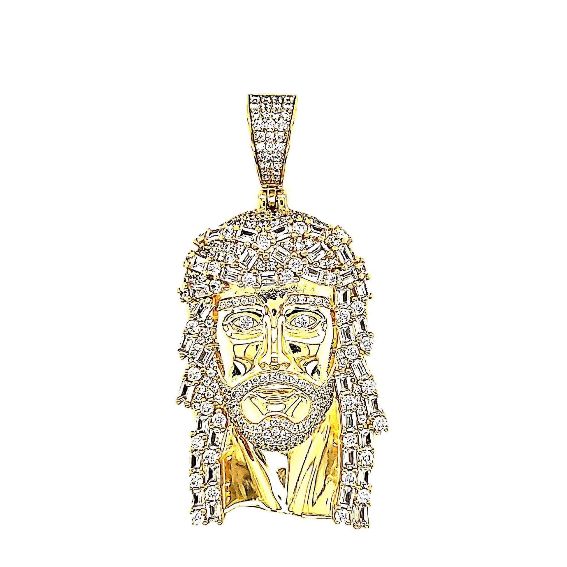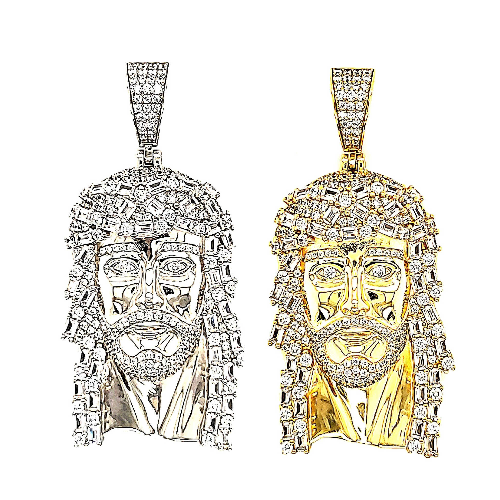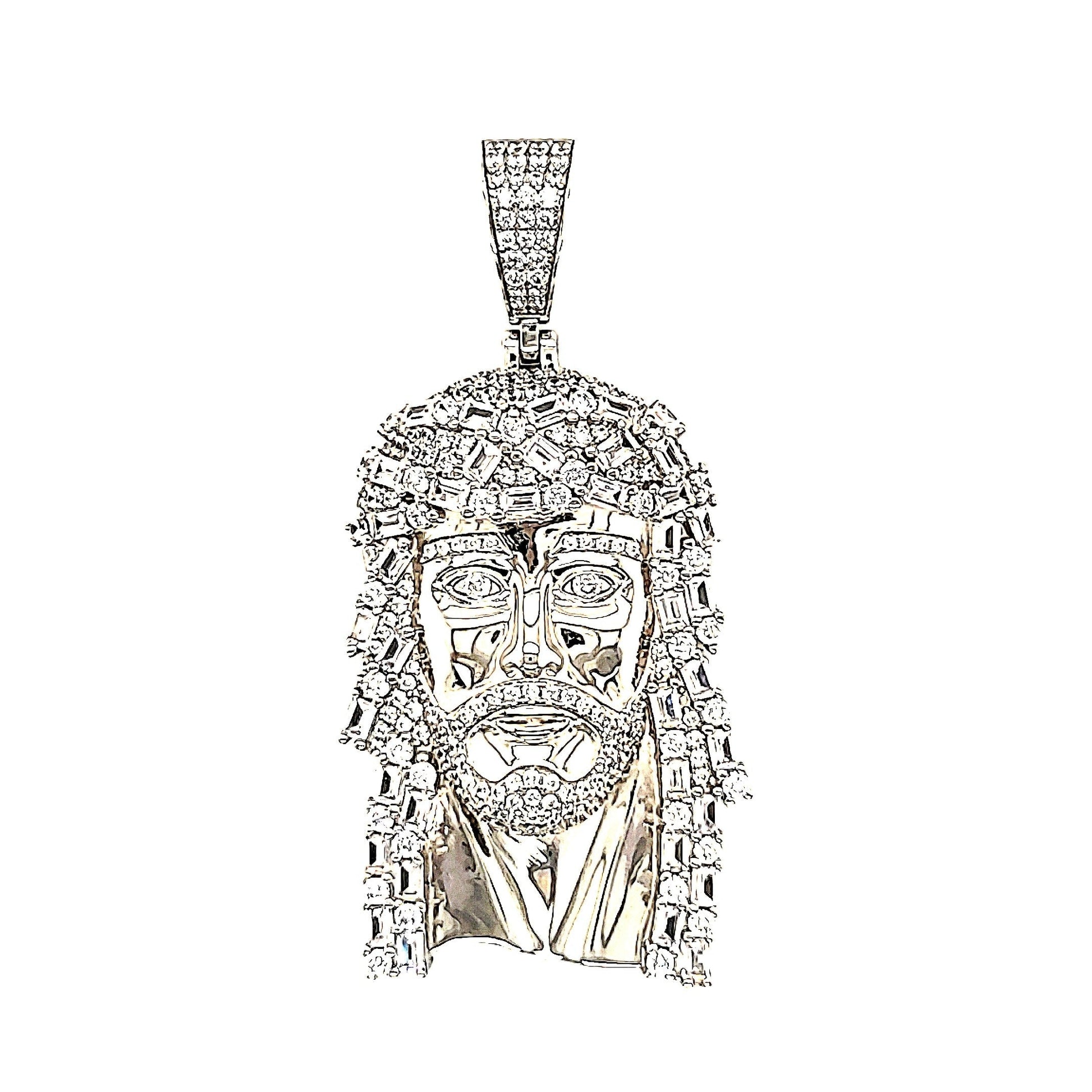Stunning 925 Sterling Silver JESUS face Pendant : Elevate your style with this timeless beauty. Featuring Round & Baguette CZ Zirconia Stones in Spine Crown , it adds a touch of glamour to any look.