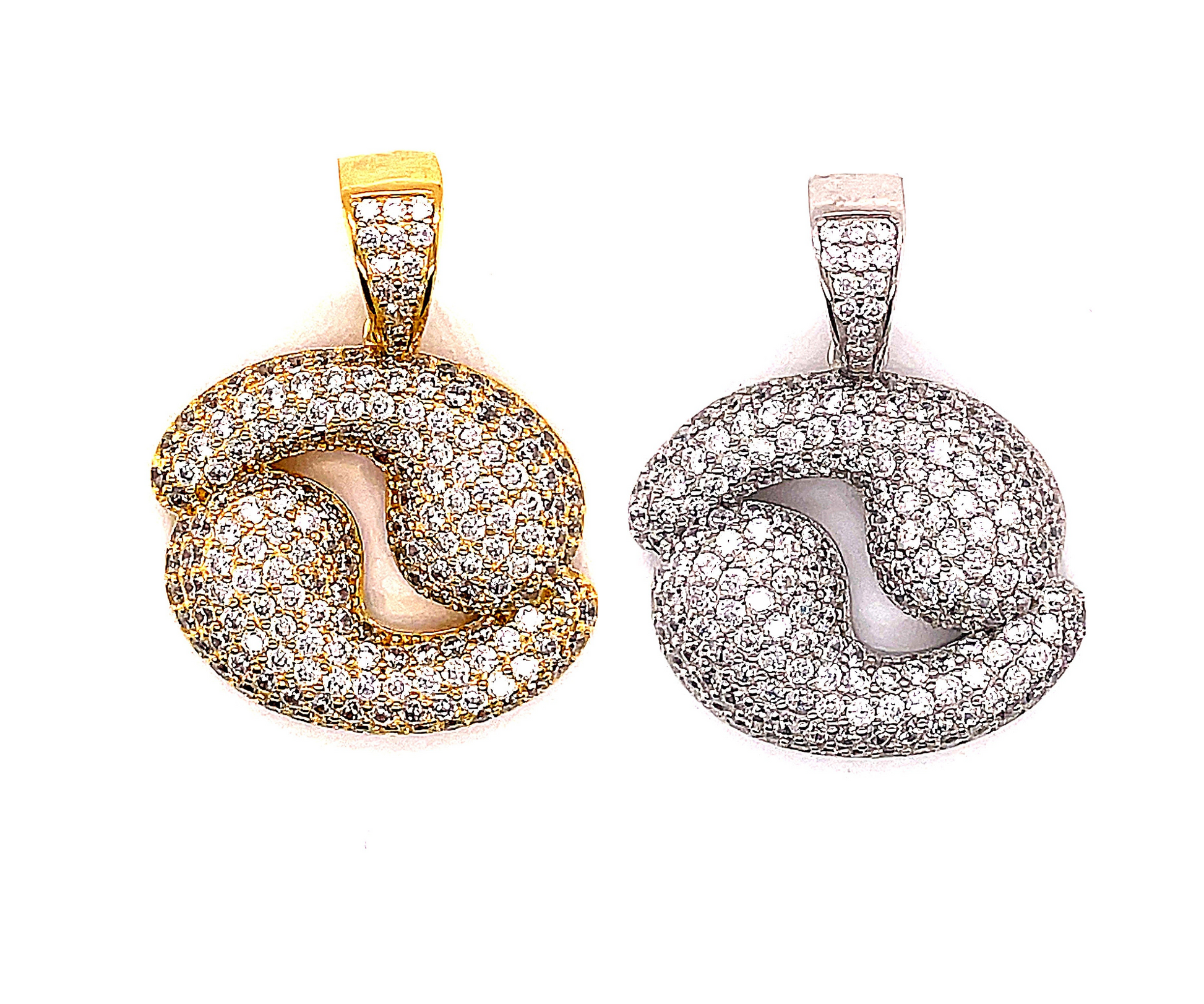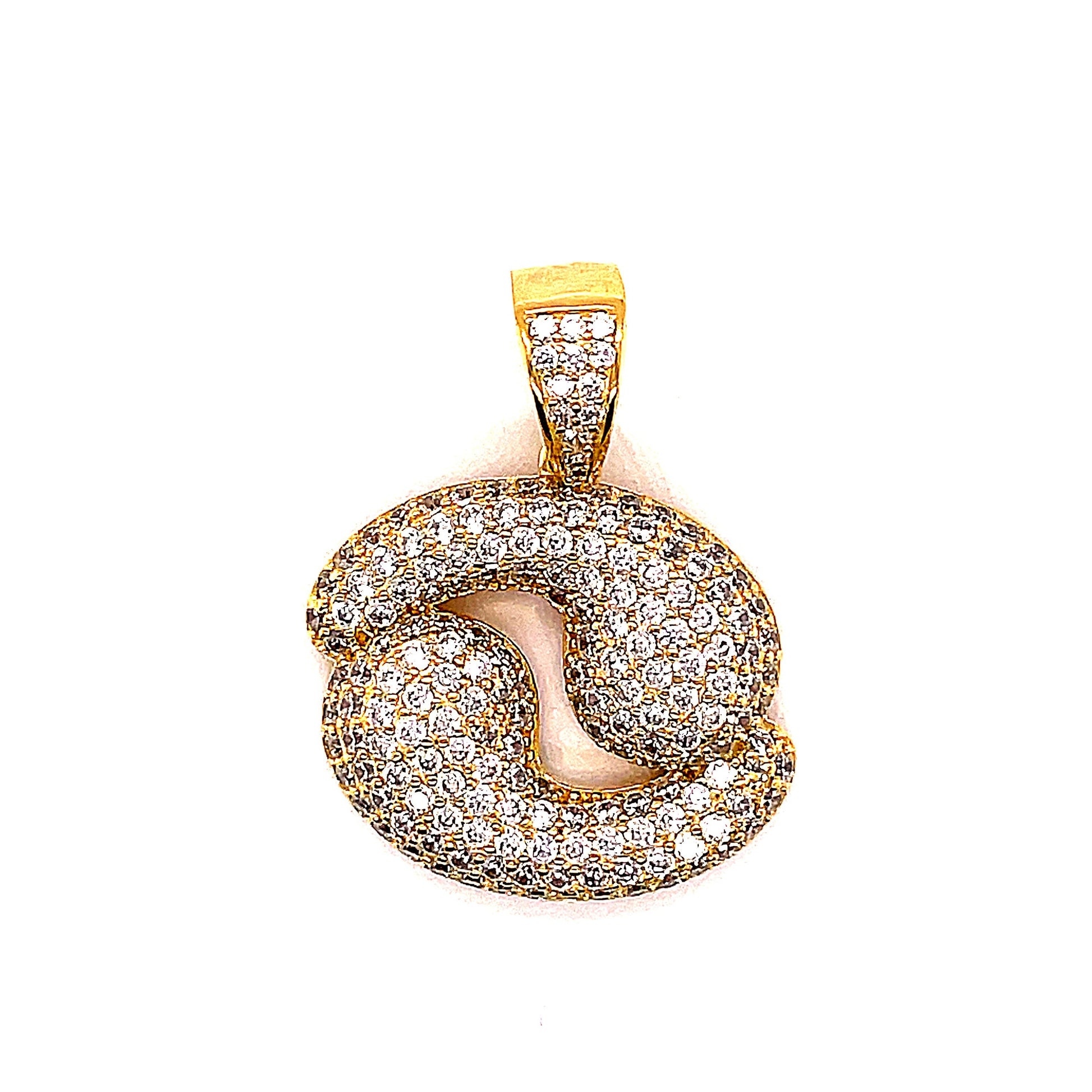 925 Sterling Silver Rhodium Plated / 14K Yellow Plated CANCER Zodiac Sign Pendant With Round CZ Stones