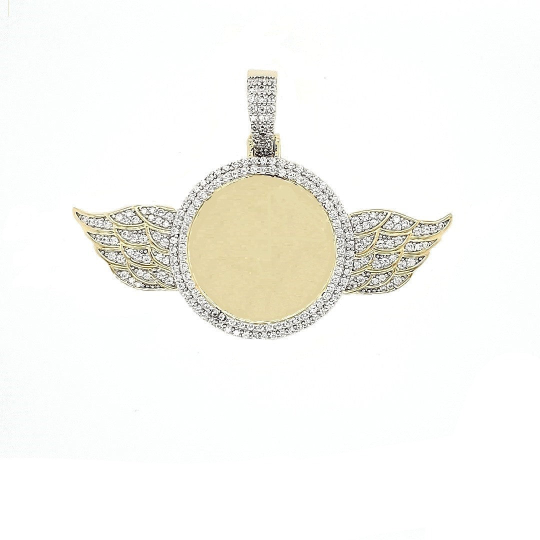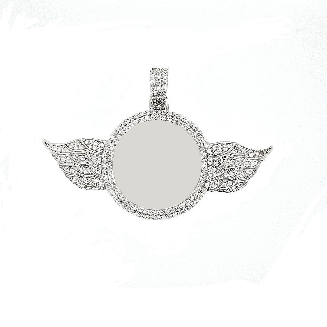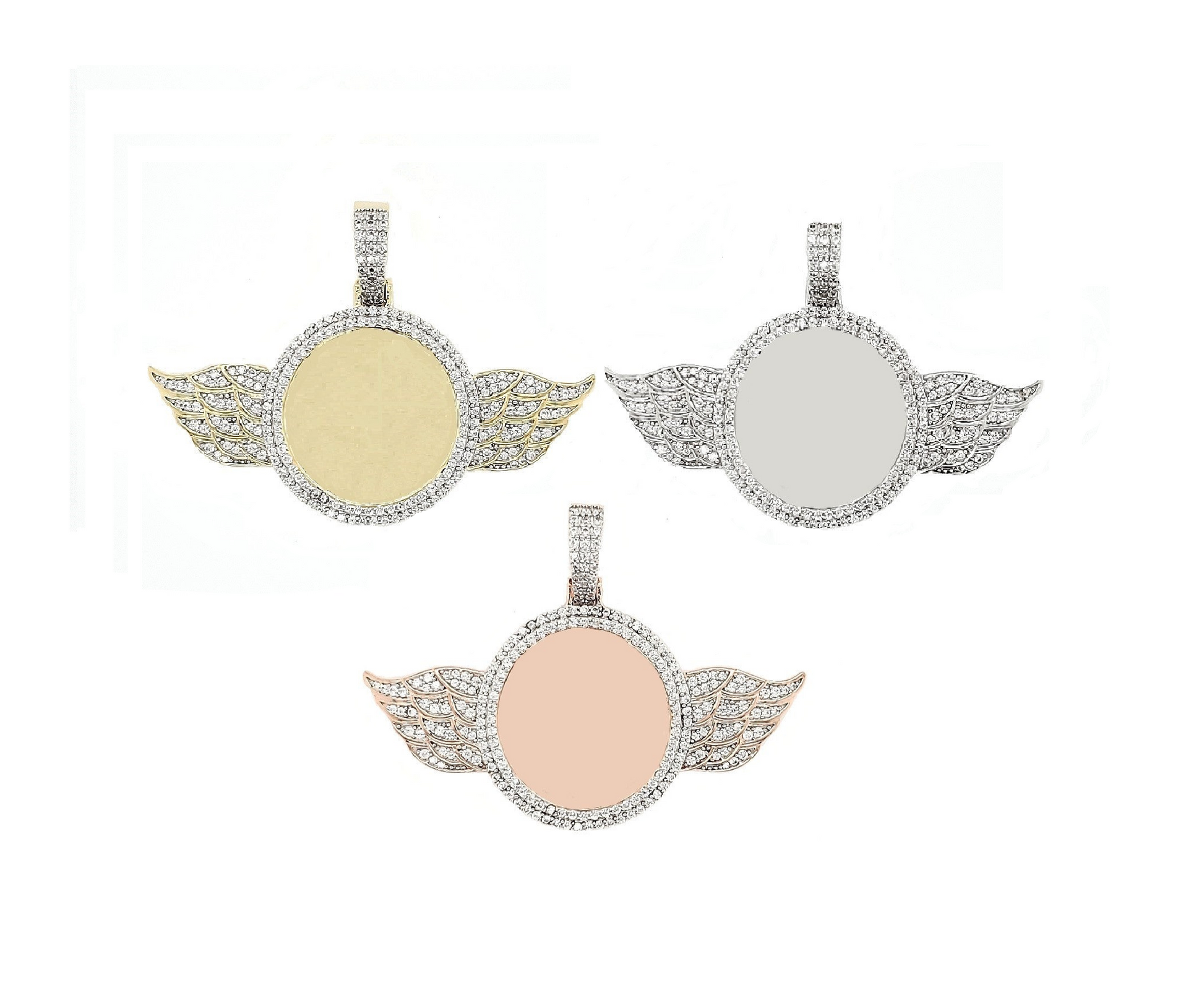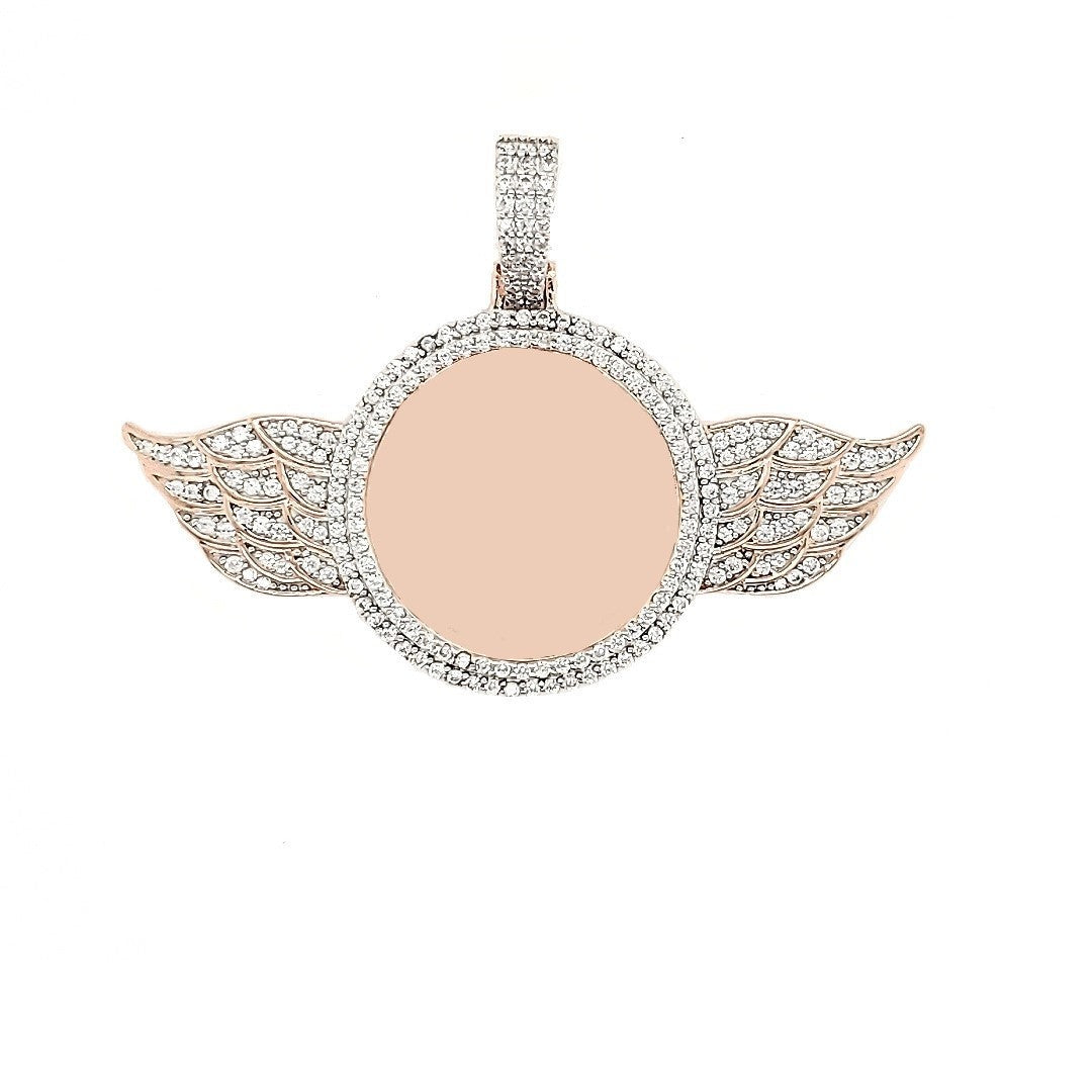 925 Sterling Silver Rhodium Plated / 14K Rose / Gold Plated Picture Charm Wings Pendant