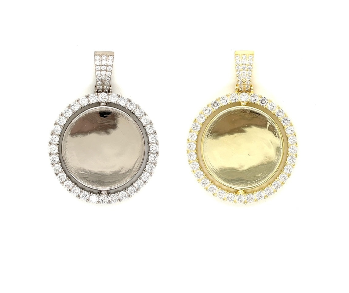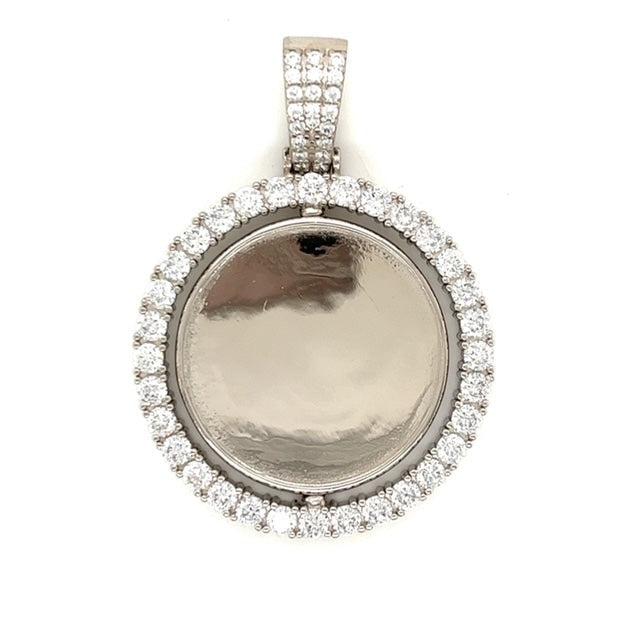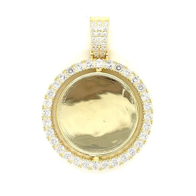 925 Sterling Silver Rhodium / 14K Gold Plated Picture Charm CZ Round Stones
