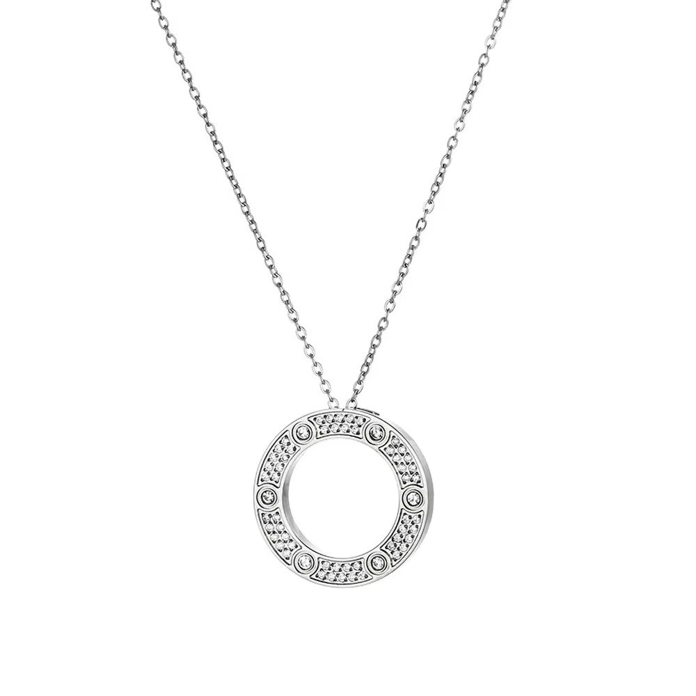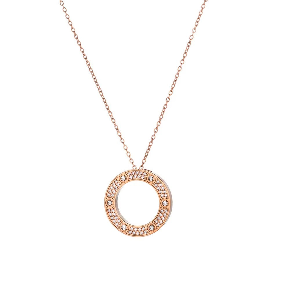 Enhance your style with this elegant necklace featuring a stunning inlaid zircon ring pendant. Crafted from durable gold-plated stainless steel, this clavicle chain necklace is the perfect gift accessory for any occasion!