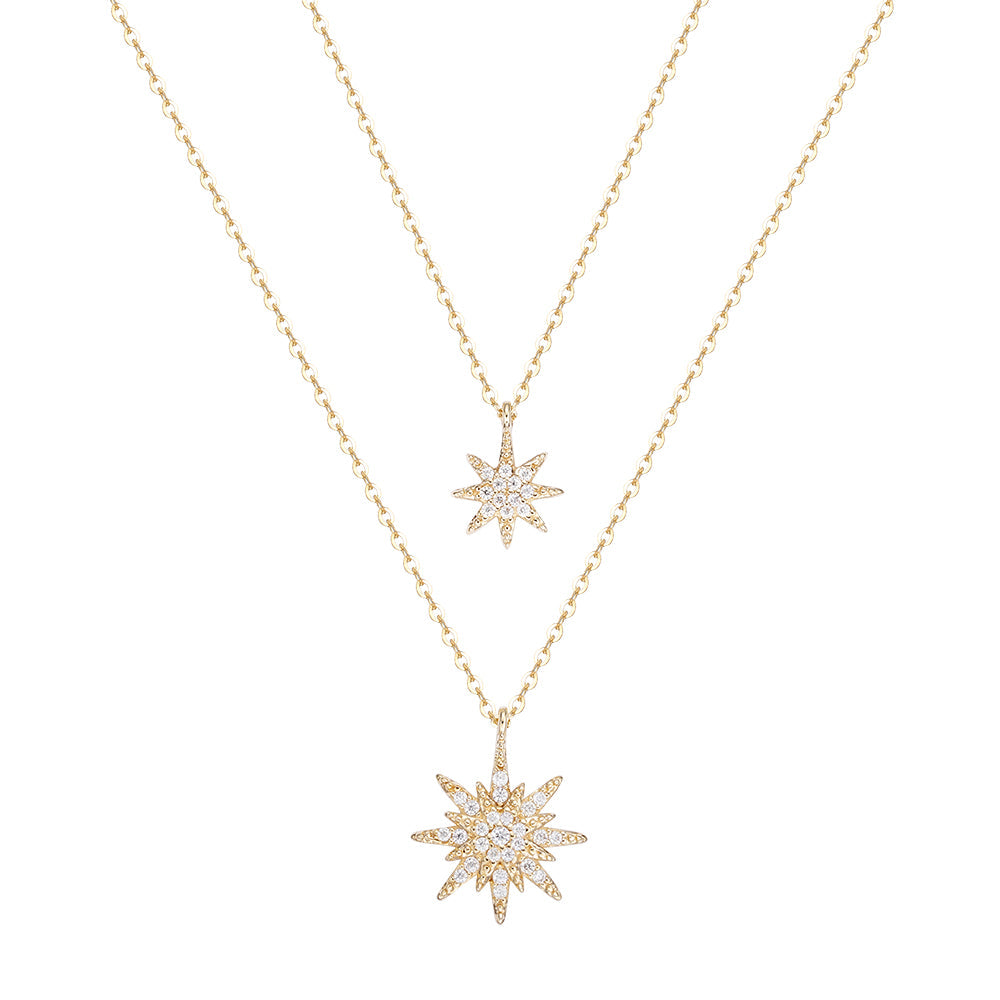 Stunning 14K Gold Moissanite 16" & 19" Star Chain Necklace. Featuring approx. 0.21CT of dazzling Moissanite Stones , it adds a touch of glamour to any look.